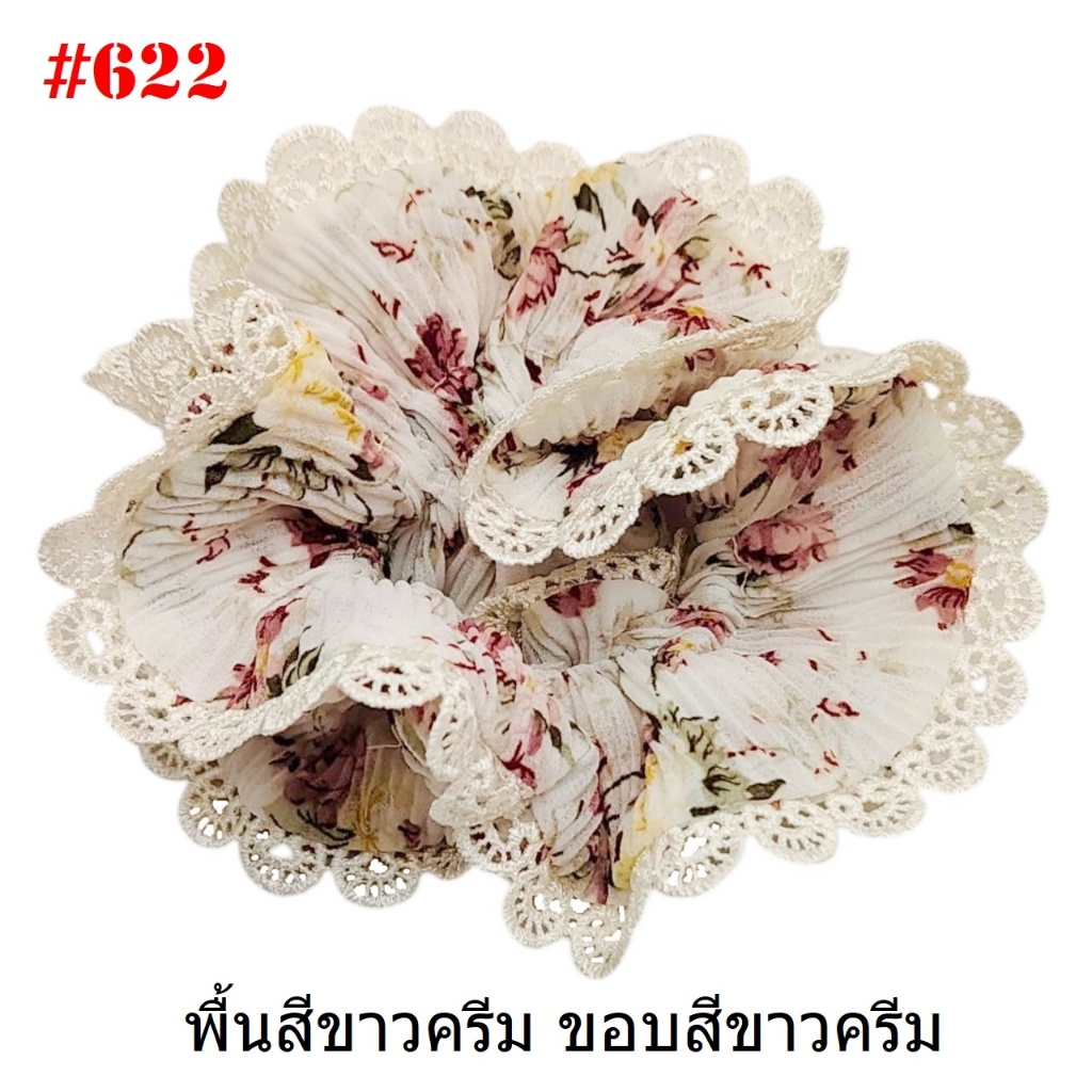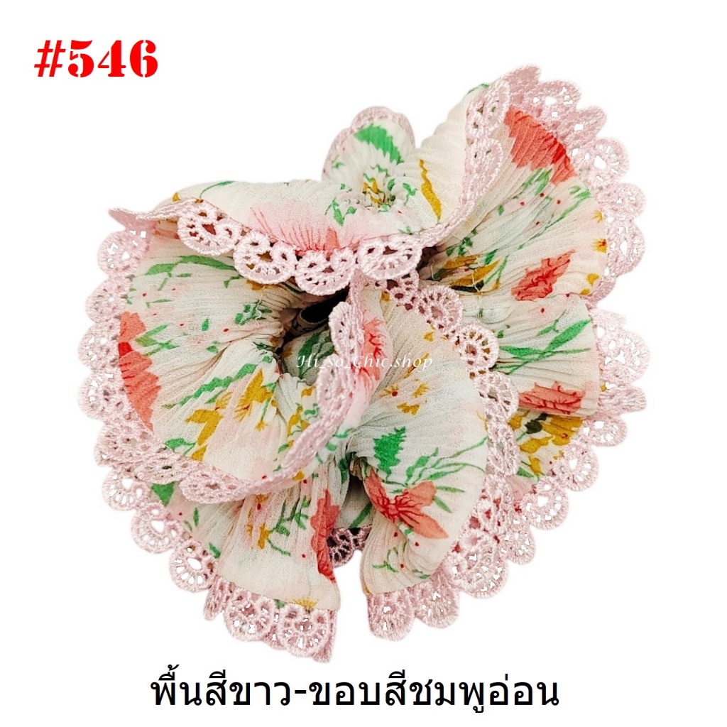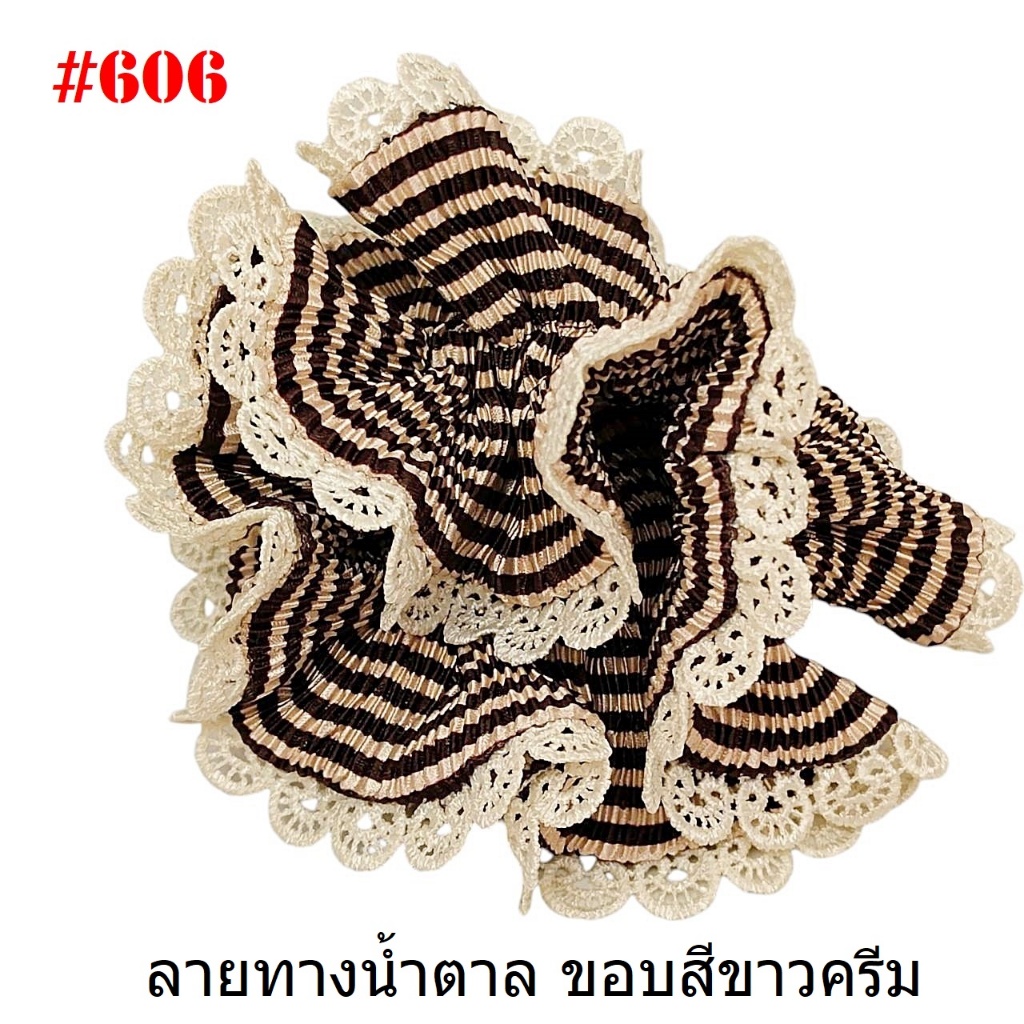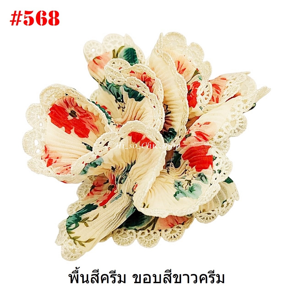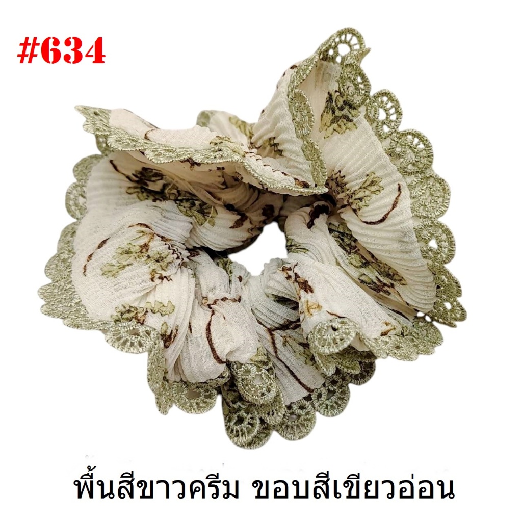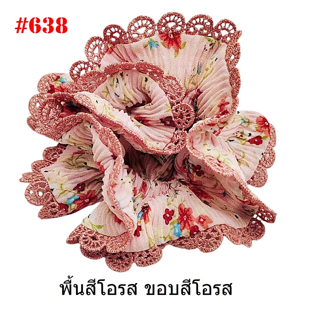 (#541-655) A-ONE ยางมัดผม ยางรัดผม ยี่ห้อ เอ-วัน A1 ผ้าอัดพลีด ขอบลูกไม้ (ราคาต่อชิ้น)