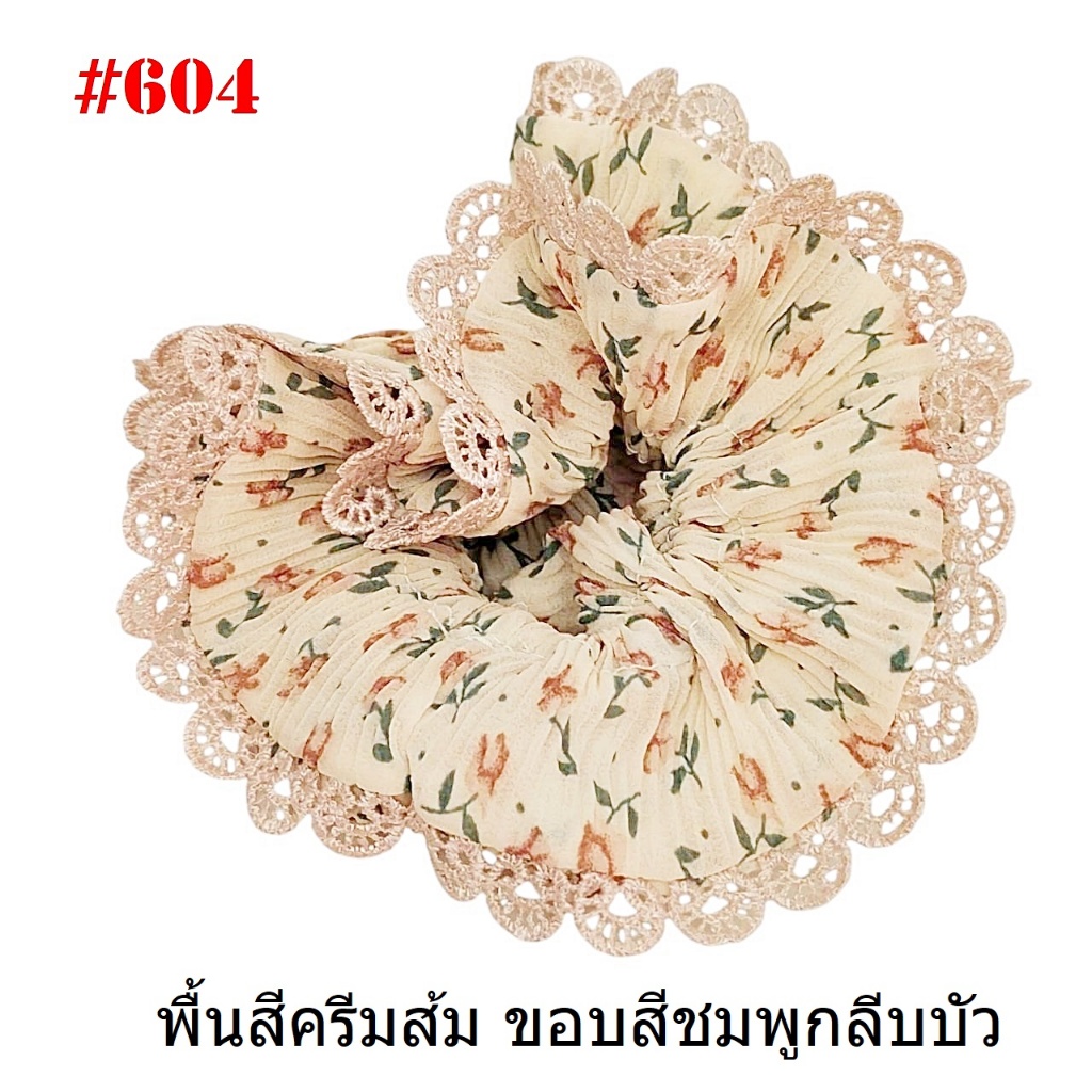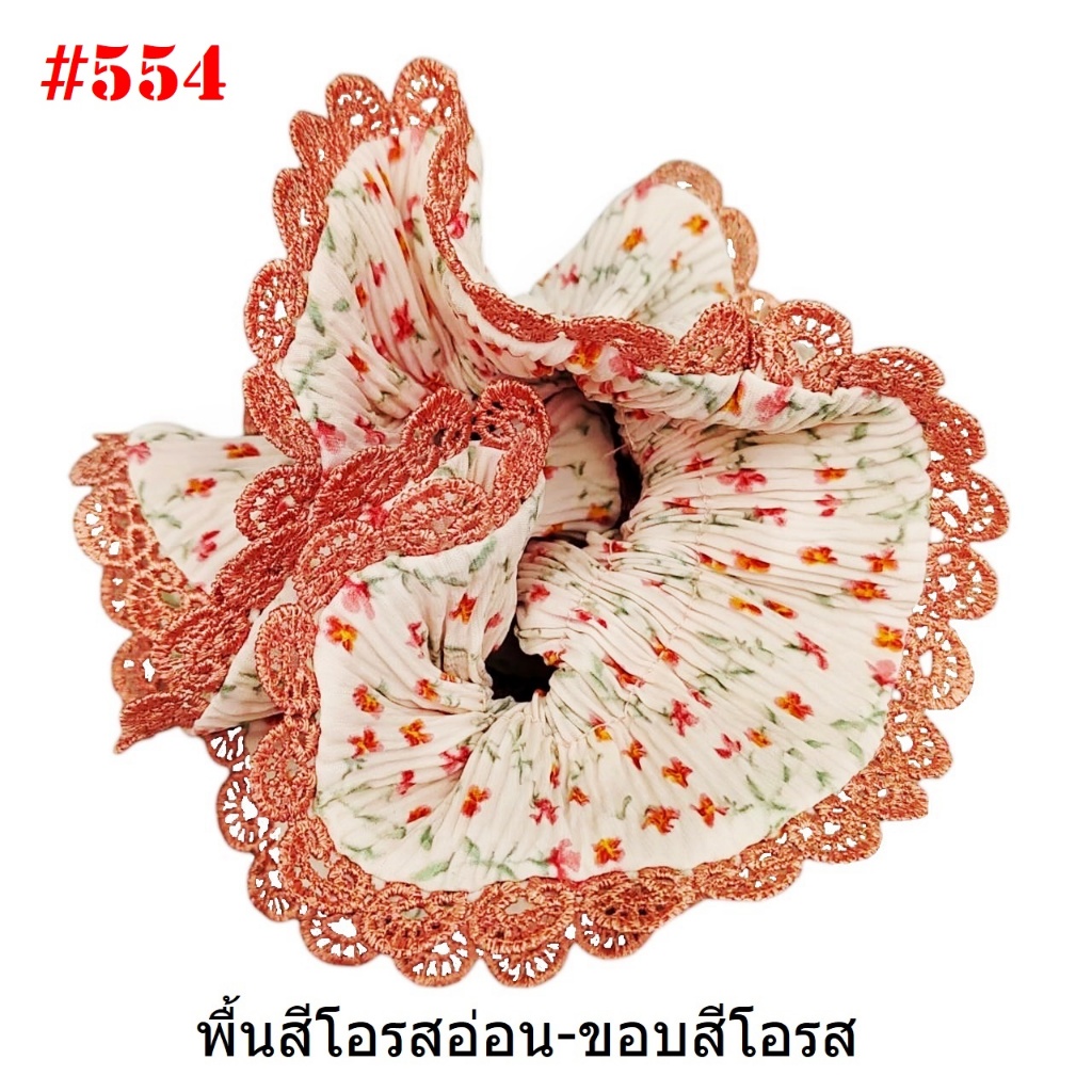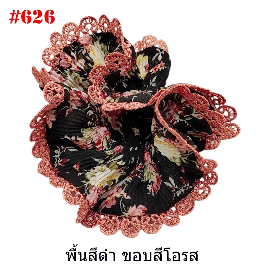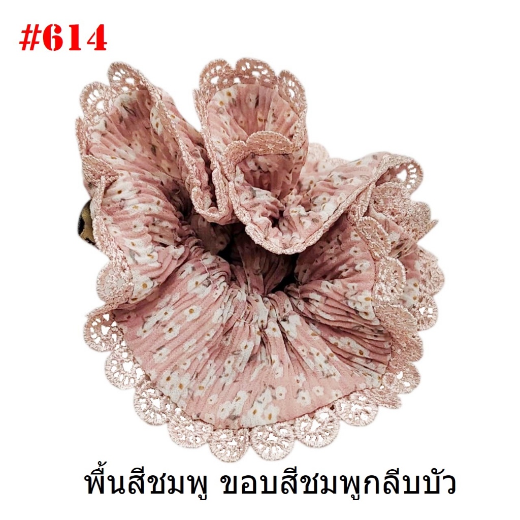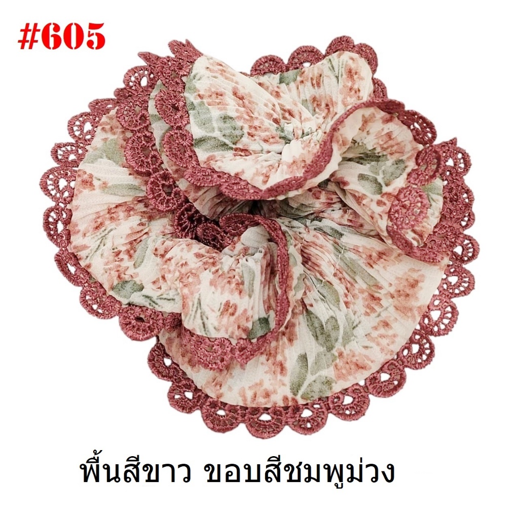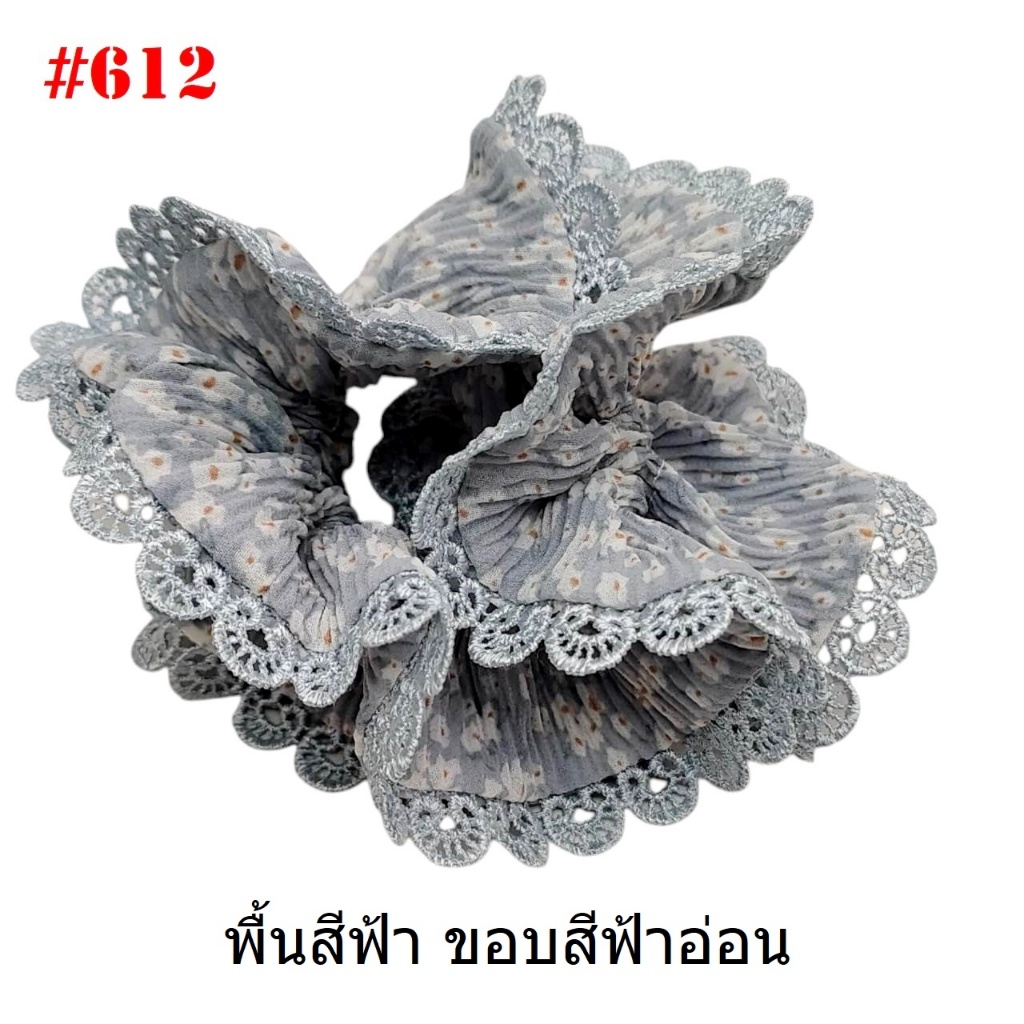 (#541-655) A-ONE ยางมัดผม ยางรัดผม ยี่ห้อ เอ-วัน A1 ผ้าอัดพลีด ขอบลูกไม้ (ราคาต่อชิ้น)