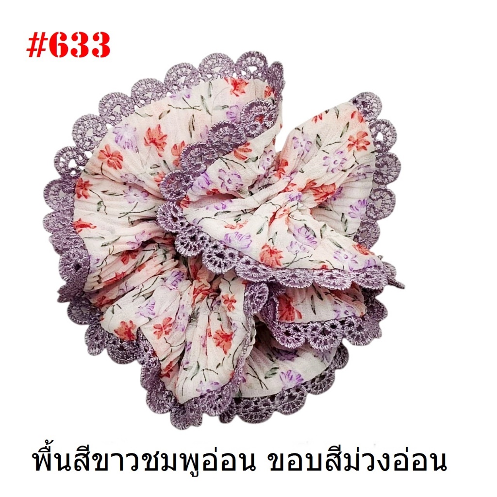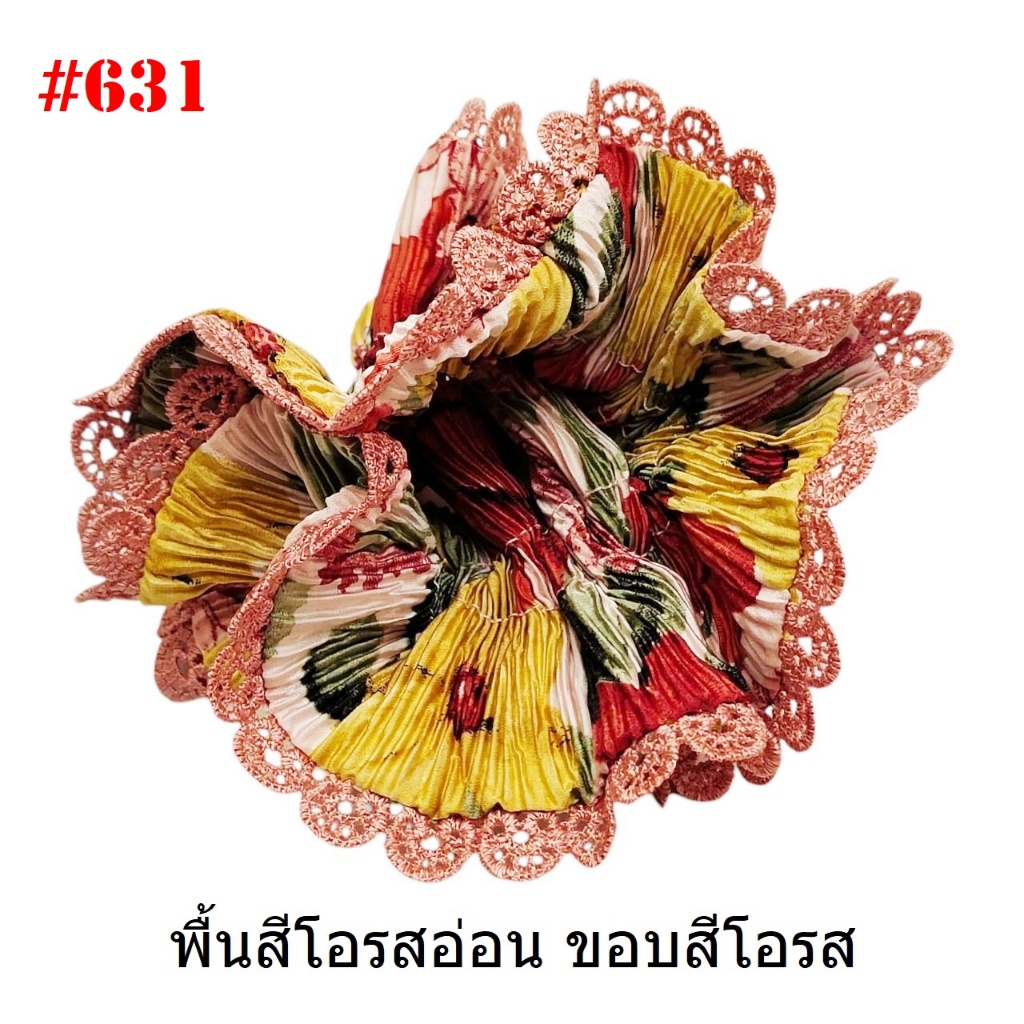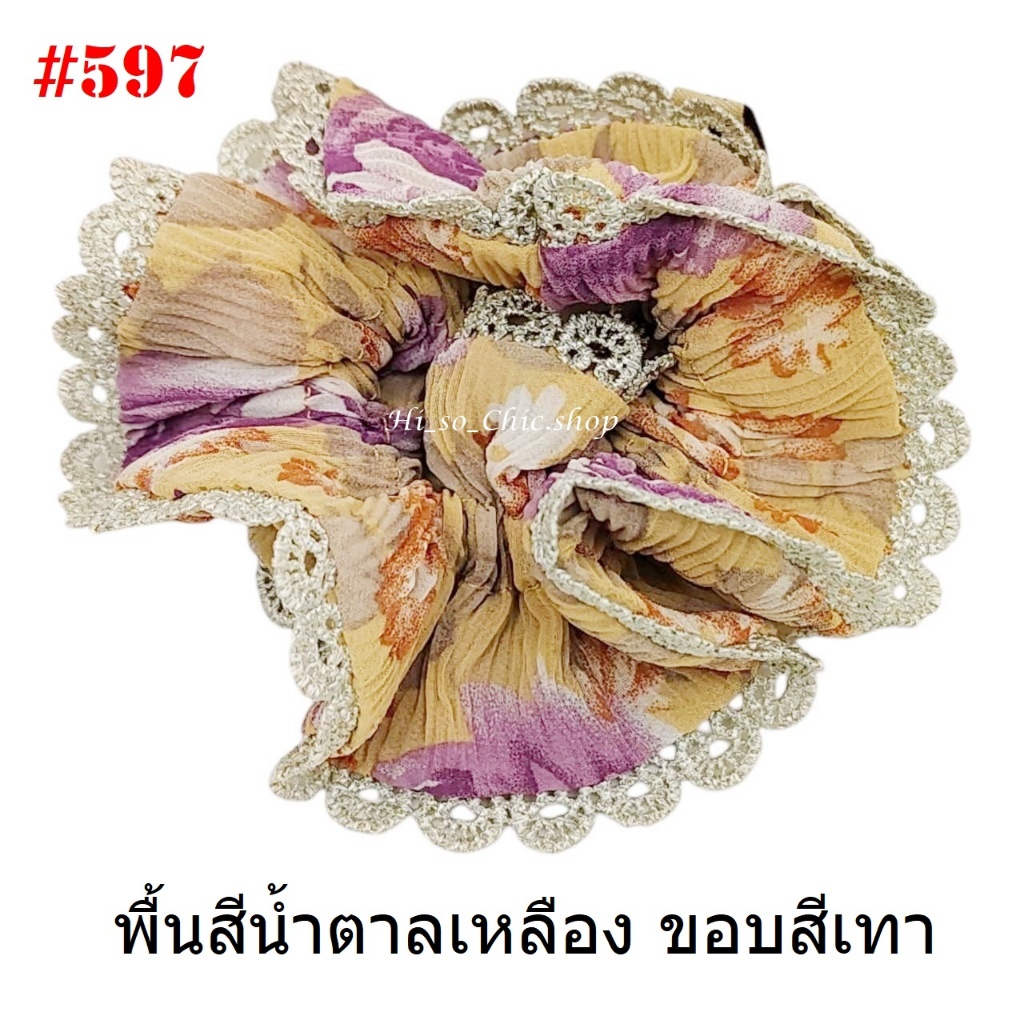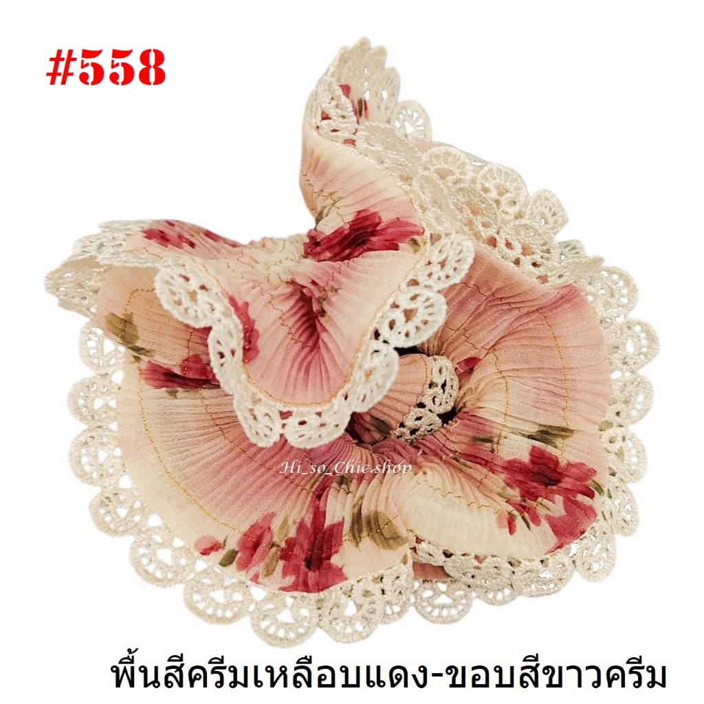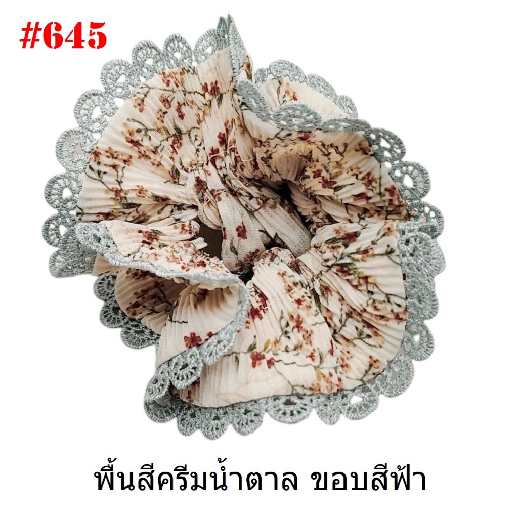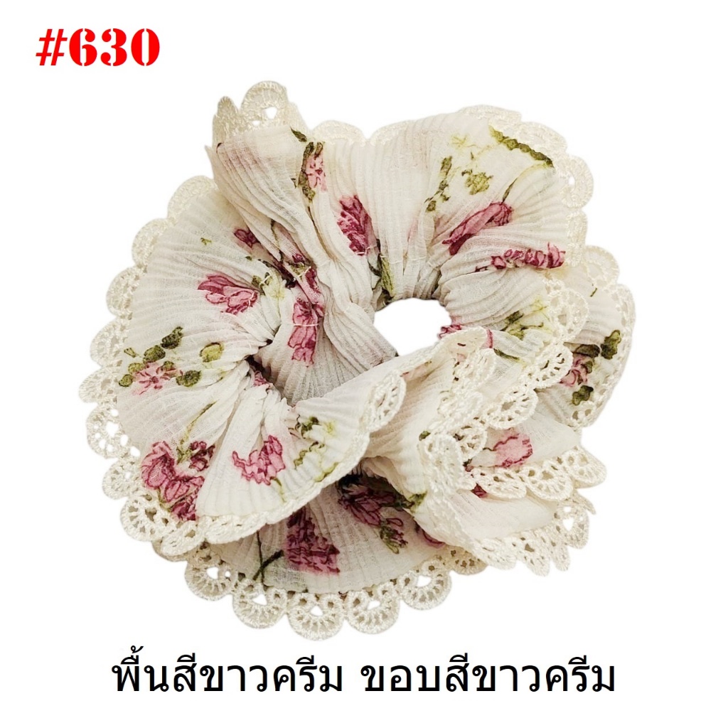 (#541-655) A-ONE ยางมัดผม ยางรัดผม ยี่ห้อ เอ-วัน A1 ผ้าอัดพลีด ขอบลูกไม้ (ราคาต่อชิ้น)