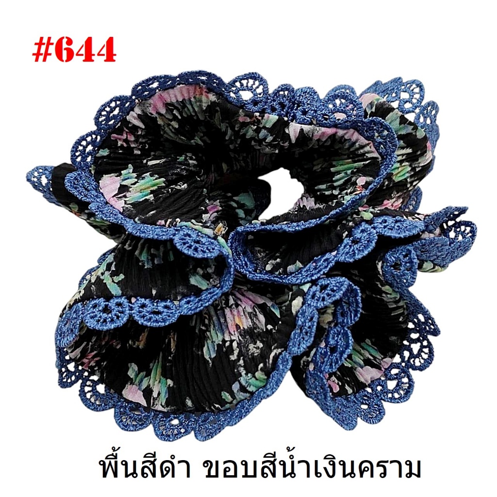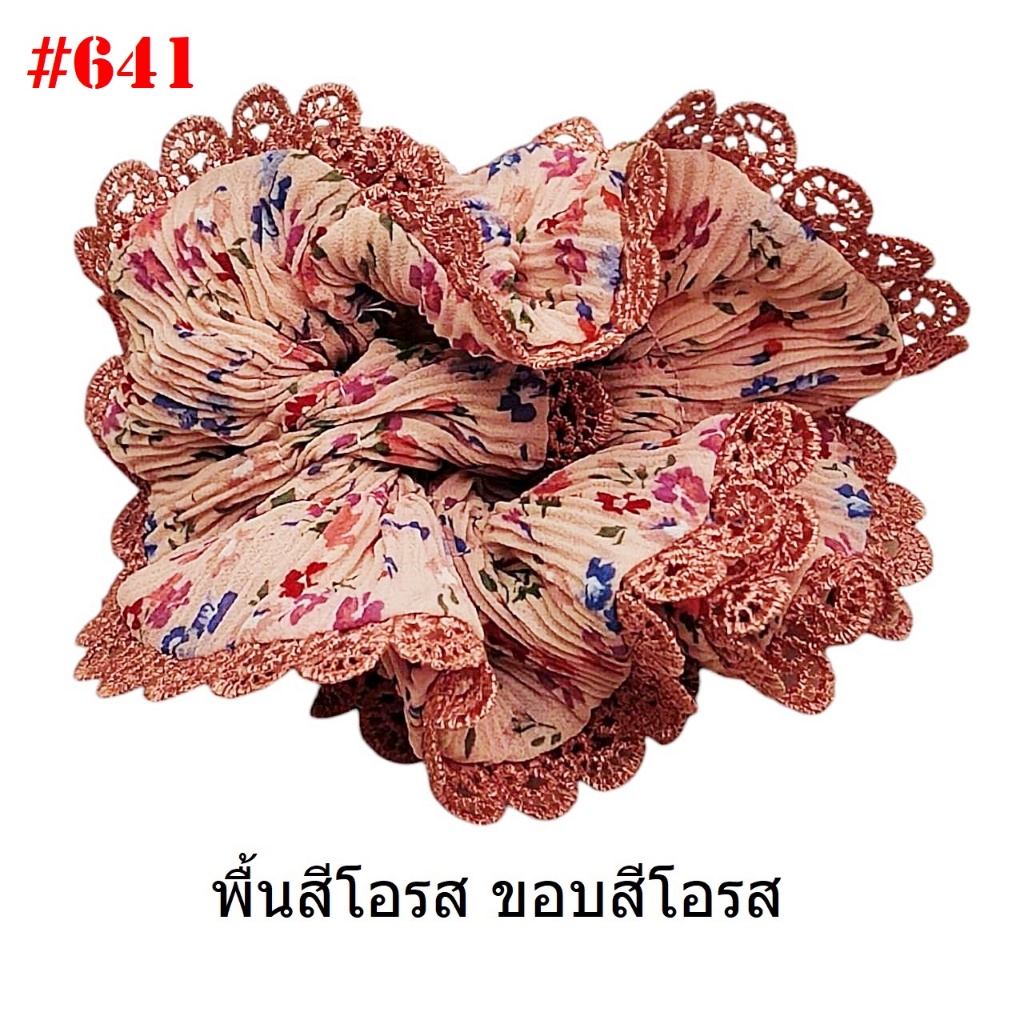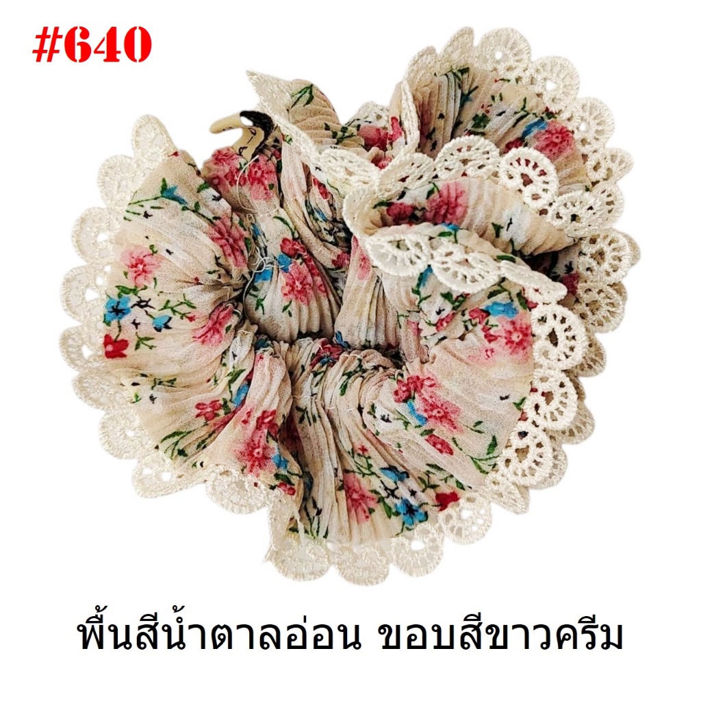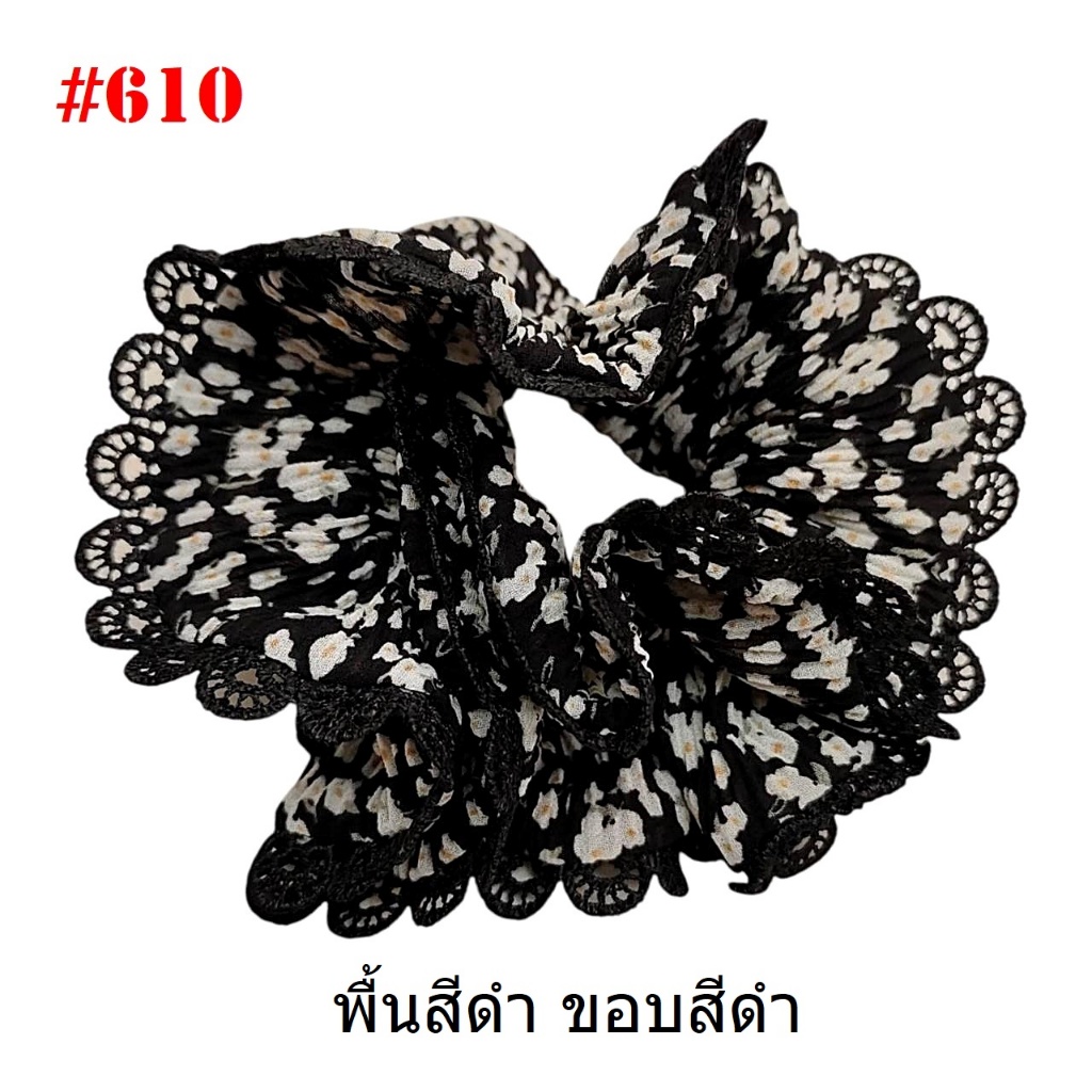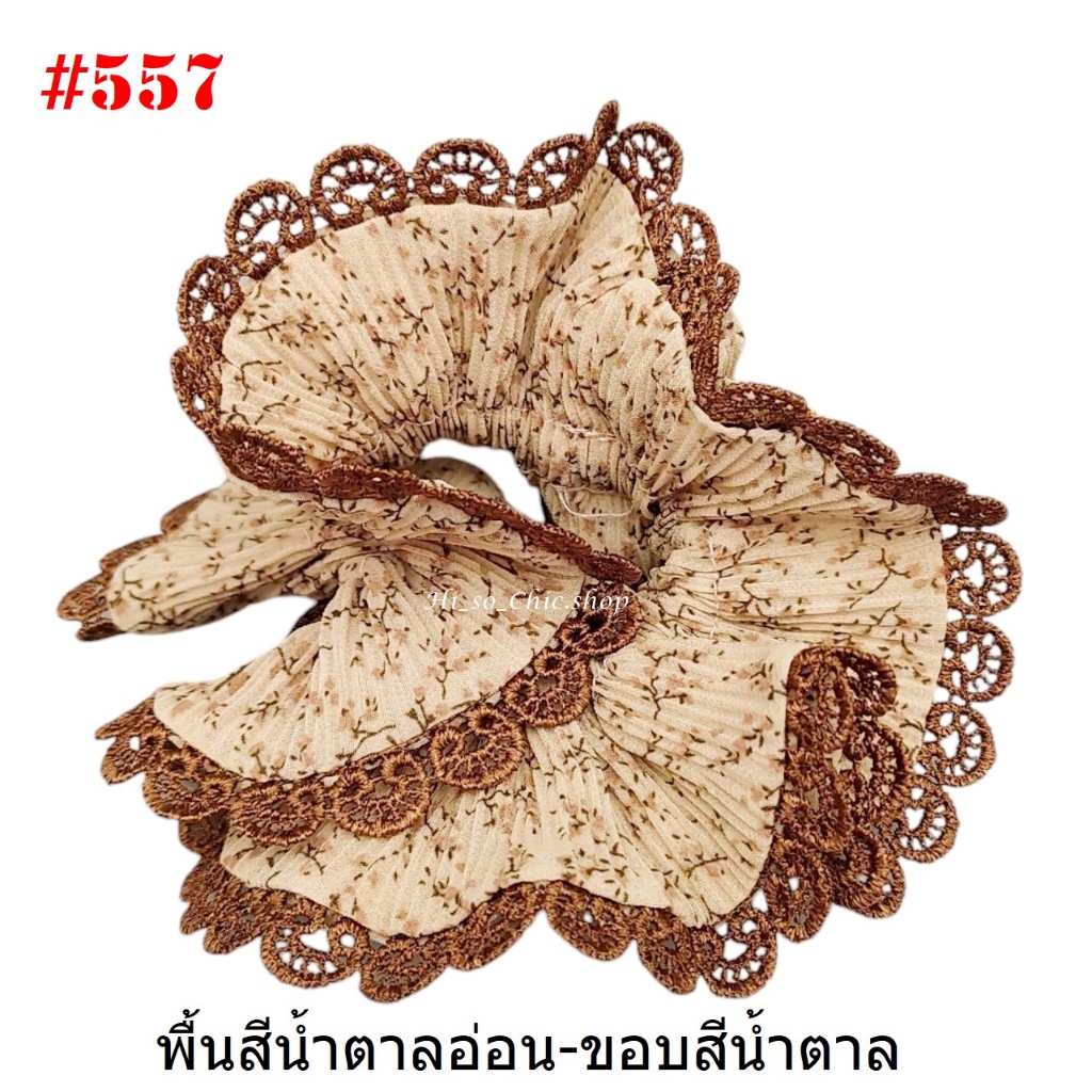 (#541-655) A-ONE ยางมัดผม ยางรัดผม ยี่ห้อ เอ-วัน A1 ผ้าอัดพลีด ขอบลูกไม้ (ราคาต่อชิ้น)