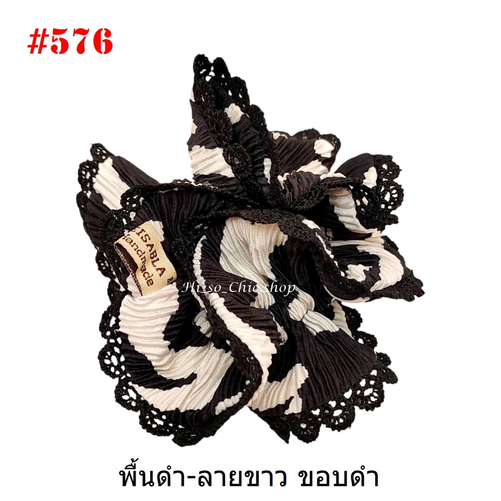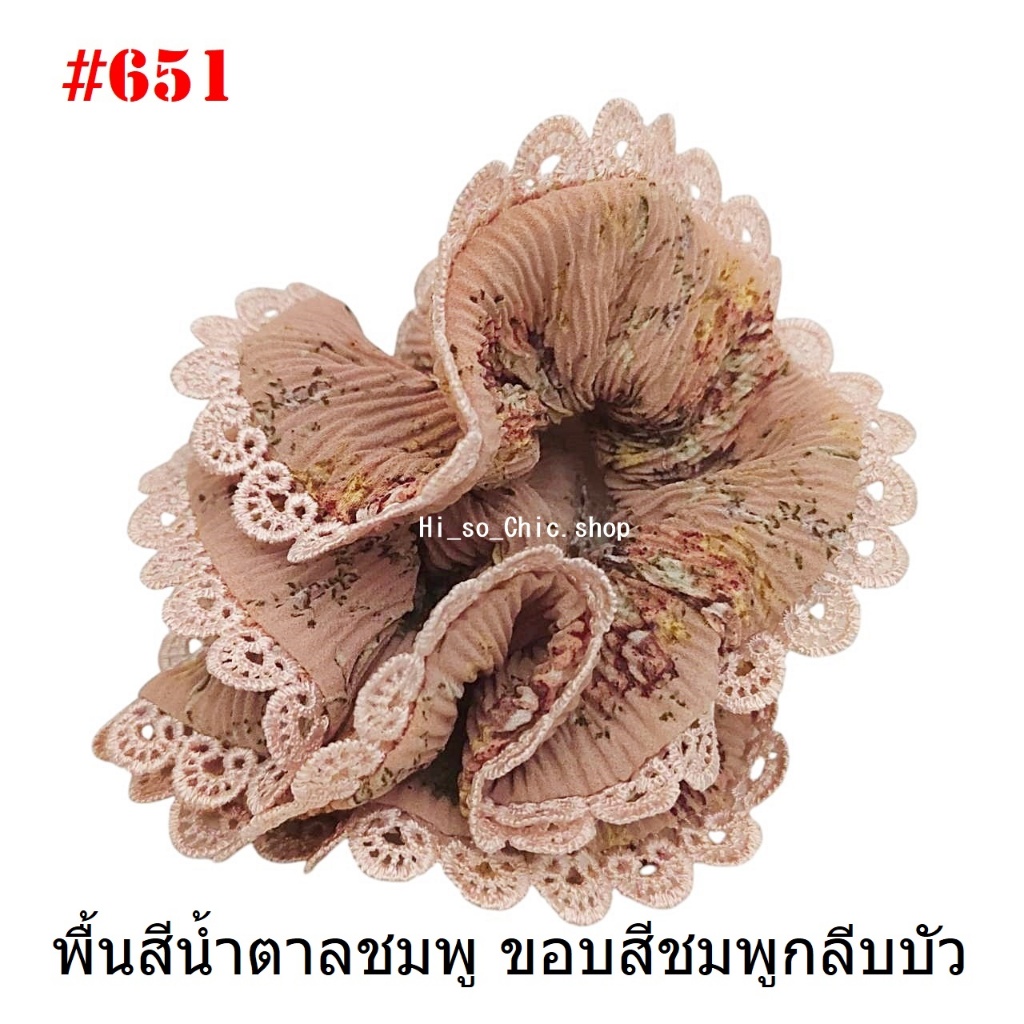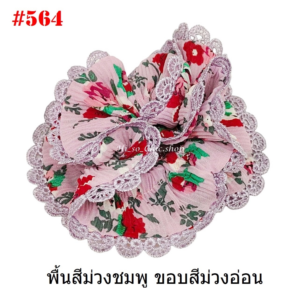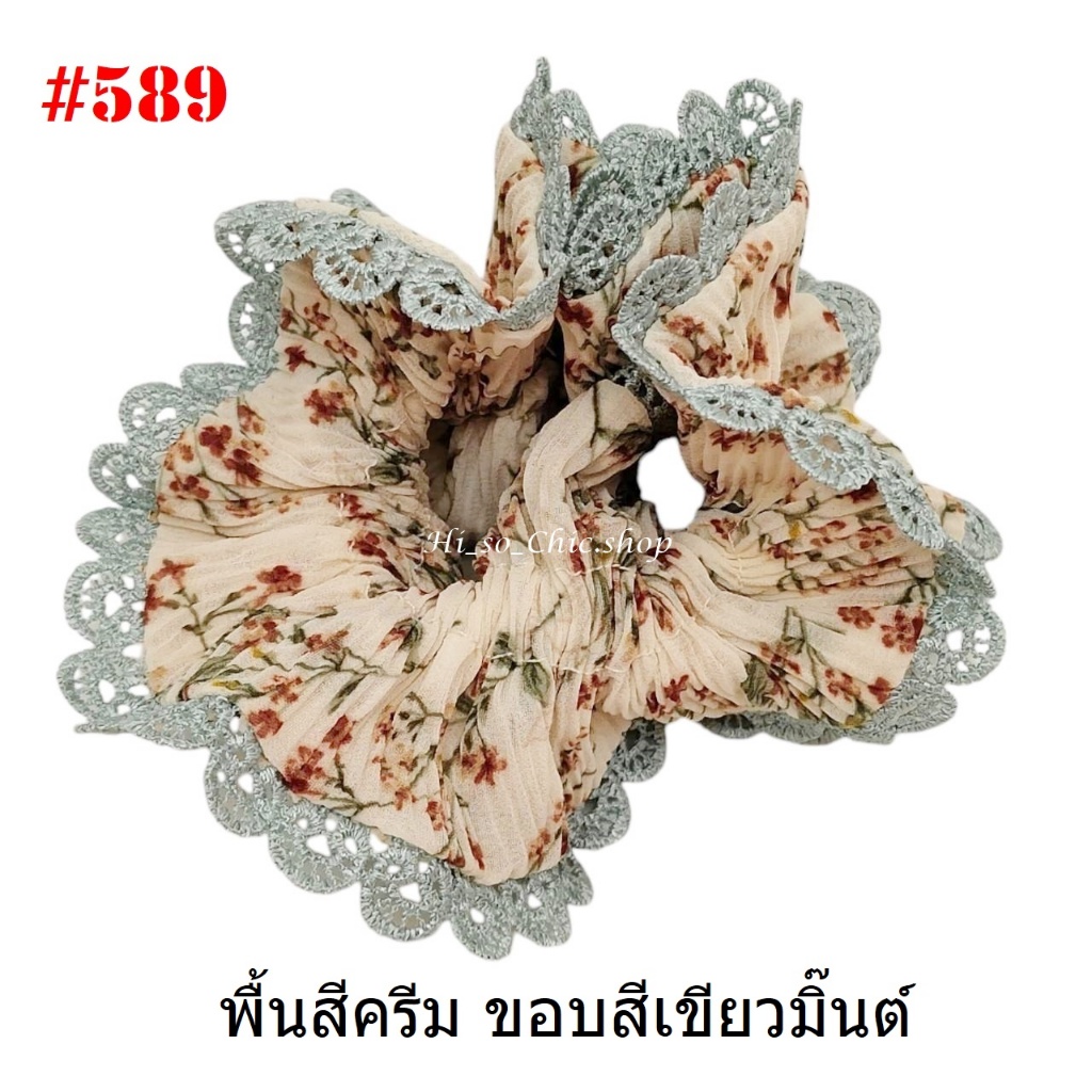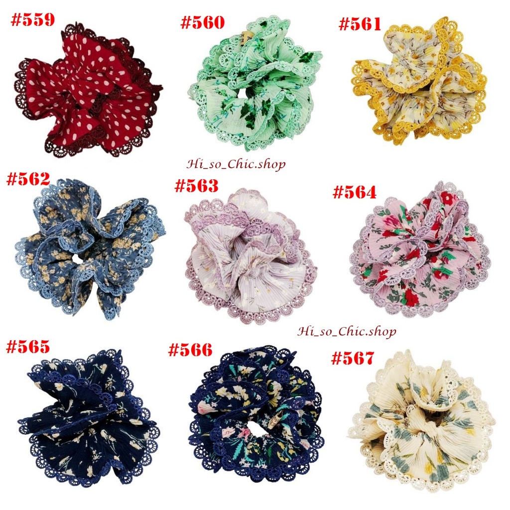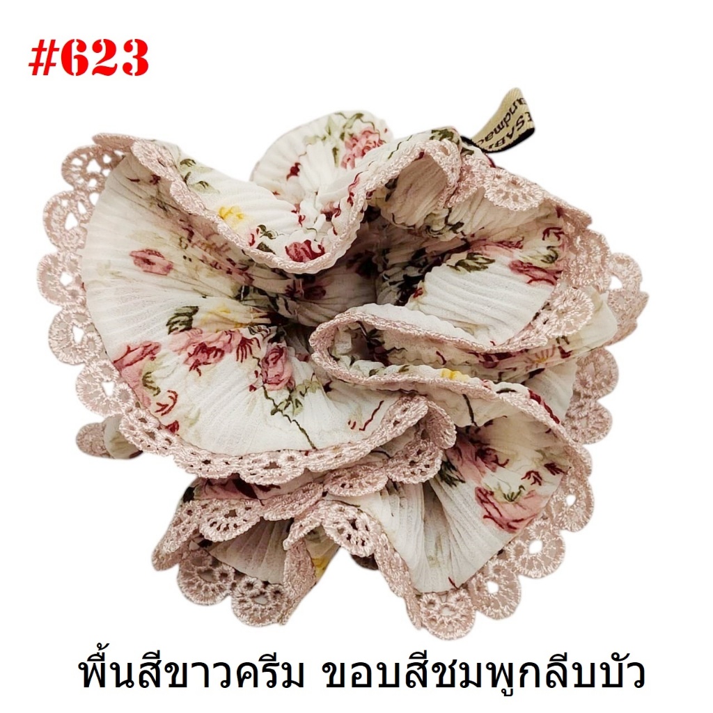 (#541-655) A-ONE ยางมัดผม ยางรัดผม ยี่ห้อ เอ-วัน A1 ผ้าอัดพลีด ขอบลูกไม้ (ราคาต่อชิ้น)