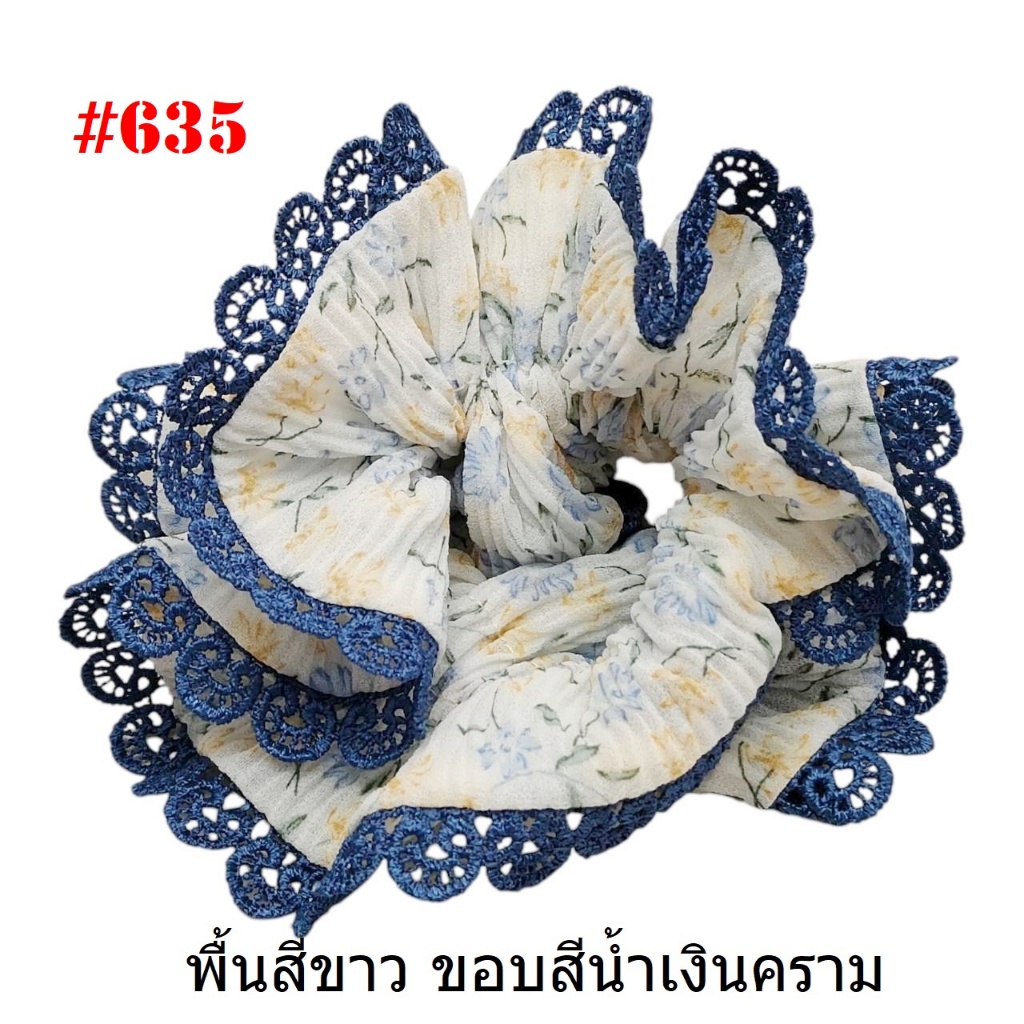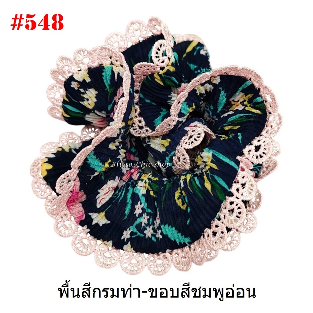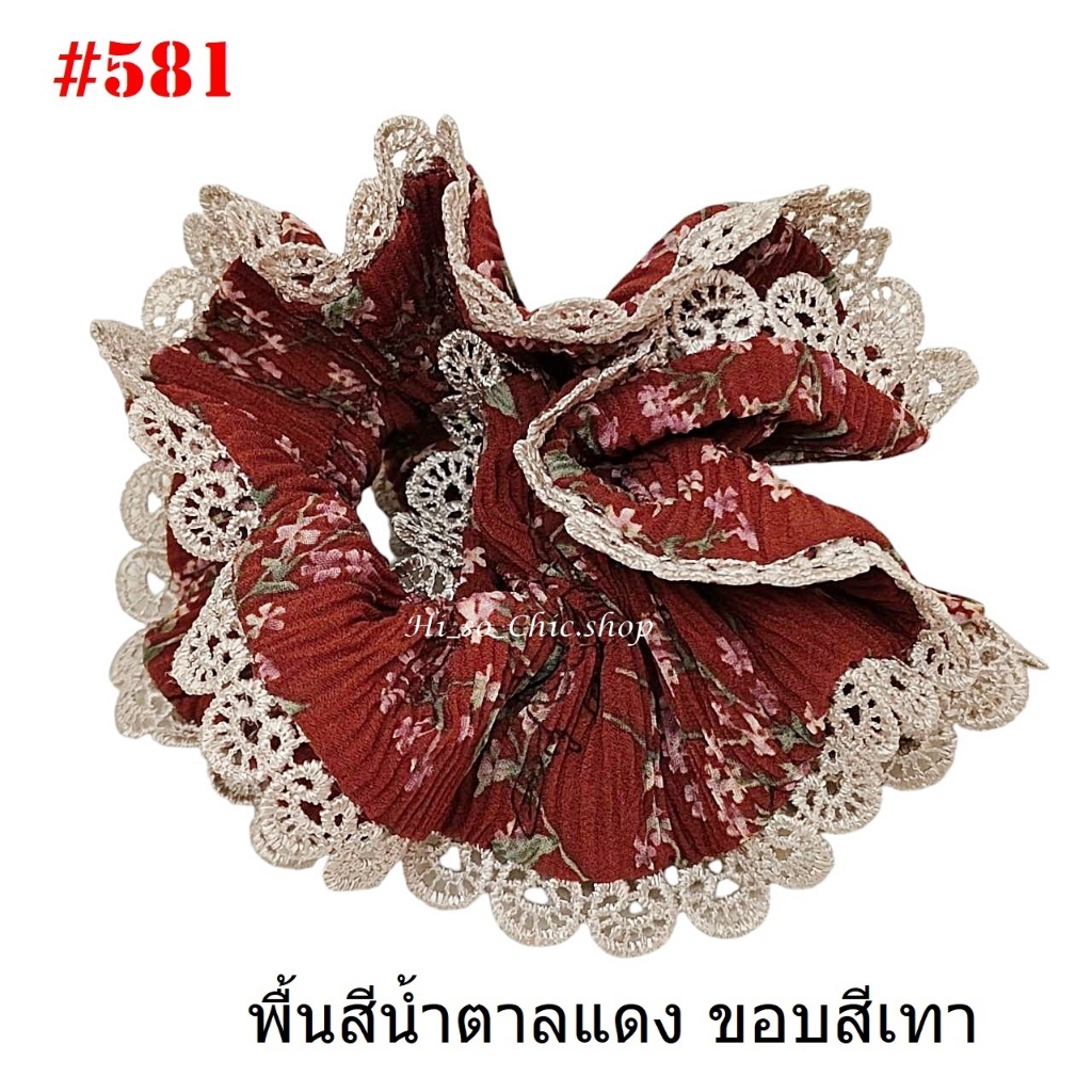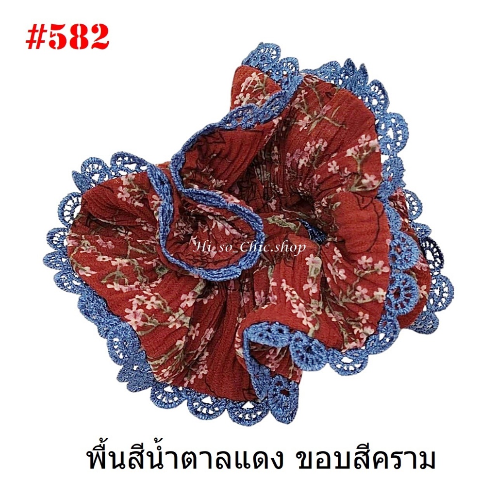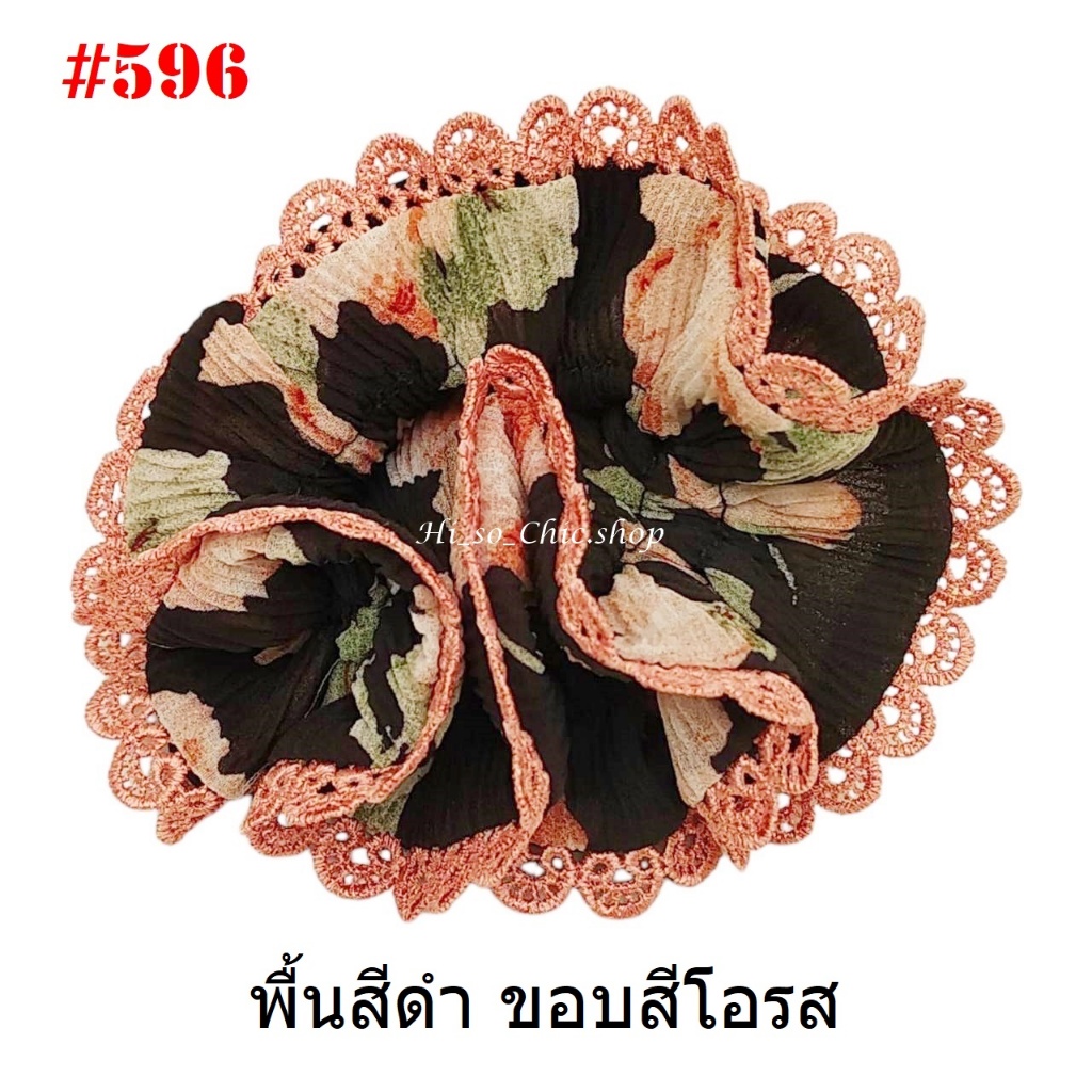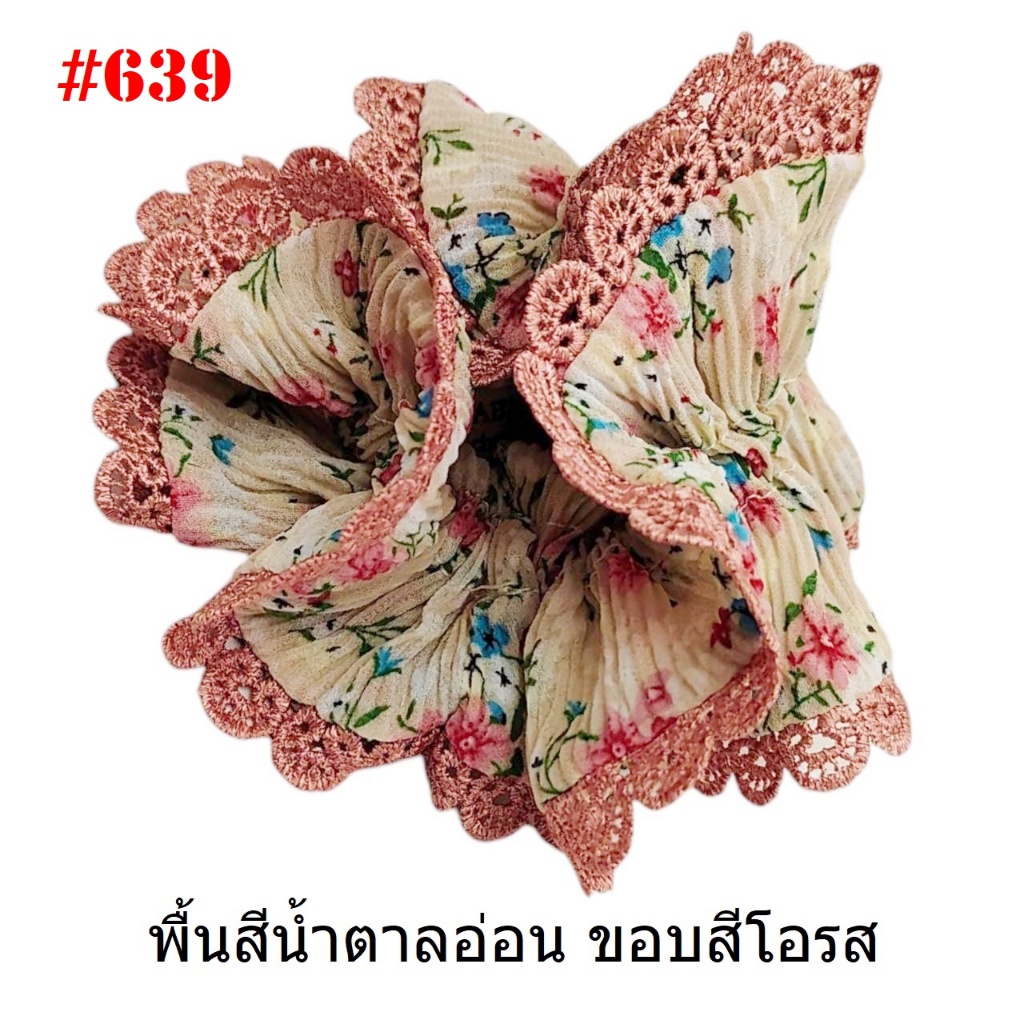 (#541-655) A-ONE ยางมัดผม ยางรัดผม ยี่ห้อ เอ-วัน A1 ผ้าอัดพลีด ขอบลูกไม้ (ราคาต่อชิ้น)