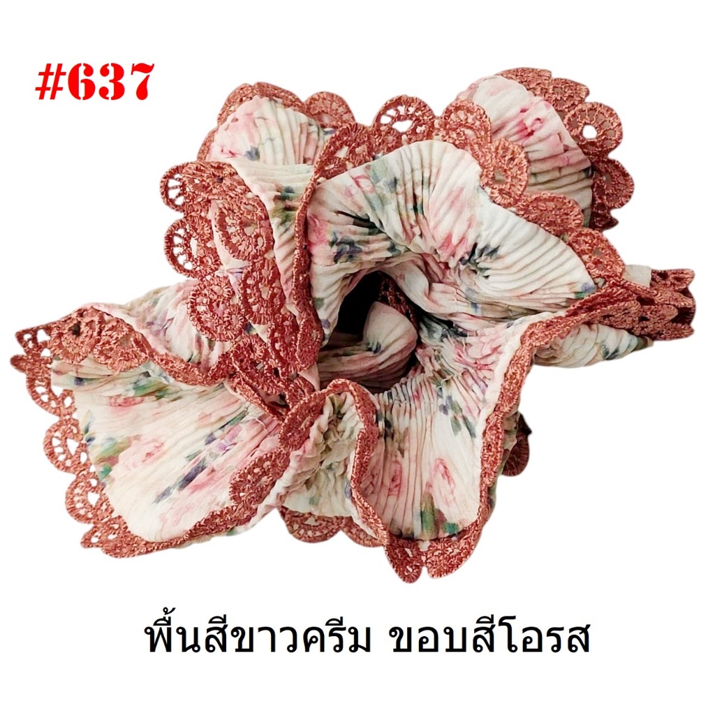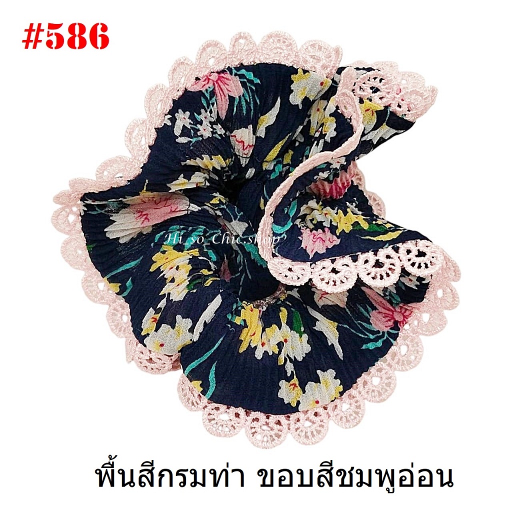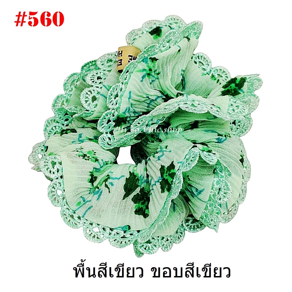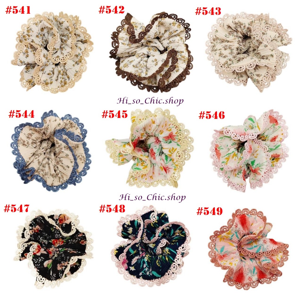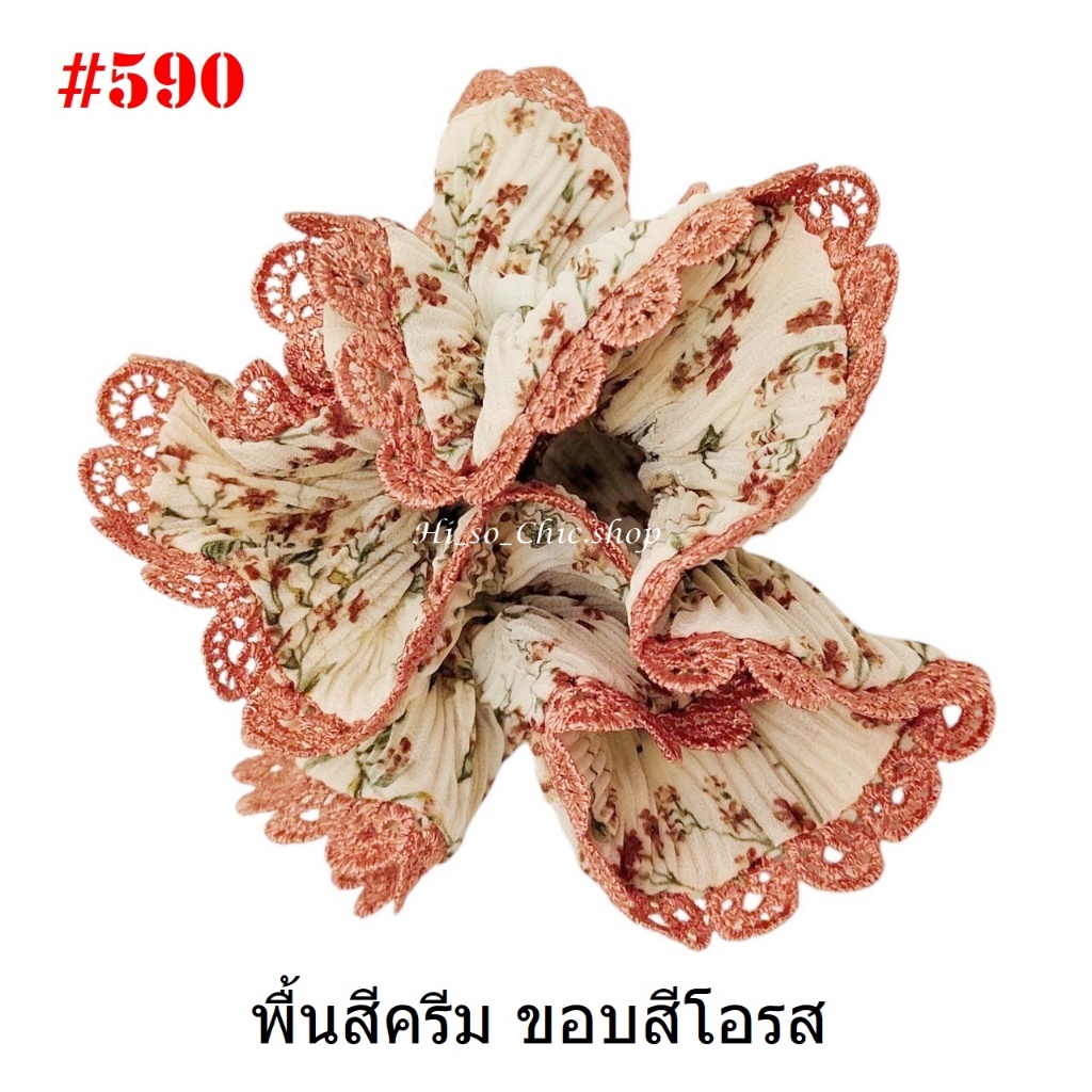 (#541-655) A-ONE ยางมัดผม ยางรัดผม ยี่ห้อ เอ-วัน A1 ผ้าอัดพลีด ขอบลูกไม้ (ราคาต่อชิ้น)