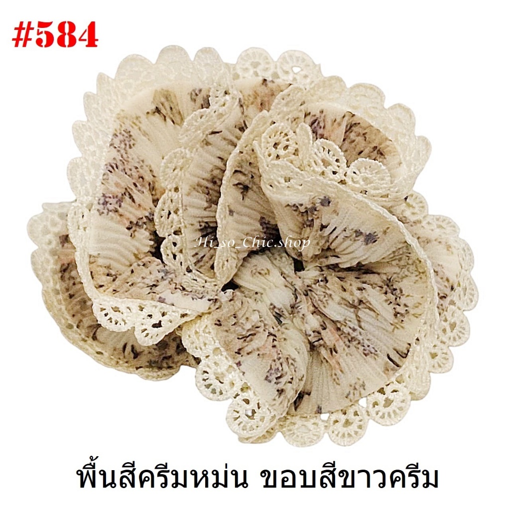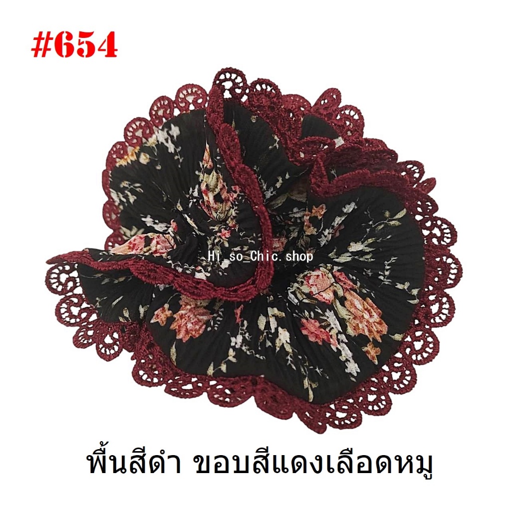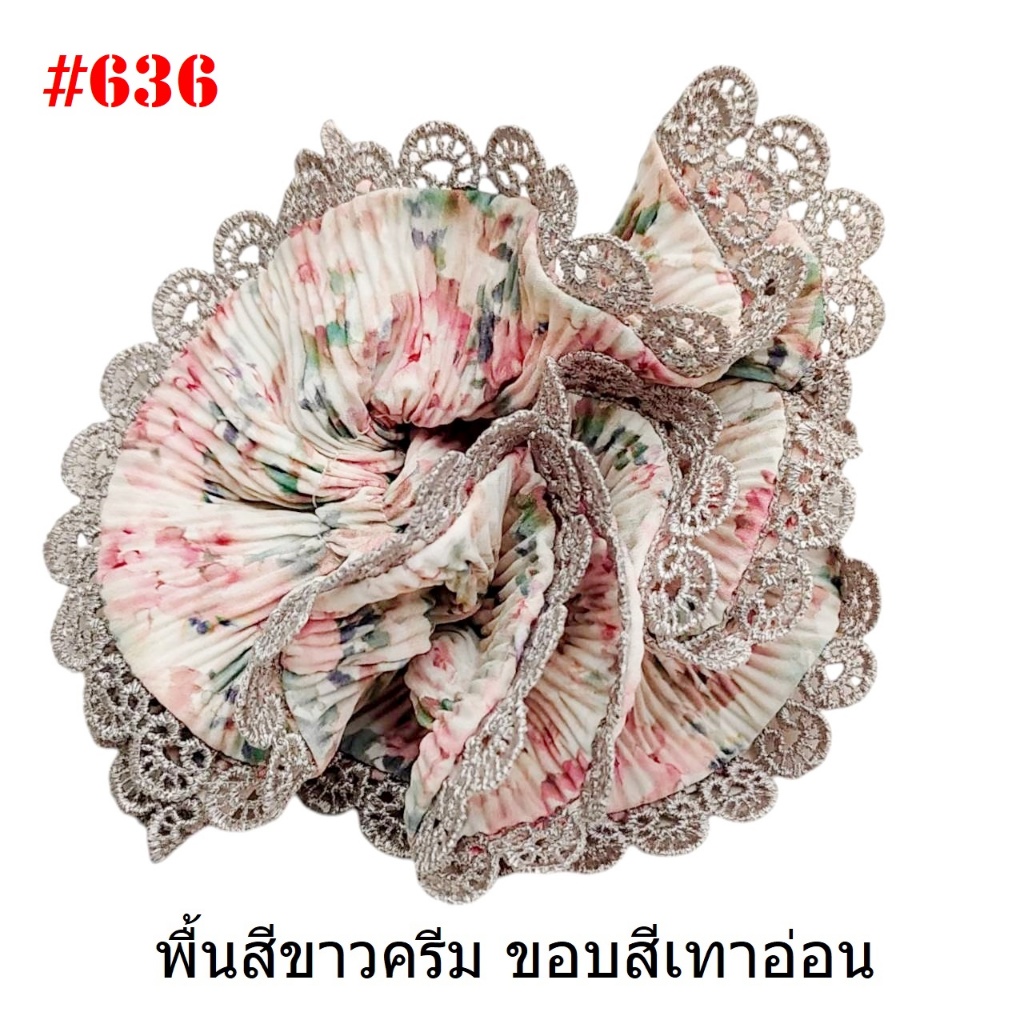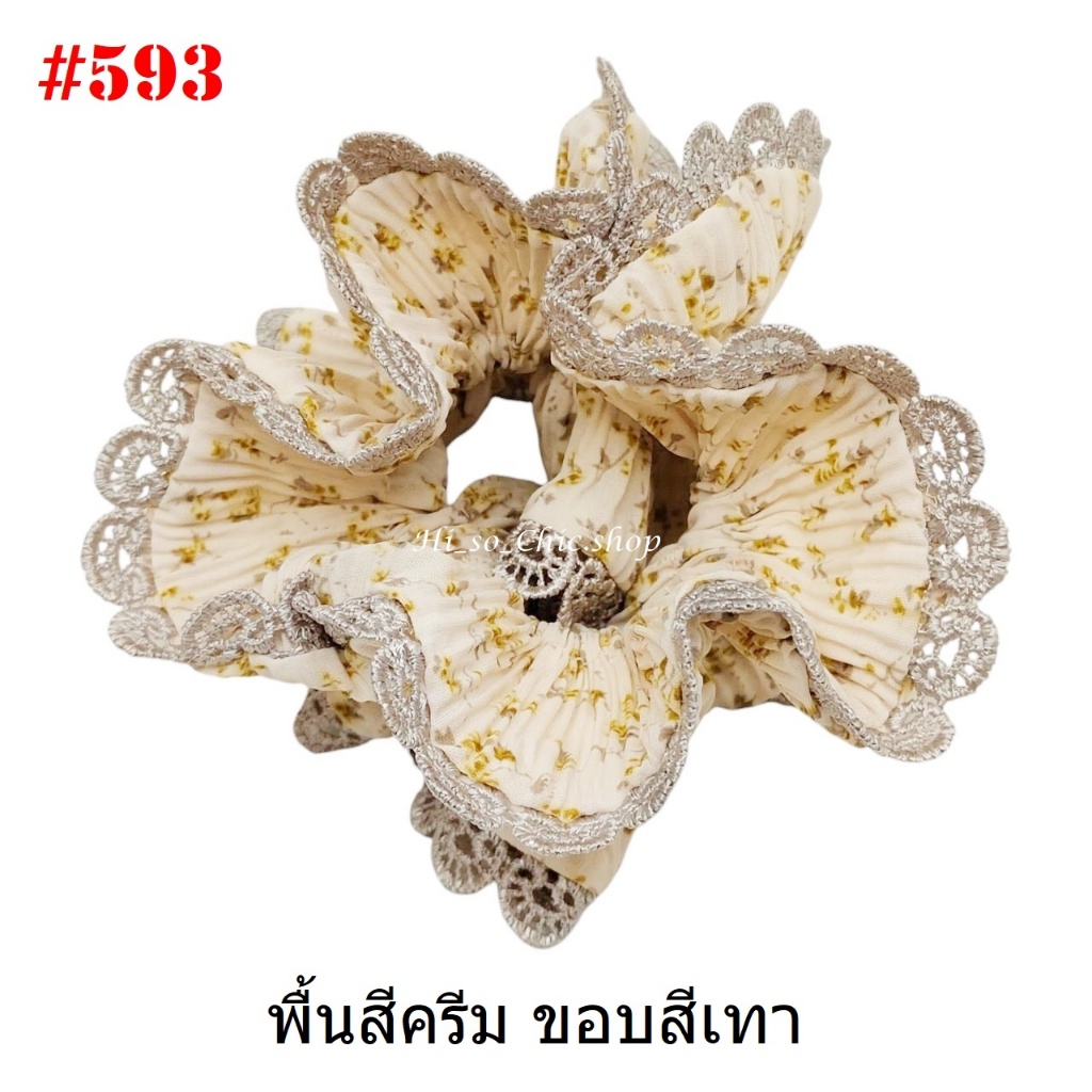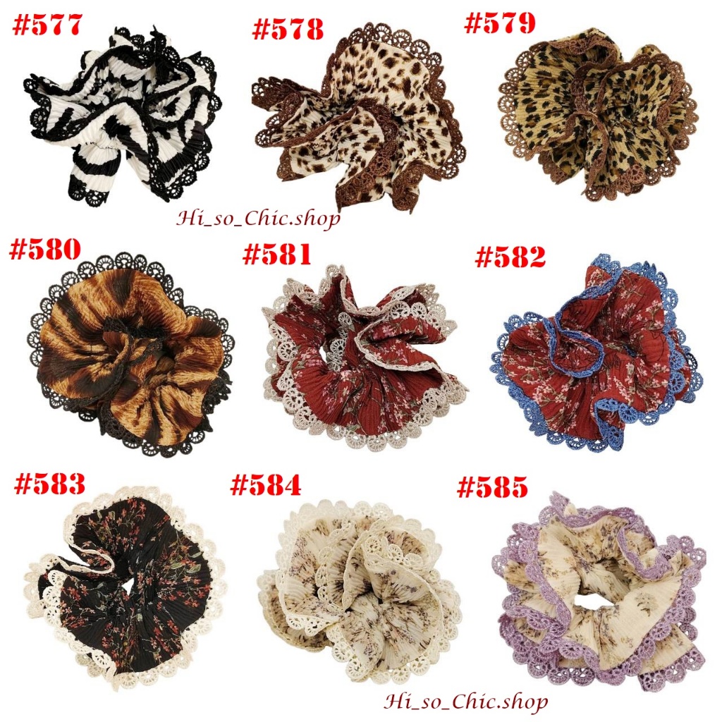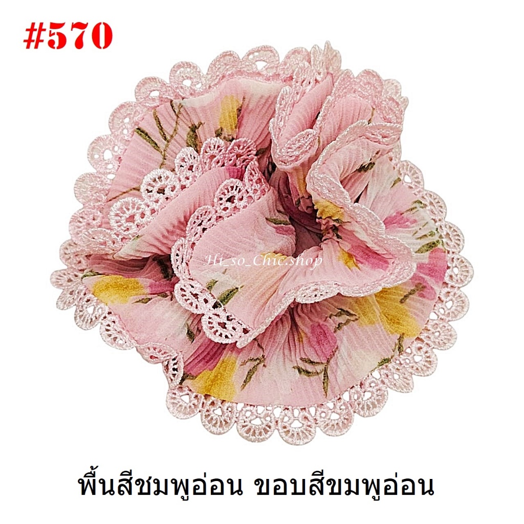 (#541-655) A-ONE ยางมัดผม ยางรัดผม ยี่ห้อ เอ-วัน A1 ผ้าอัดพลีด ขอบลูกไม้ (ราคาต่อชิ้น)