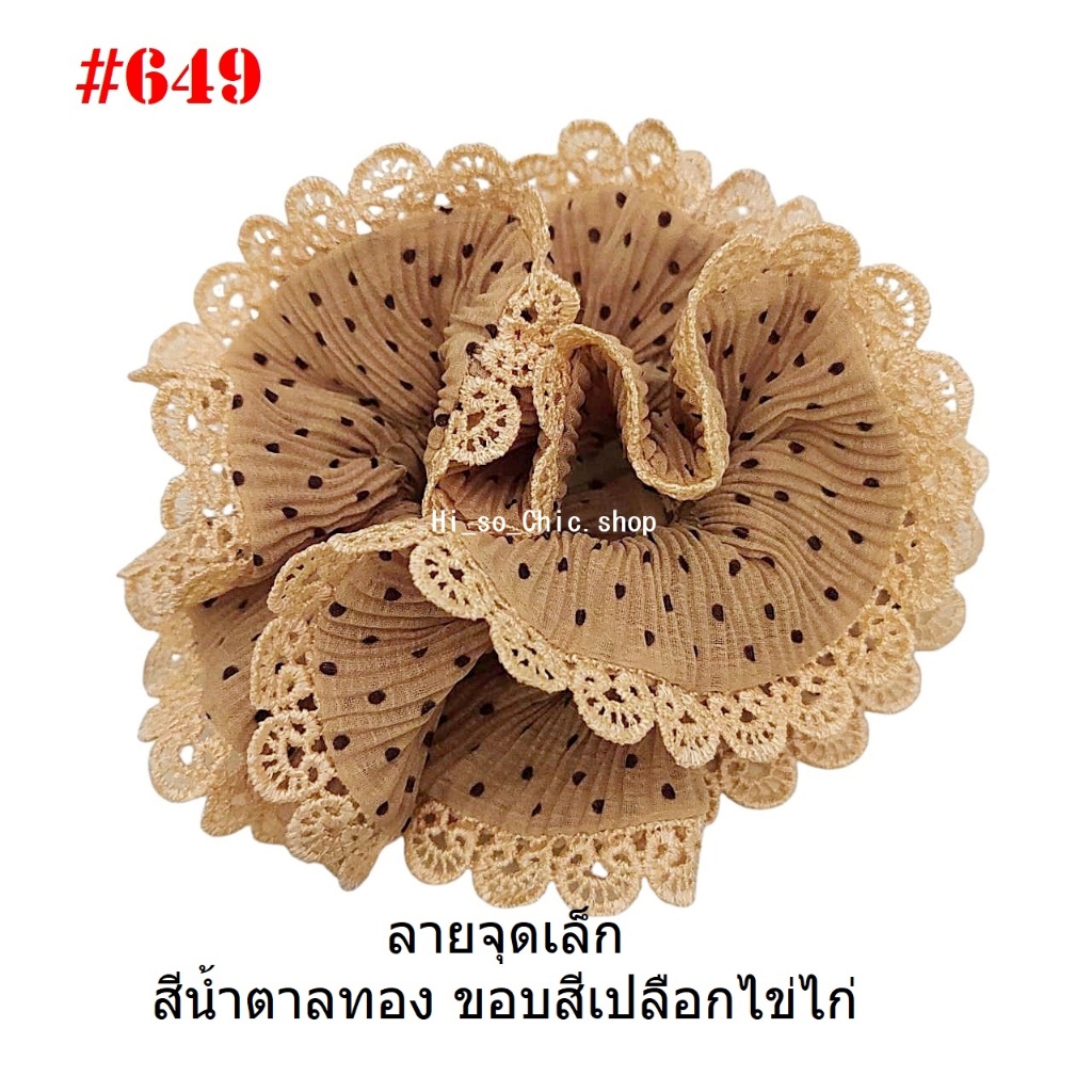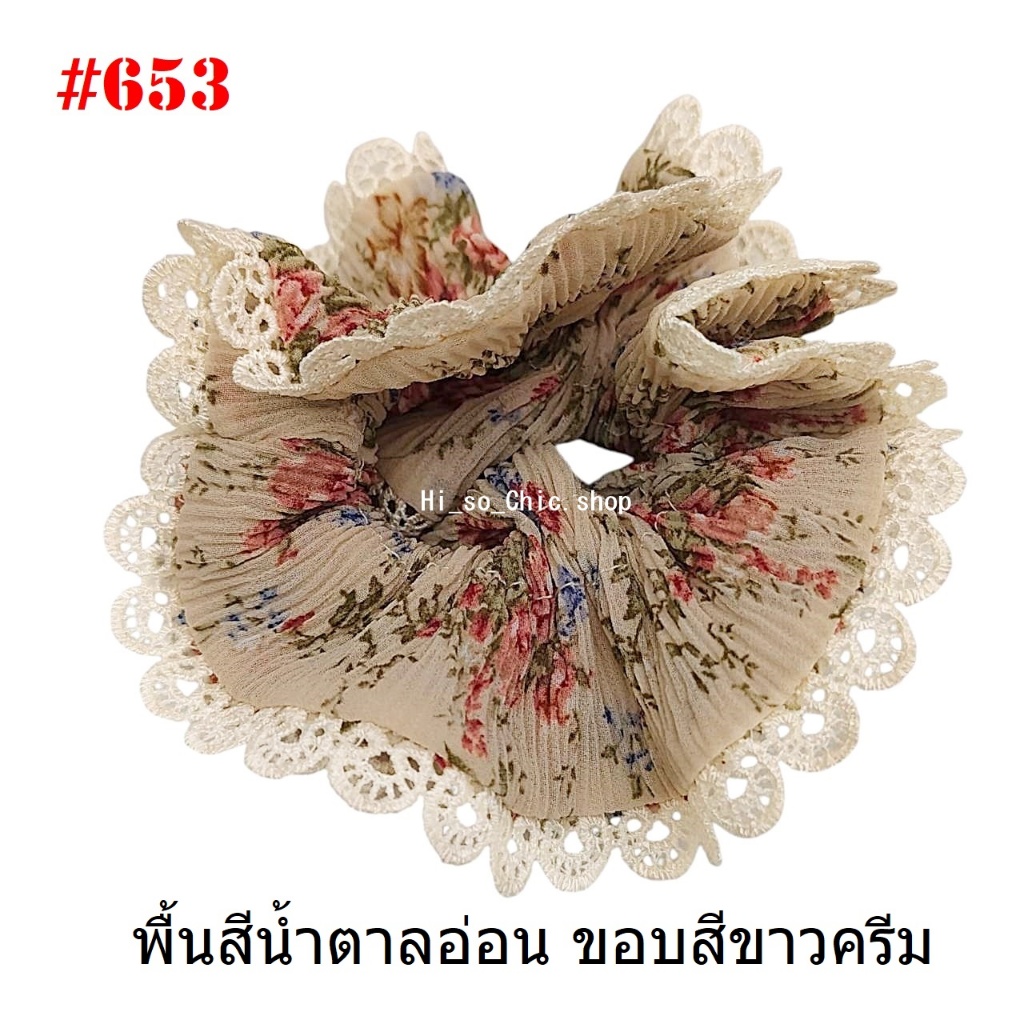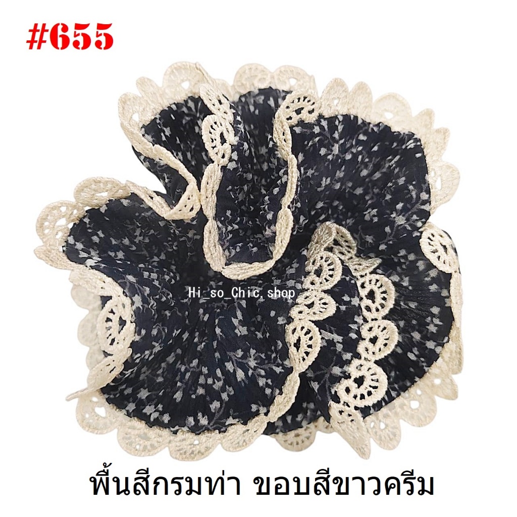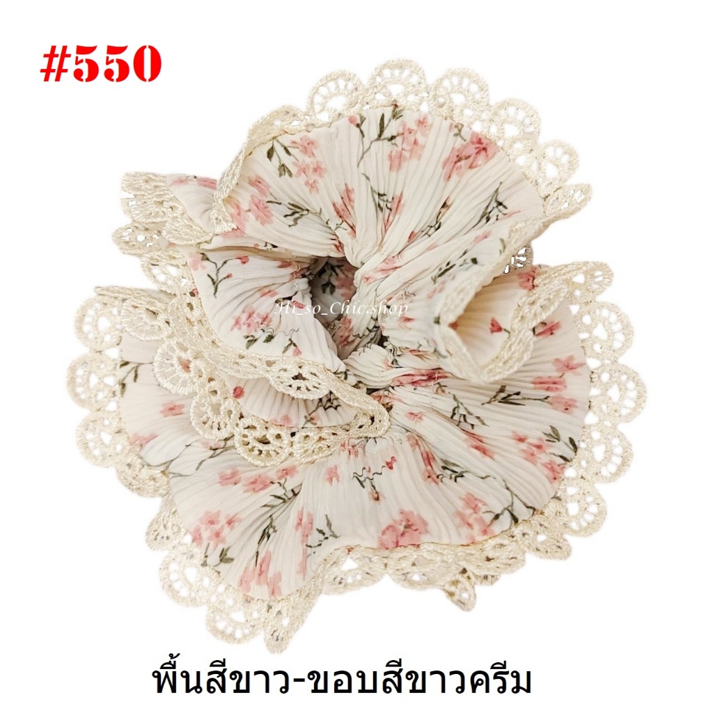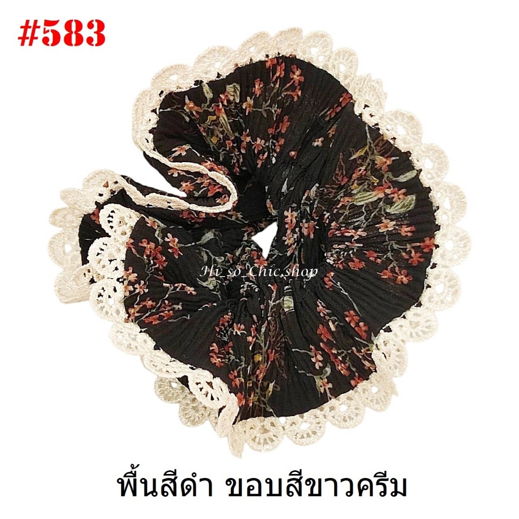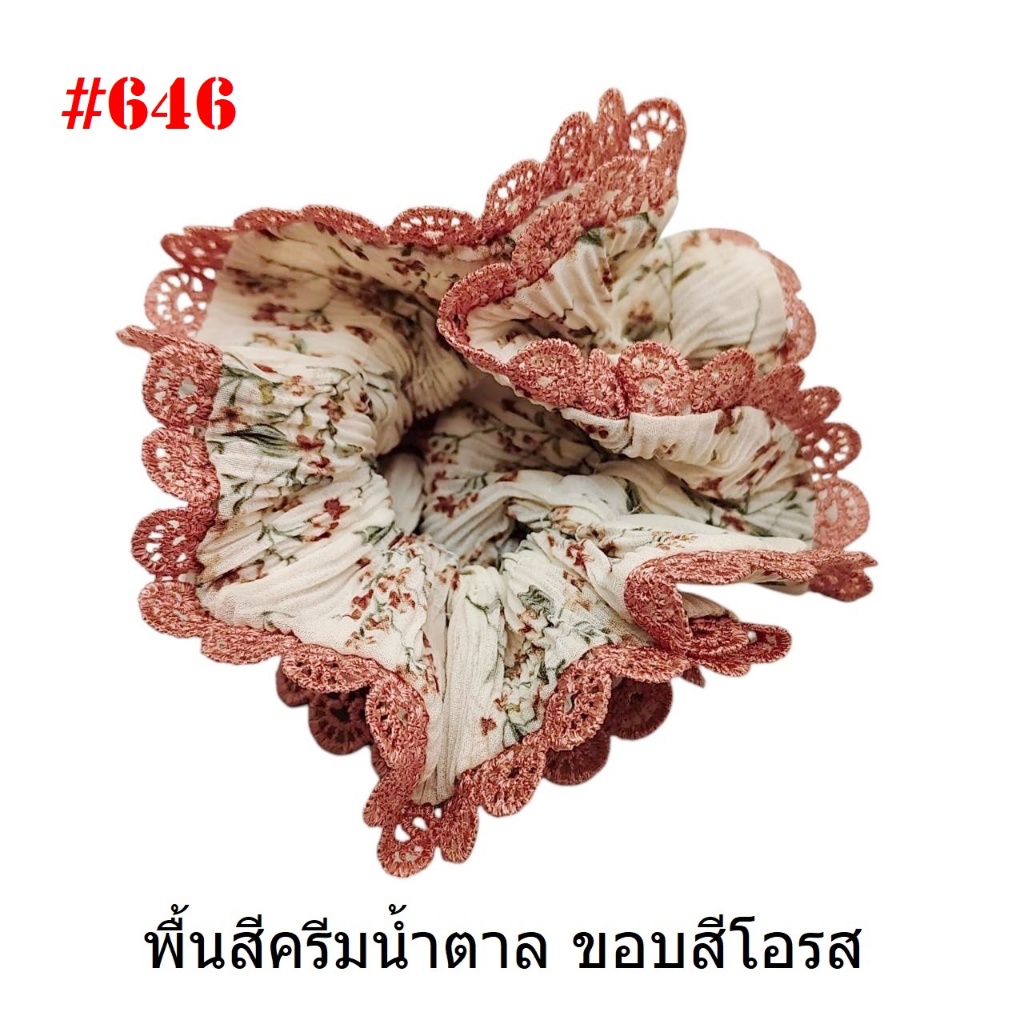 (#541-655) A-ONE ยางมัดผม ยางรัดผม ยี่ห้อ เอ-วัน A1 ผ้าอัดพลีด ขอบลูกไม้ (ราคาต่อชิ้น)