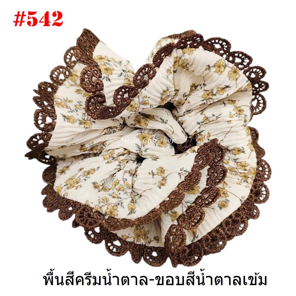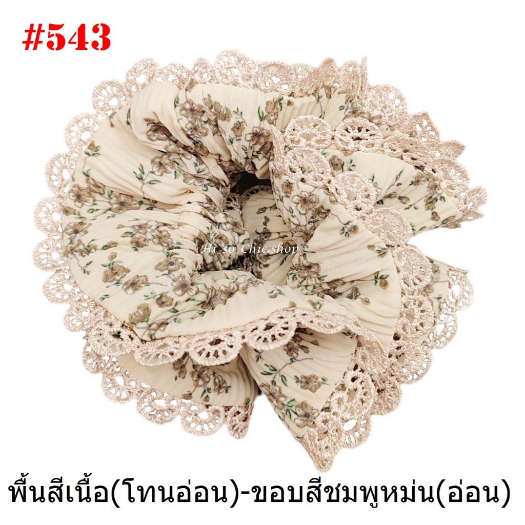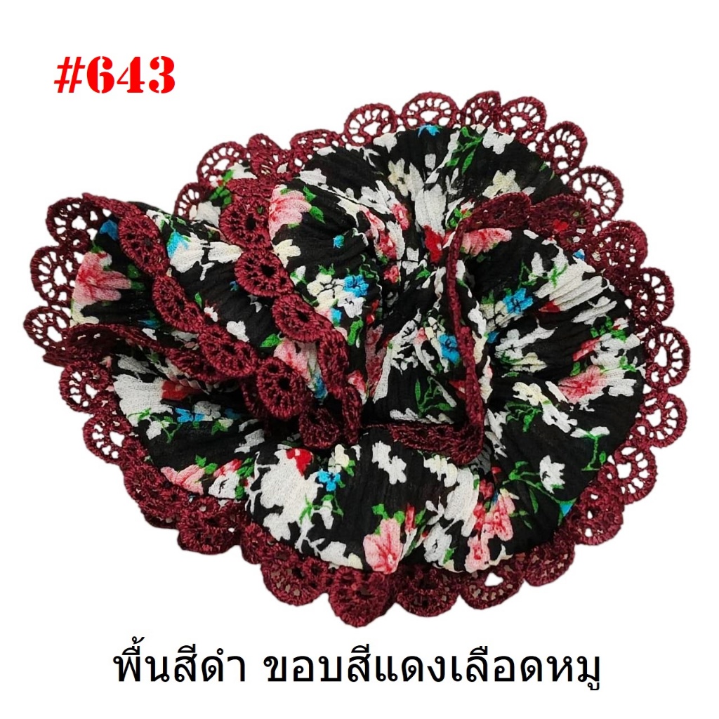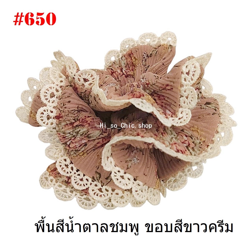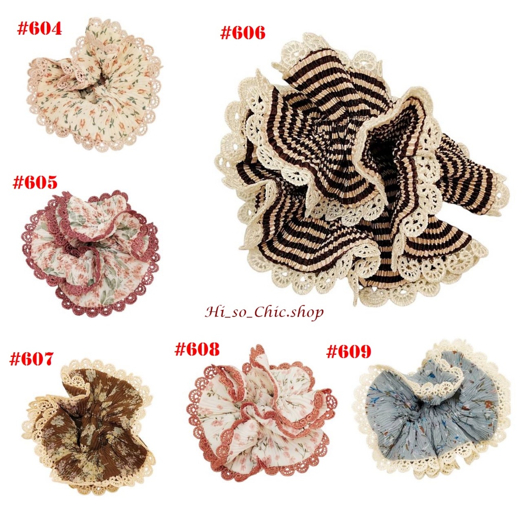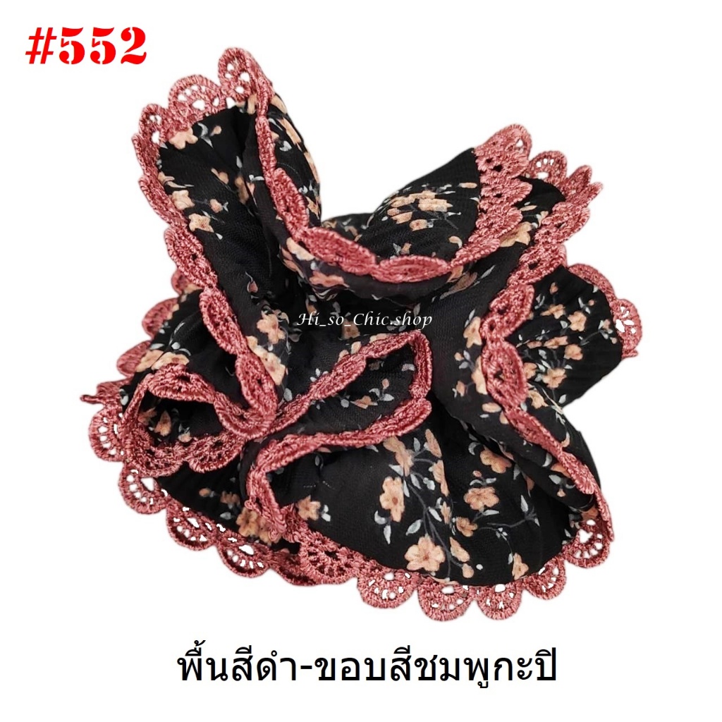 (#541-655) A-ONE ยางมัดผม ยางรัดผม ยี่ห้อ เอ-วัน A1 ผ้าอัดพลีด ขอบลูกไม้ (ราคาต่อชิ้น)