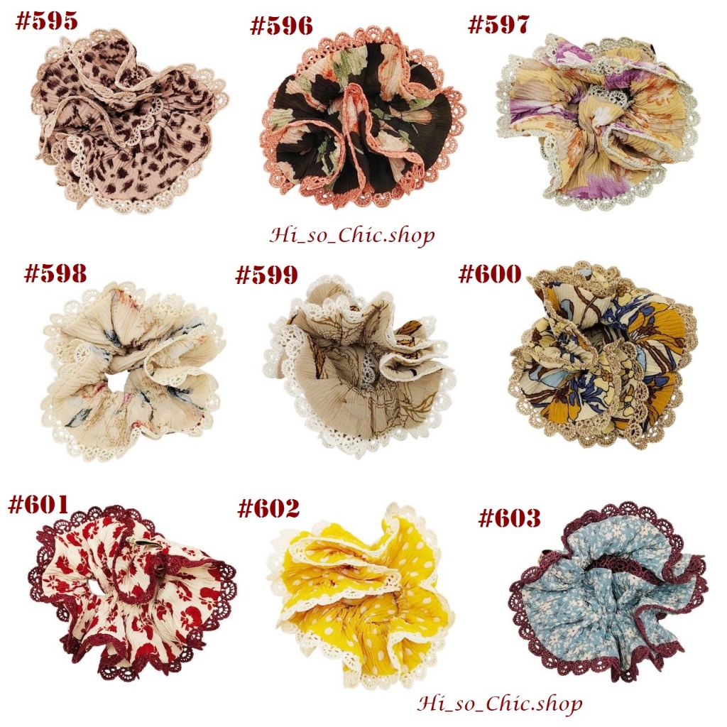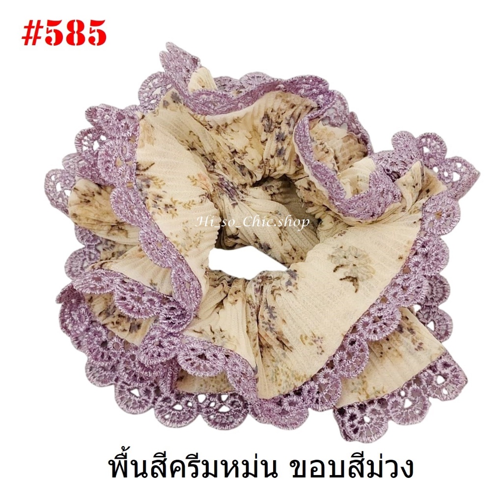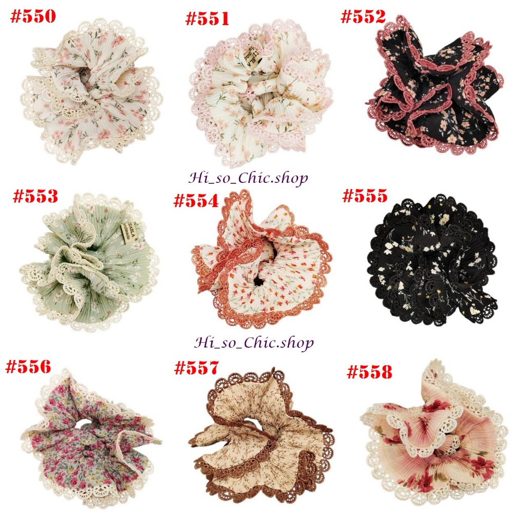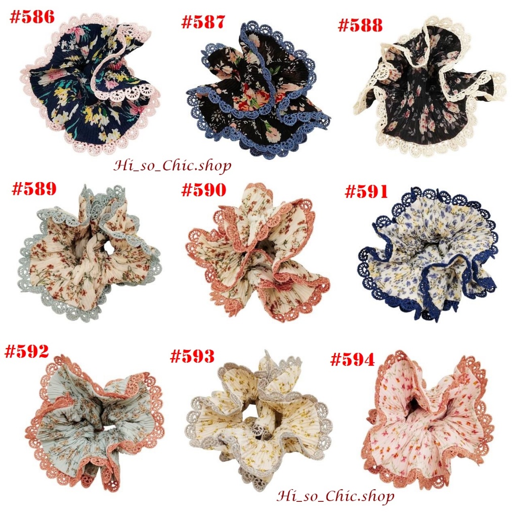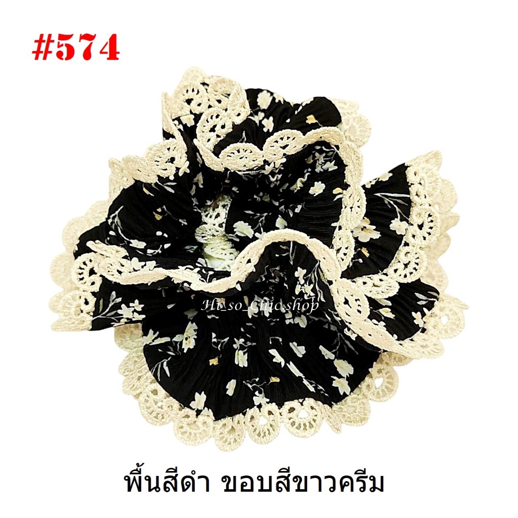 (#541-655) A-ONE ยางมัดผม ยางรัดผม ยี่ห้อ เอ-วัน A1 ผ้าอัดพลีด ขอบลูกไม้ (ราคาต่อชิ้น)