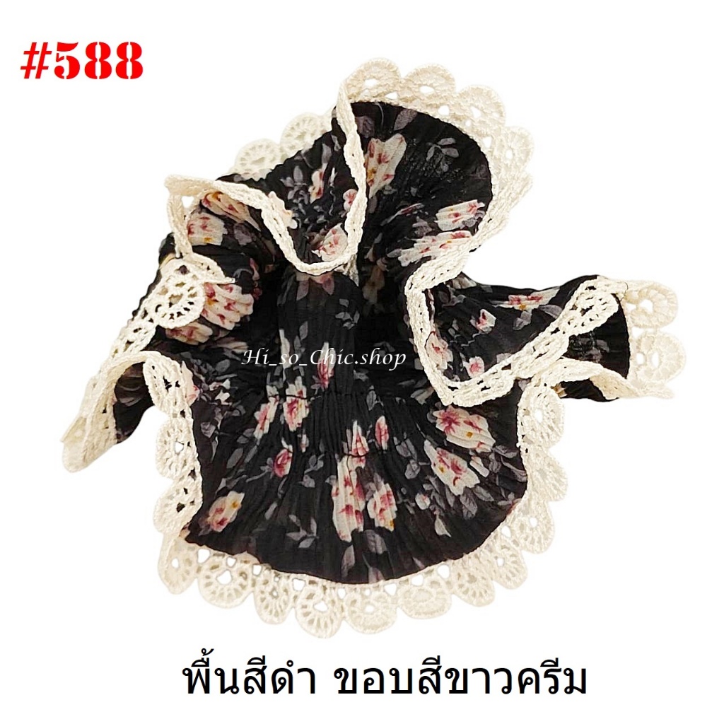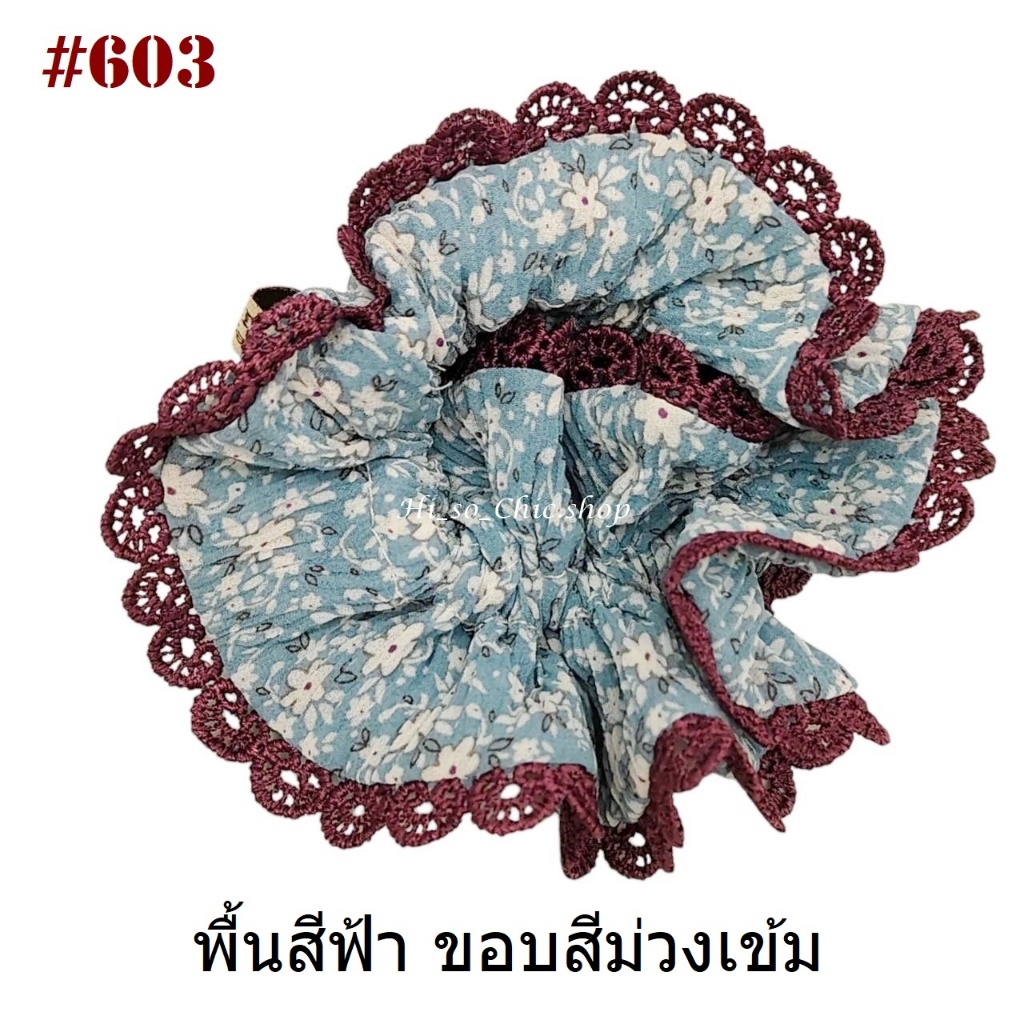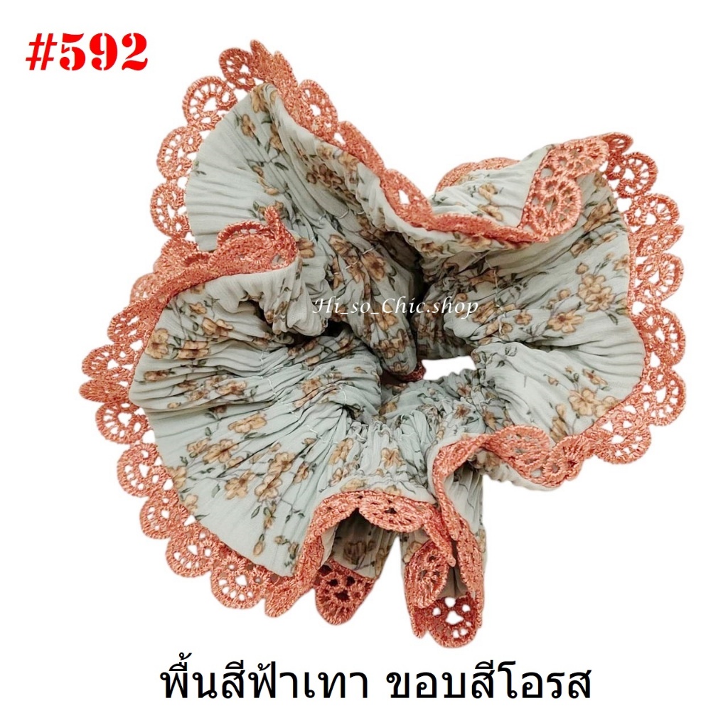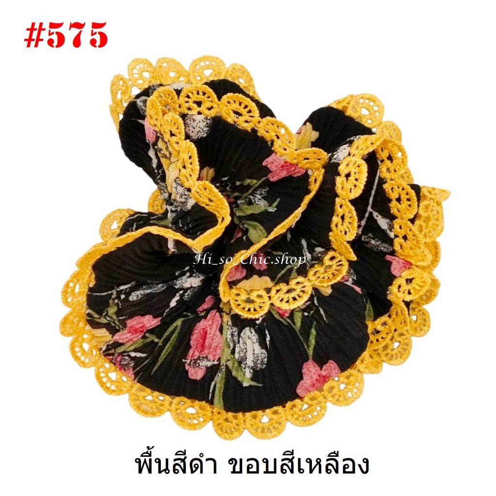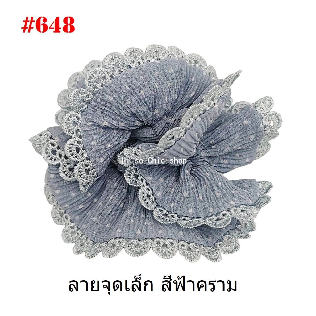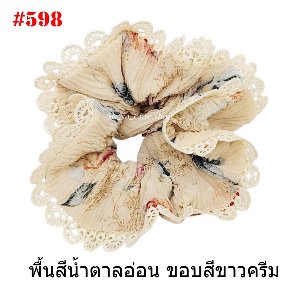 (#541-655) A-ONE ยางมัดผม ยางรัดผม ยี่ห้อ เอ-วัน A1 ผ้าอัดพลีด ขอบลูกไม้ (ราคาต่อชิ้น)