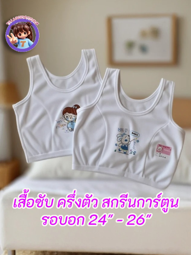 2 ตัว First bra ครึ่งตัว เสื้อซับใน กล้าม เด็กผู้หญิงอนุบาล พิมพ์อก 24" 26" ทับใน ซับใน สีขาว AVA