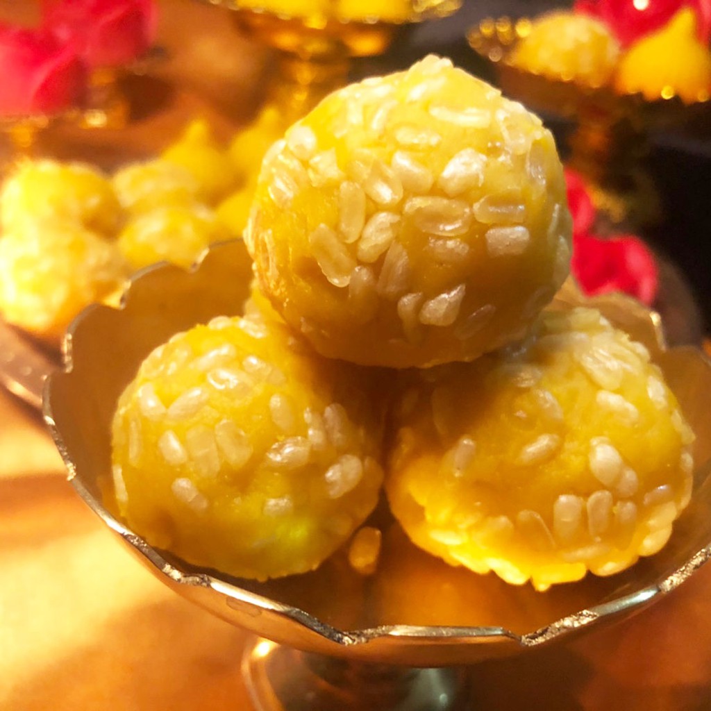 [ ขอพรได้ไวมาก ] ขนมลาดูก้อนทอง สูตรถั่วทอง ถวายพระคเนศ แถมฟรี เทียนหอม กำยาน (กล่อง 3 ชิ้น ขึ้นไป)