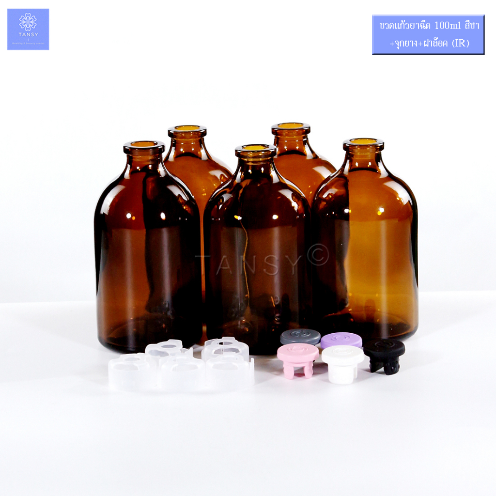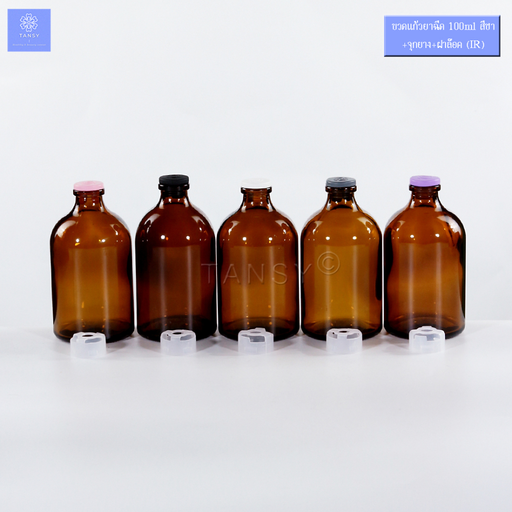 (10 ขวด) ขวดแก้วยาฉีด 100ml ชา +จุกยาง+ ฝาล๊อคใส (IR) ขวดแก้วเปล่า ใส่ น้ำหอม น้ำยาเคมี Diffuser COD