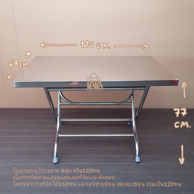 โต๊ะพับสแตนเลส 4ฟุต (แพ็คหนามาก) โต๊ะพับ4ฟุตสแตนเลส