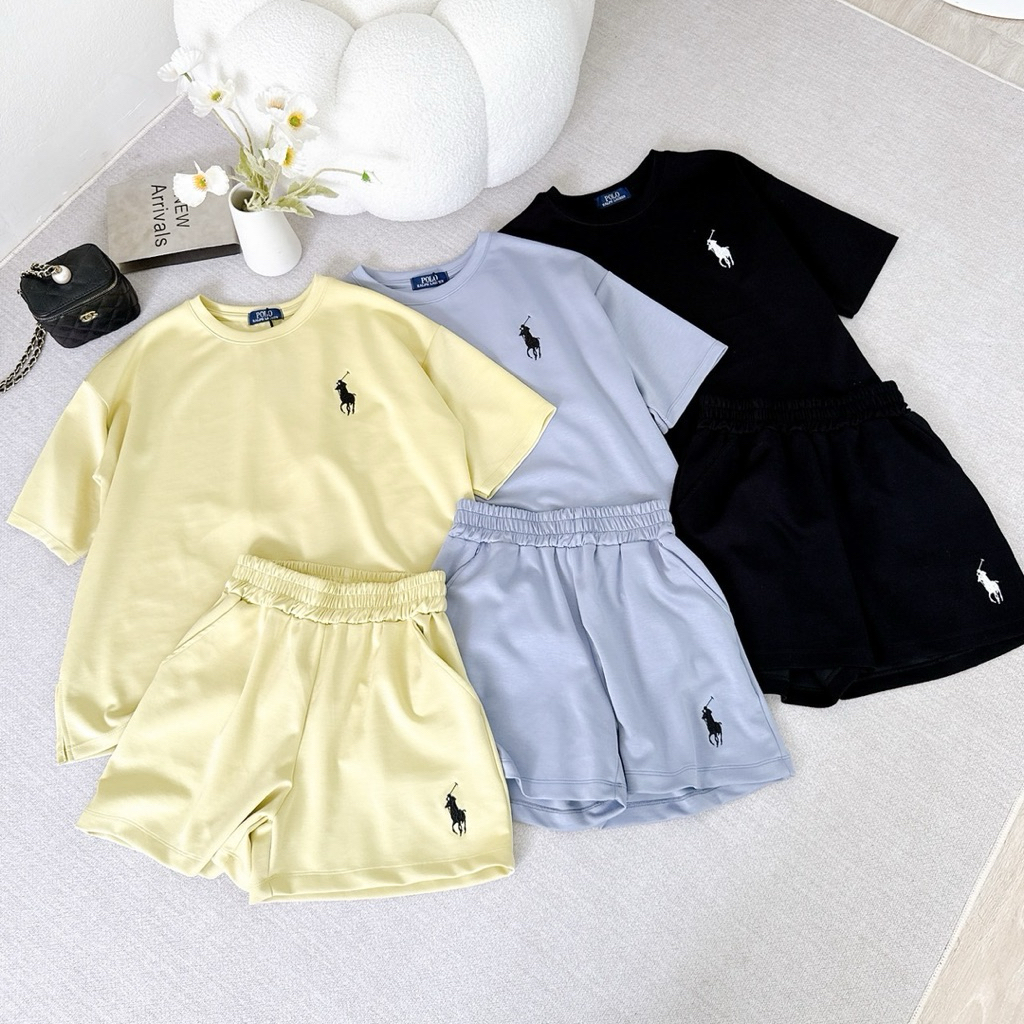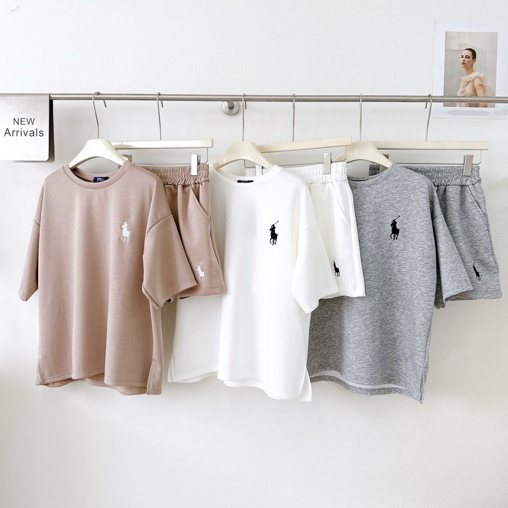 เซ็ตเสื้อคอกลมปัก(ม้า)กางเกงขาสั้นผ้าcottonนาโน