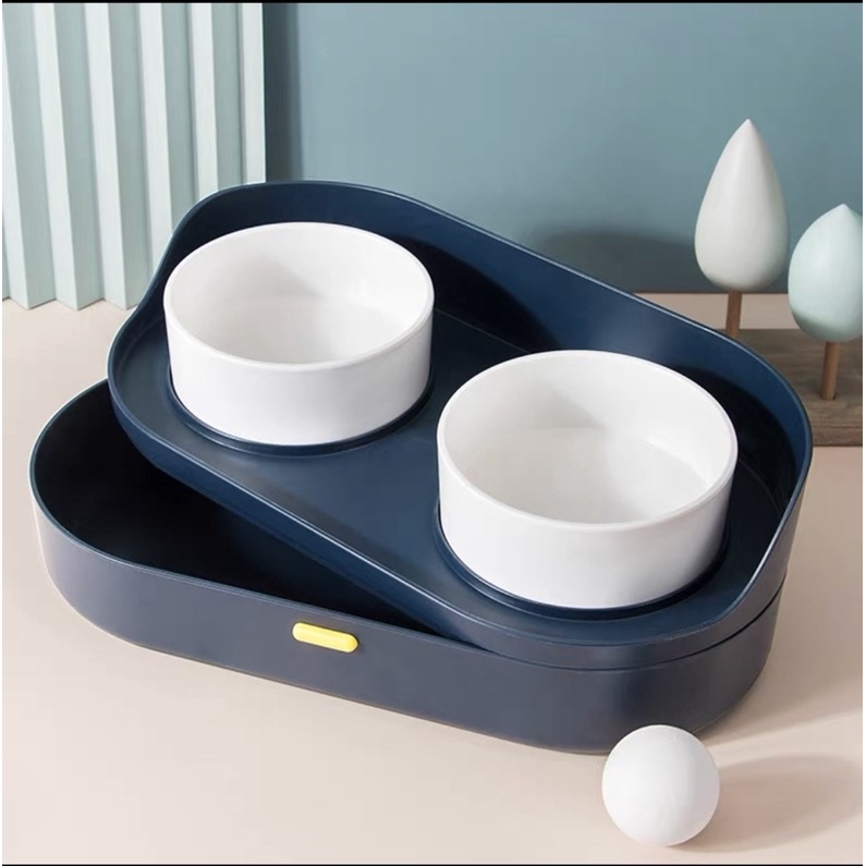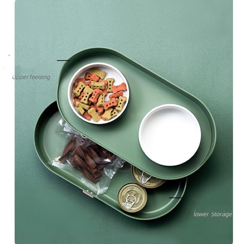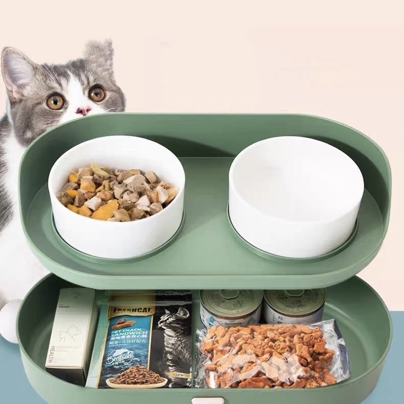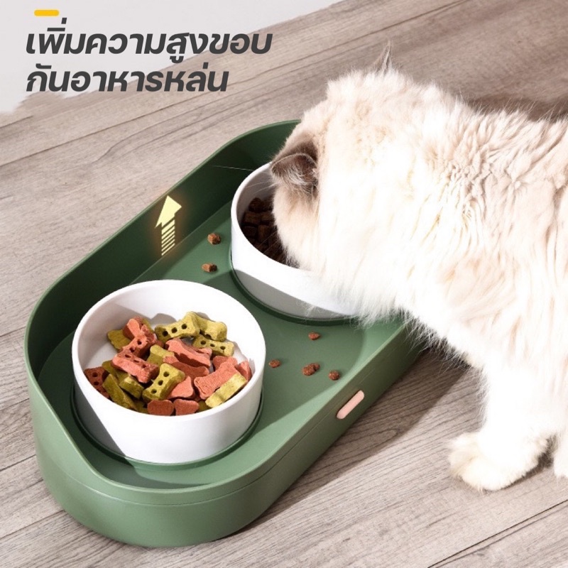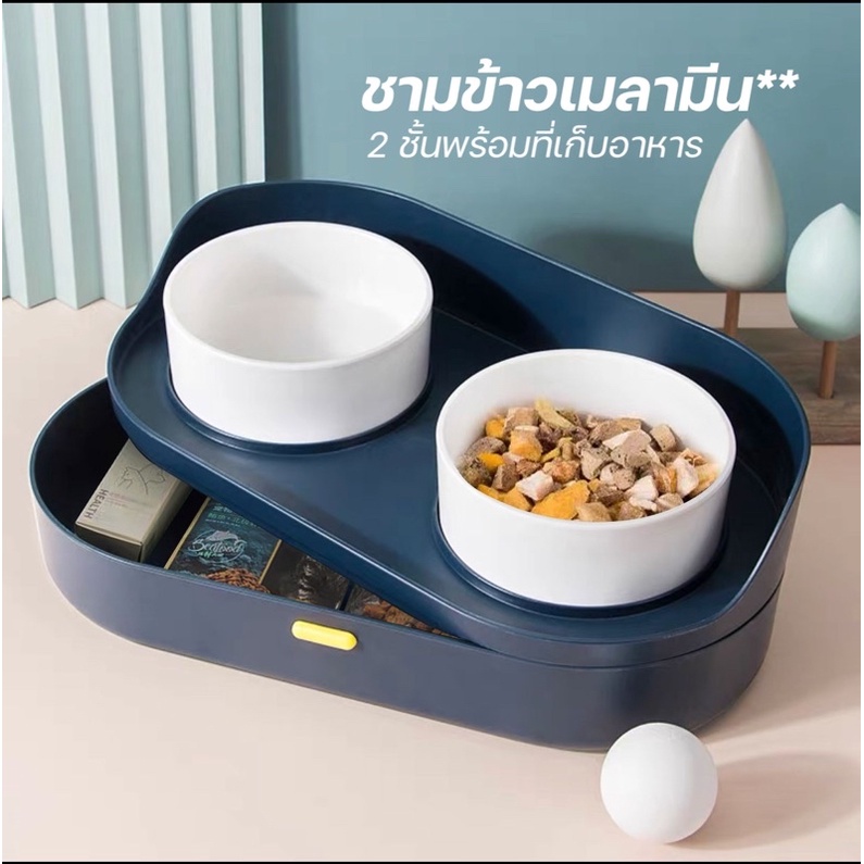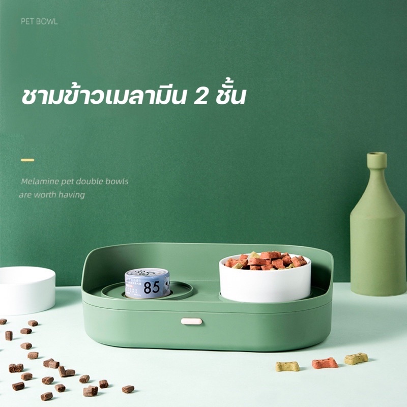 Hoopet ชามข้าวแมวเมลามีน 2 ชั้น พร้อมที่เก็บอาหาร ชามข้าวแมว ชามอาหารแมว ชามน้ำแมว ถ้วยข้าวแมว ถ้วยอาหารสัตว์เลี้ยง