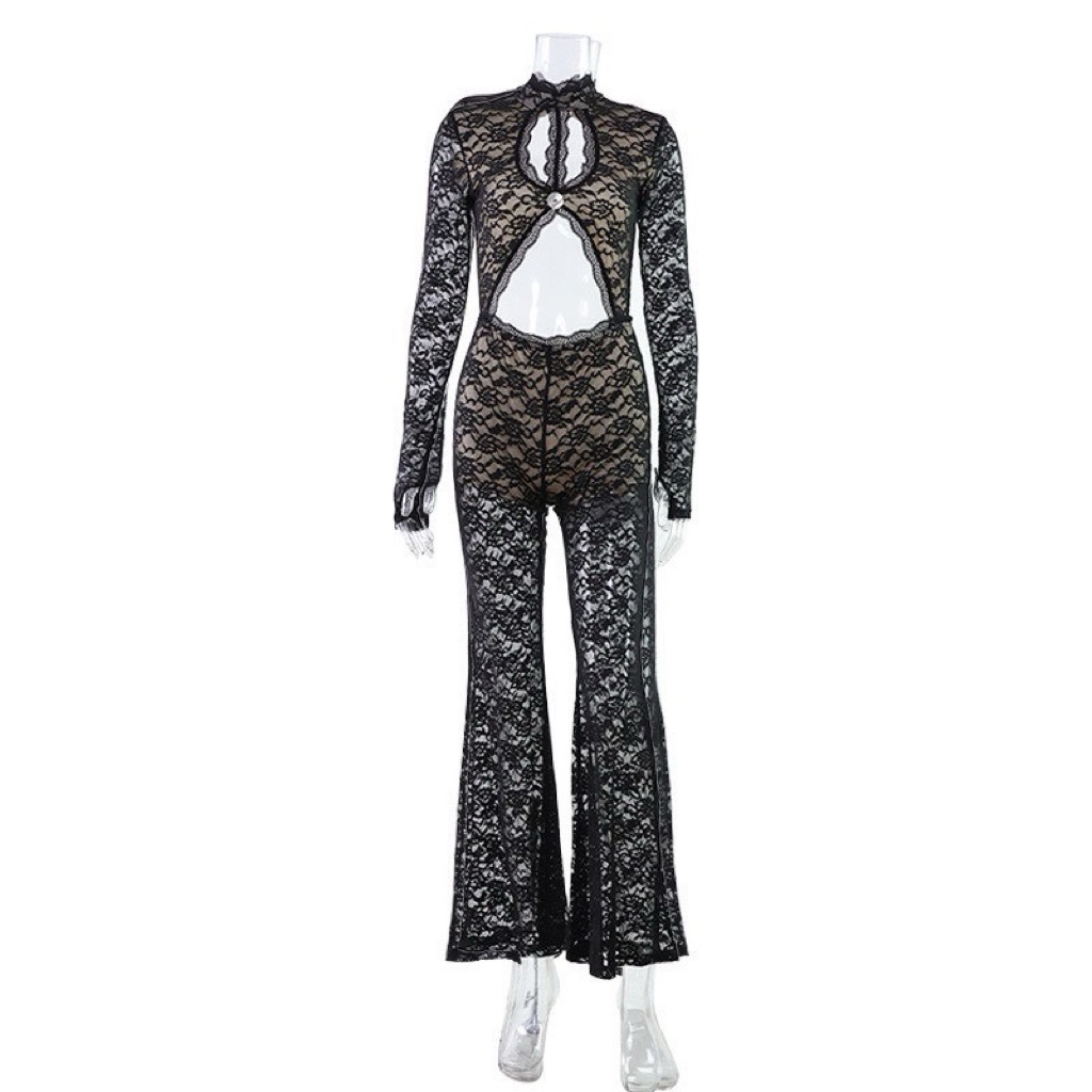 ❤️❤️Jumpsuit จั้มสูทลูกไม้ดำแขนยาวขาม้า ดีไซน์เก๋เว้าเอวสุดแซ่บ ชุด festival 🪩🪩