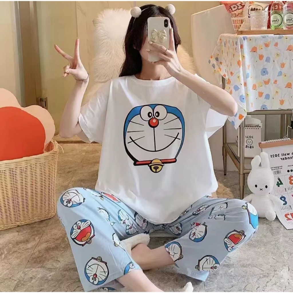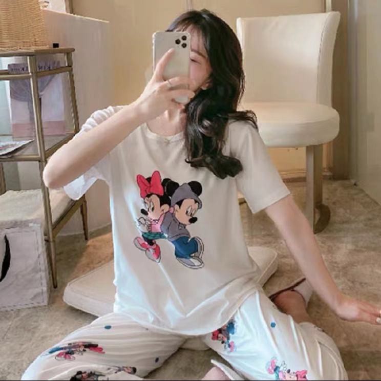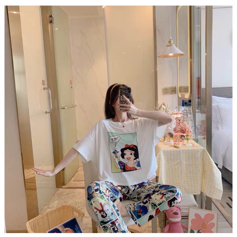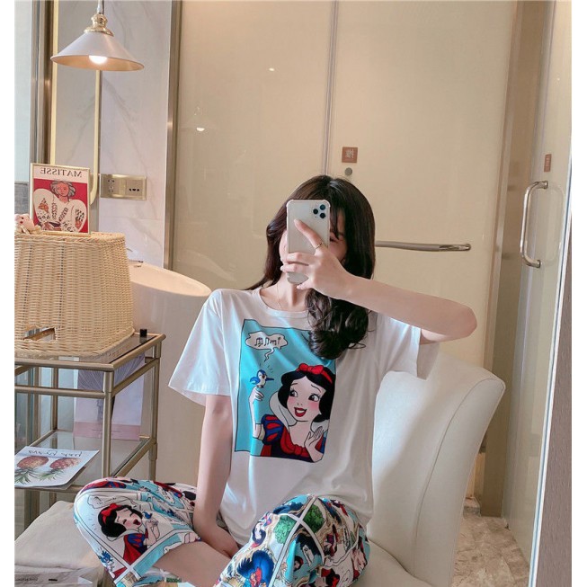 3600 เสิ้อผ้าผู้หญิง ชุดนอนลายการ์ตูนเจ้าหญิงผ้าคอตตอน 2ชิ้น เสื้อ+กางเกงเจ็ดส่วน ราคาถูก สินค้าพร้อมส่ง