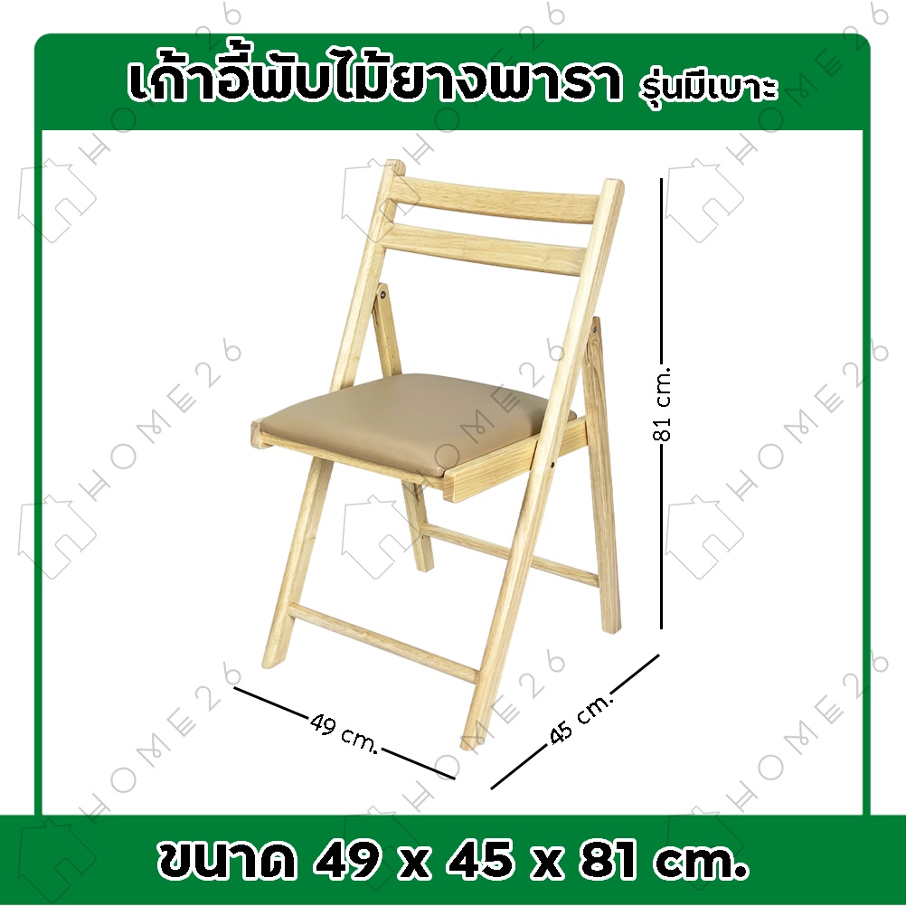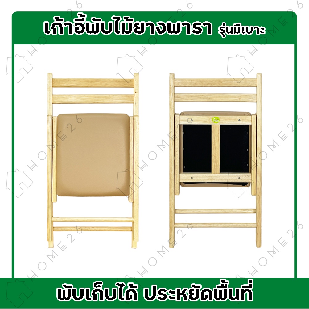 Home26 เก้าอี้หลังพิง ไม้ยางพารา พับเก็บได้ รุ่นเบาะPVC สีครีม