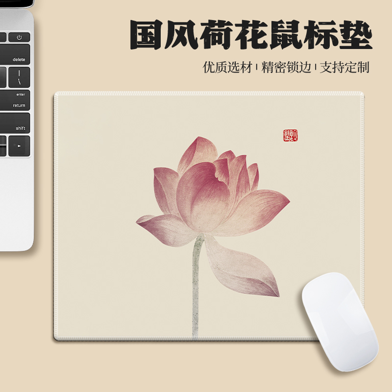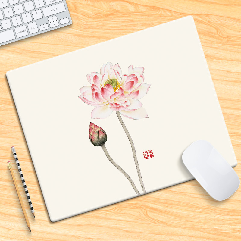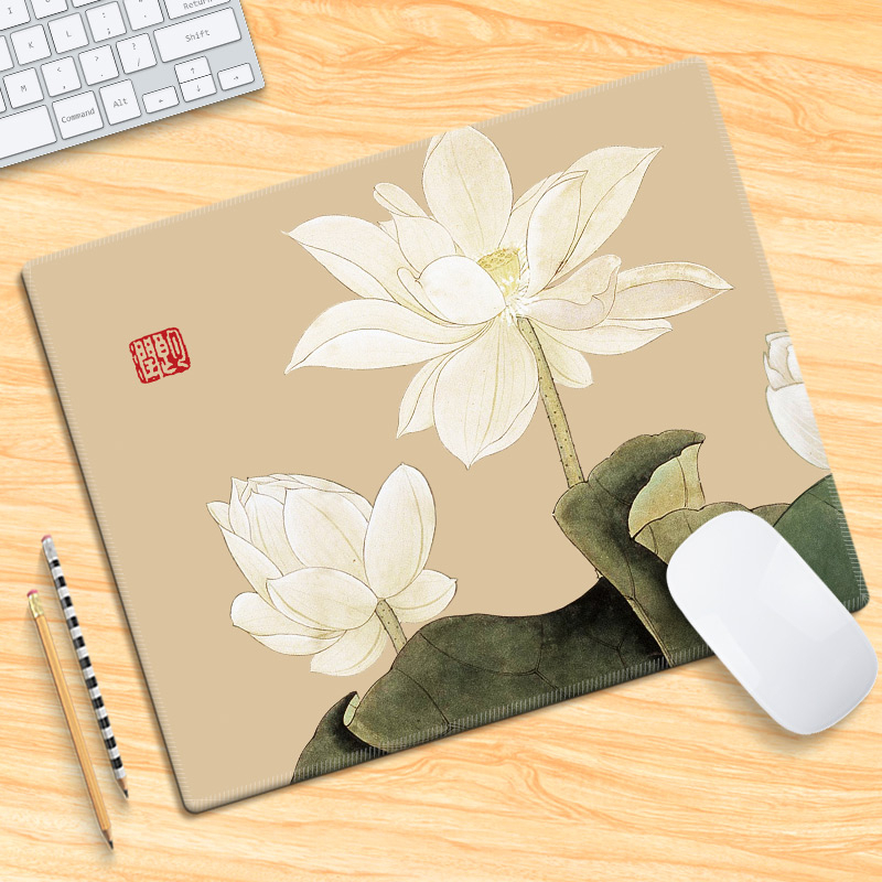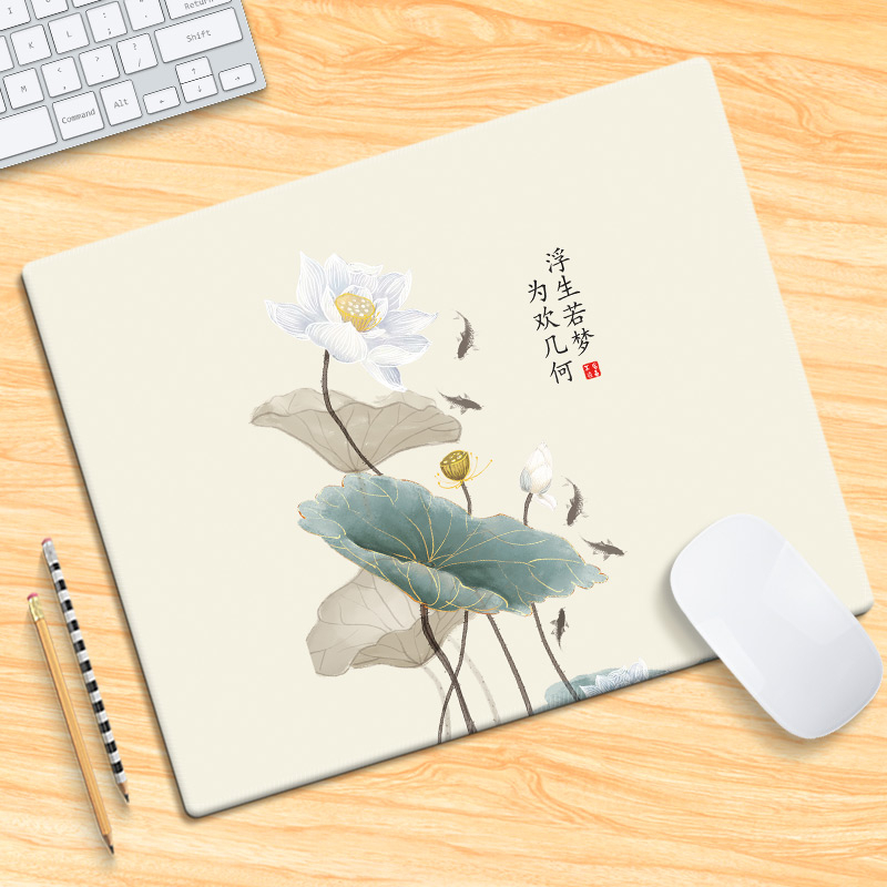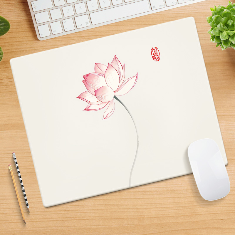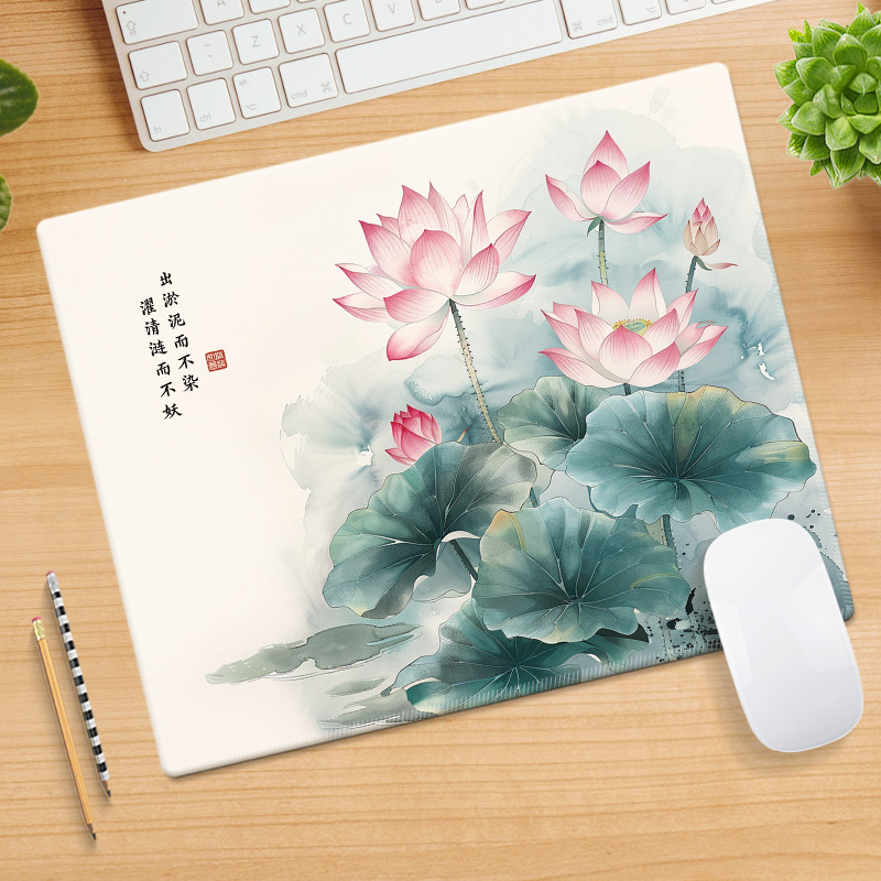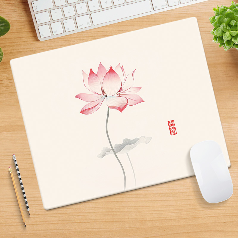 แผ่นรองเมาส์สไตล์จีน China-Chic retro ink lotus fine brushwork แผ่นรองโต๊ะสี่เหลี่ยม