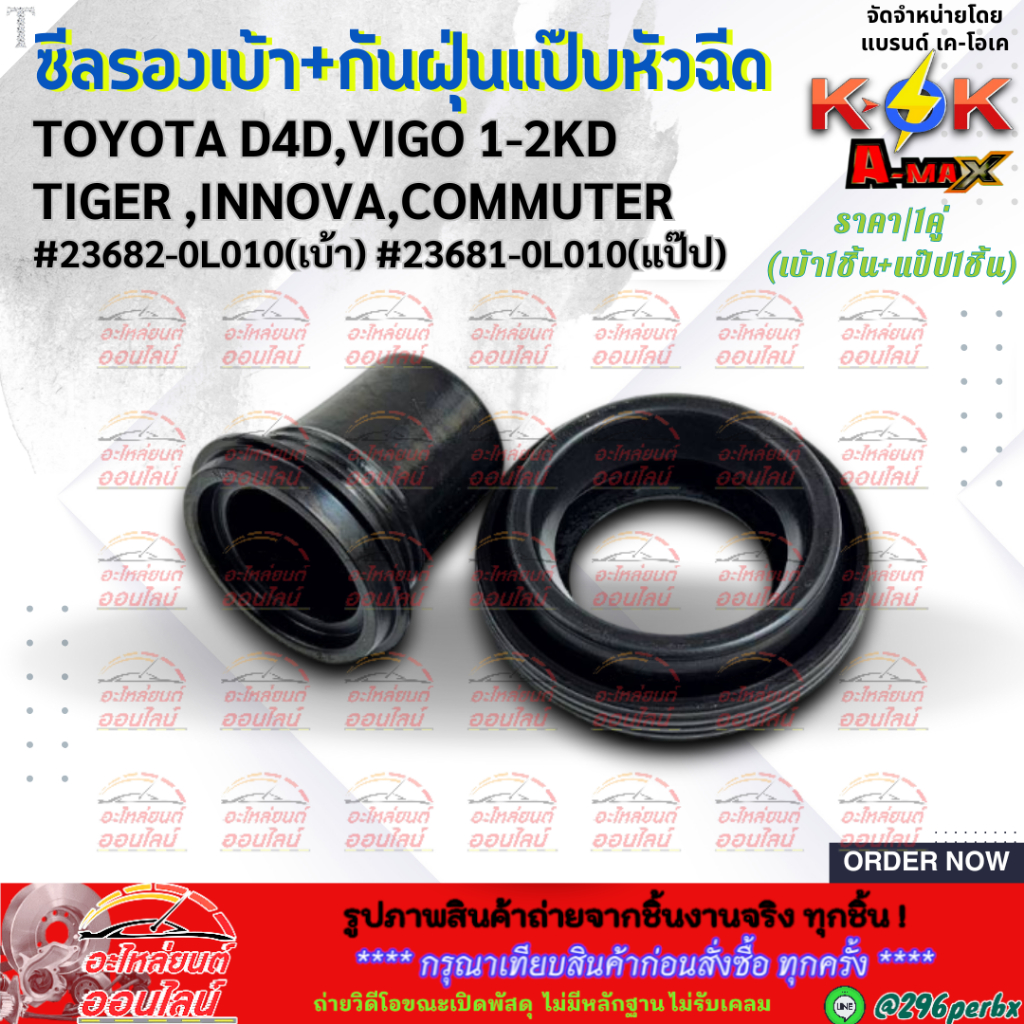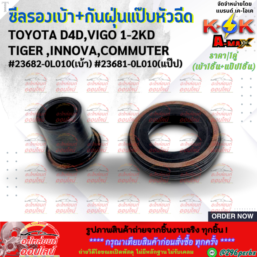 ซีลรองเบ้าหัวฉีด+ซีลกันฝุ่นแป๊บหัวฉีด TOYOTA D4D,VIGO 1-2KD TIGER ,INNOVA,COMMUTER #23682-0L010(เบ้า) #23681-0L010(แป๊ป)