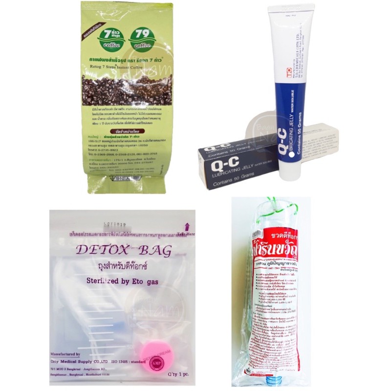 กาแฟดีท็อกซ์ 7 ก้าว 100 กรัม / ขวดดีท็อกซ์ ฟ้ารินขวัญ / ถุงดีท็อกซ์ เวชอาศรม / เจลหล่อลื่น Q-C 50 กรัม / เจลหล่อลื่น XY