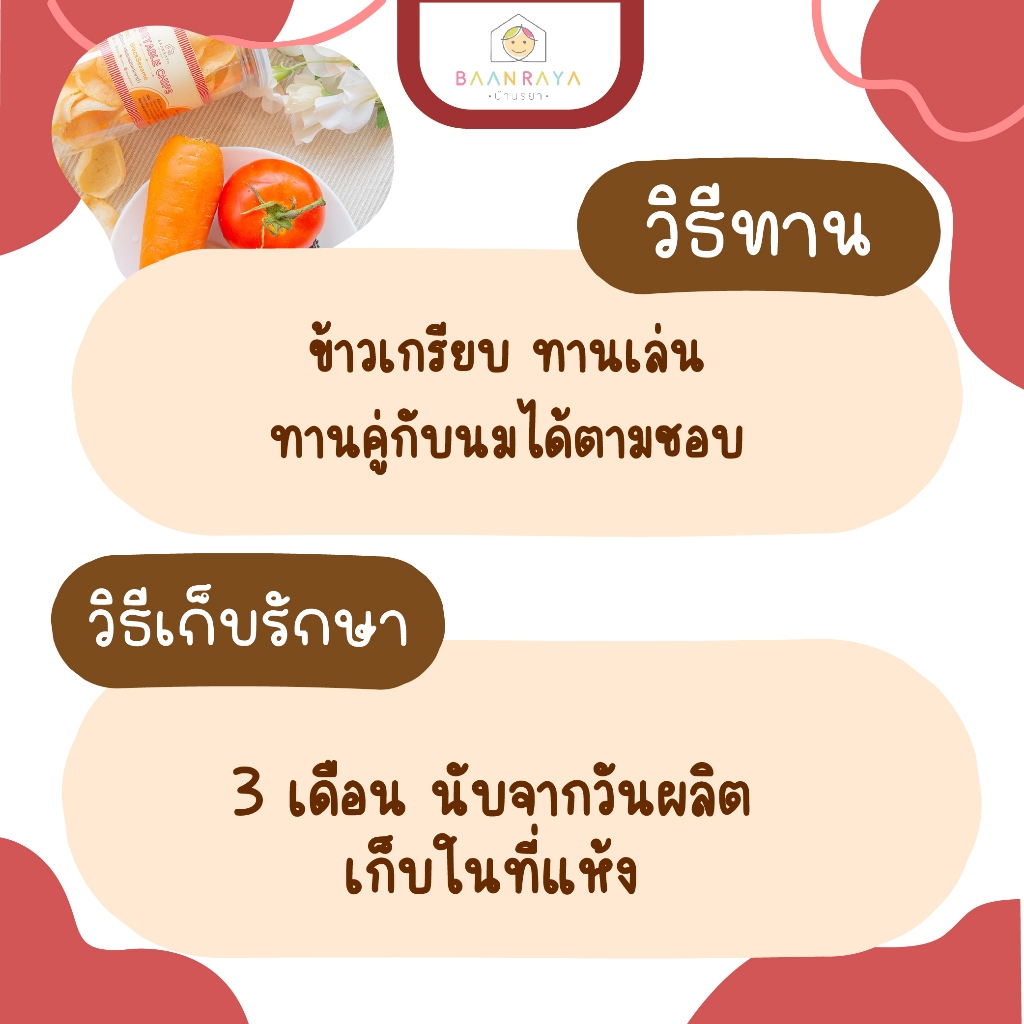 ขนมเด็ก ข้าวเกรียบมะเขือเทศ ผสมแครอทและงาดำ พร้อมทาน บ้านรยา 35g ขนมของเด็ก ขนมสำหรับเด็ก อาหารเด็ก อาหารสำหรับเด็ก บ้าน