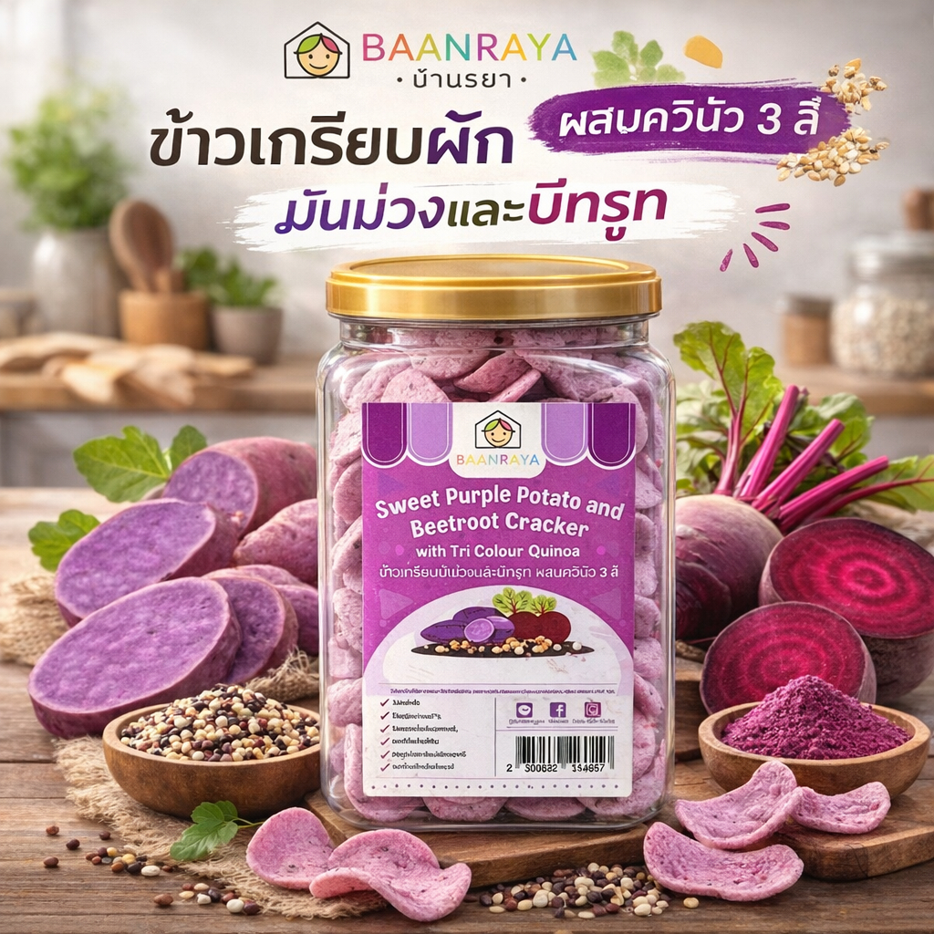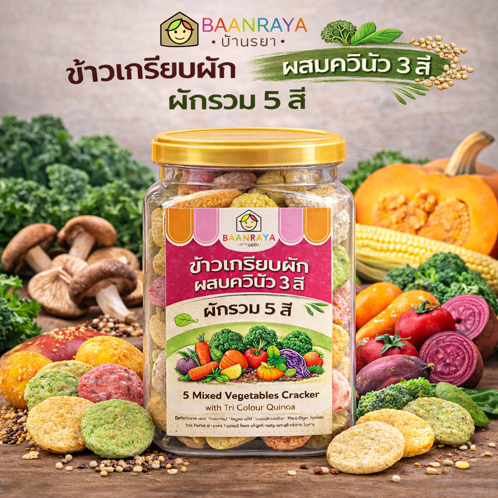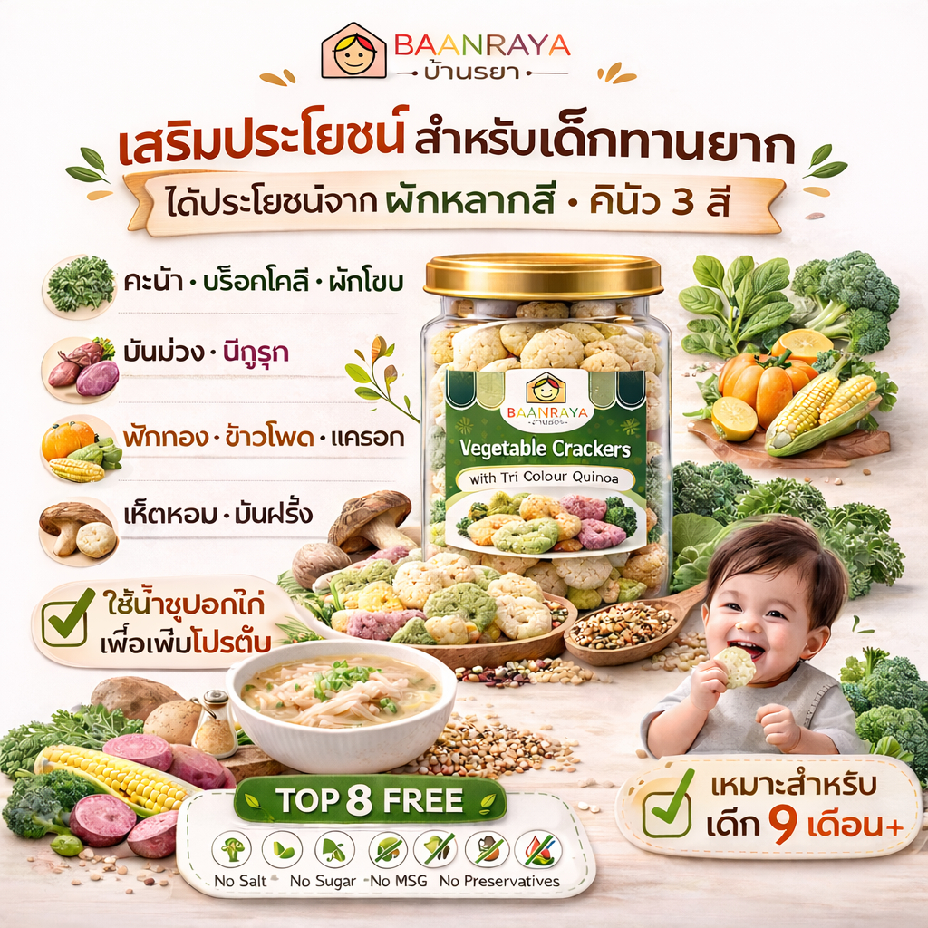 *Promotion* ข้าวเกรียบผัก ผสมควินัว 3 สี บ้านรยา | ขนมเด็กไม่ปรุงรส ไม่ใส่เกลือ น้ำตาล | Top 8 Free | 9m+