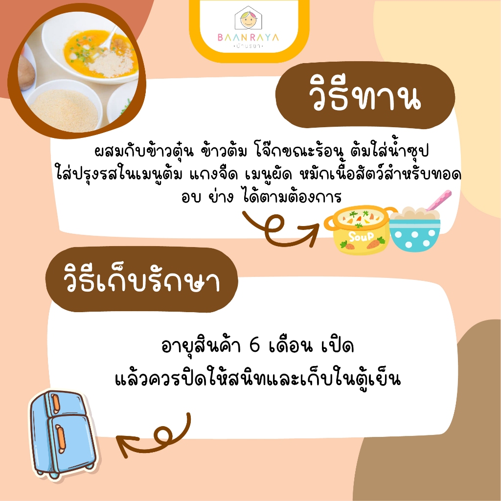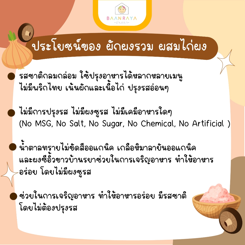ผงปรุงรสสำหรบเด็ก 12m+ ผักผงรวม ผสมไก่ผง (รสดั้งเดิม) สำหรับปรุงรส 120 กรัม (12M+) อาหารเด็ก อาหารสำหรับเด็ก บ้านรยา