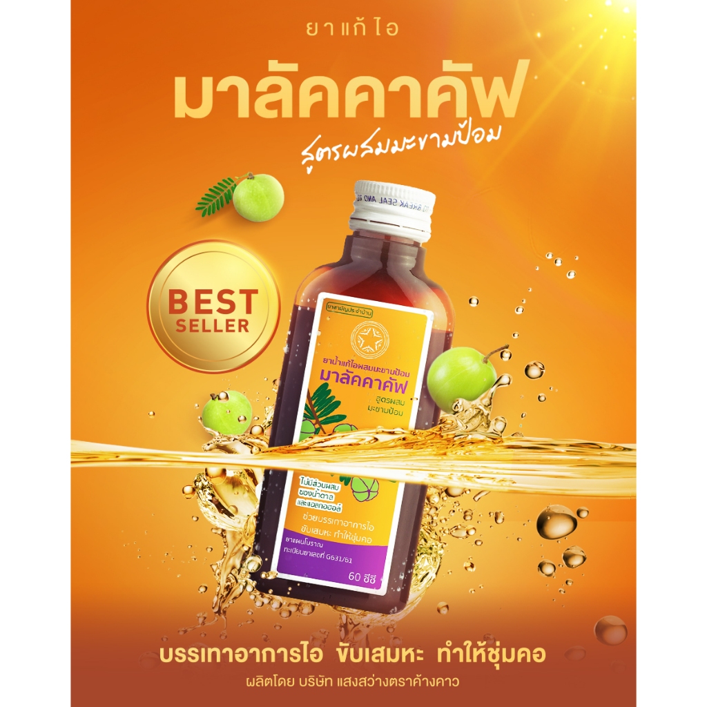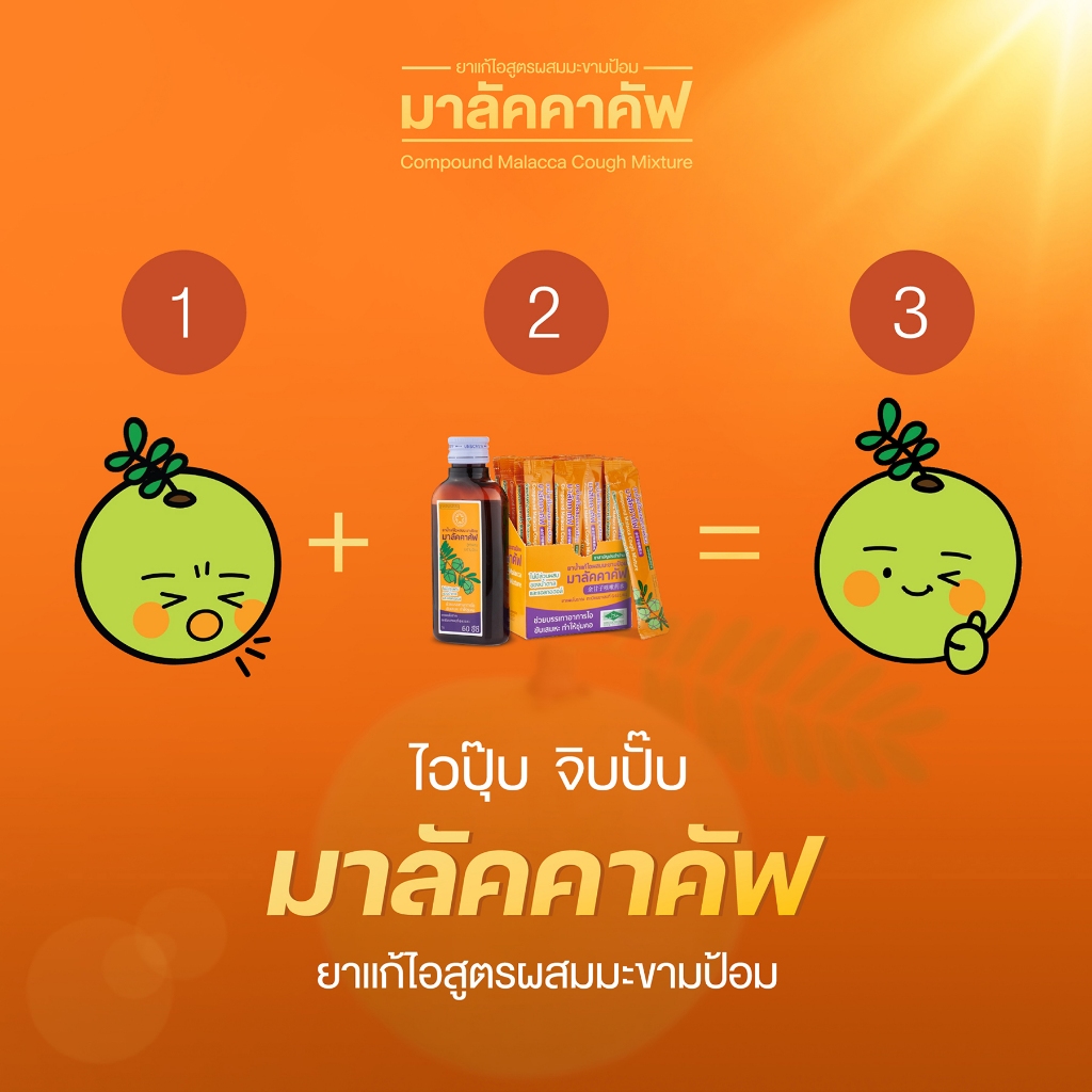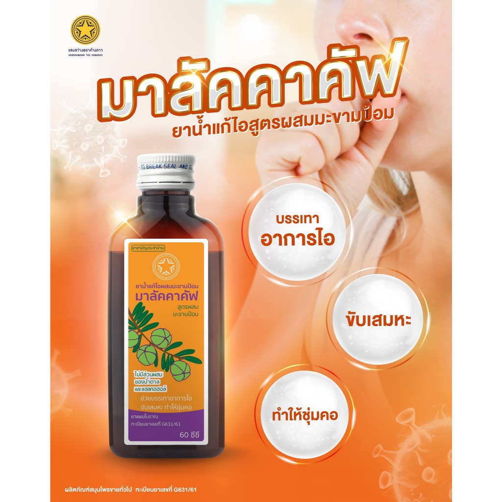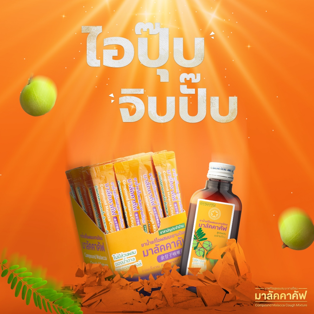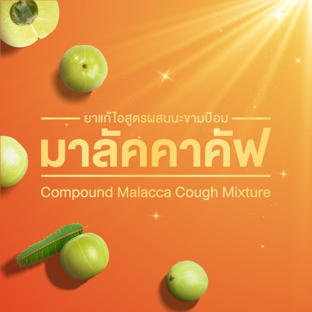 Malacca ยาน้ำแก้ไอ ผสมมะขามป้อม มาลัคคาคัฟ Compound Makhampom Mixture Cough 60cc