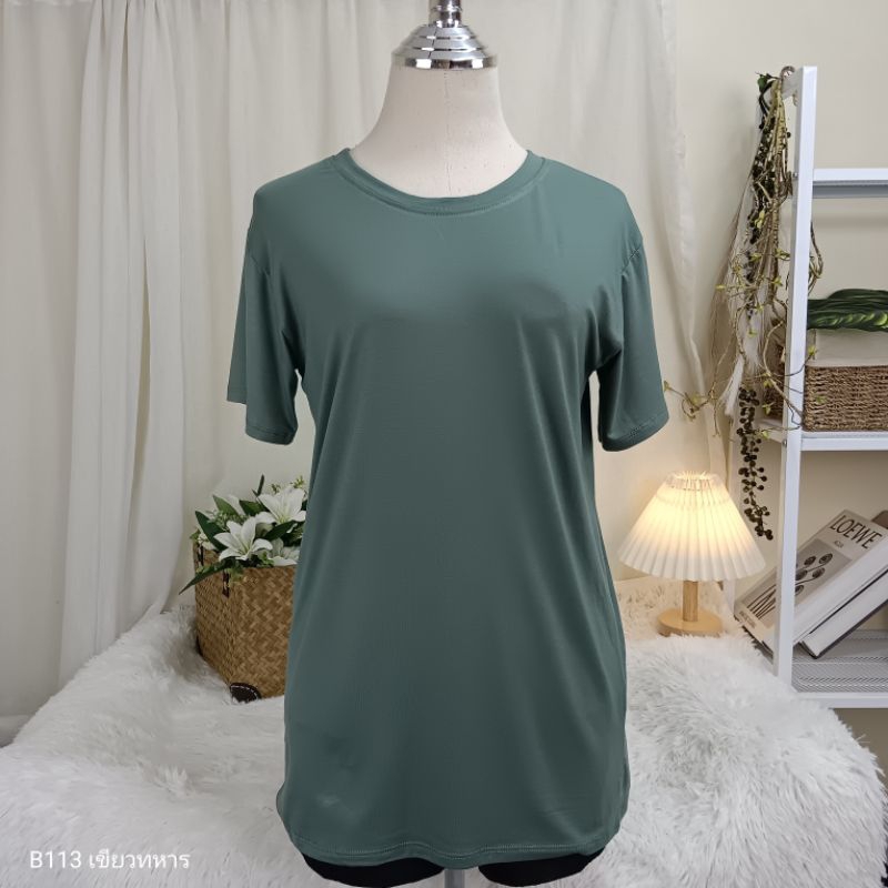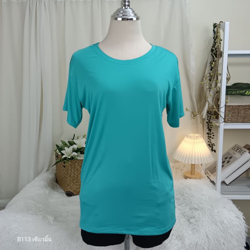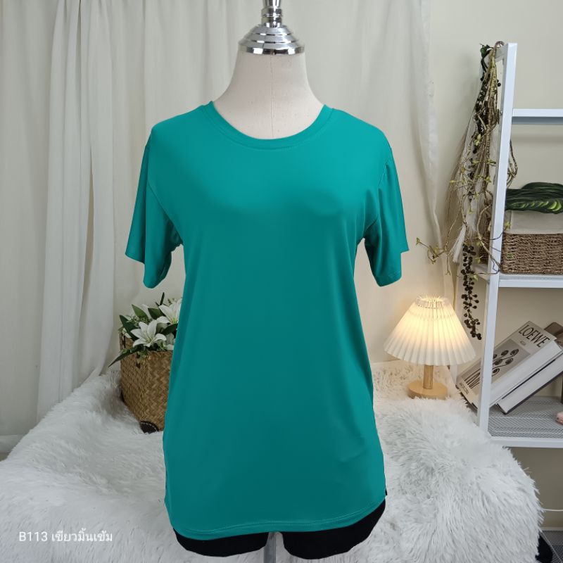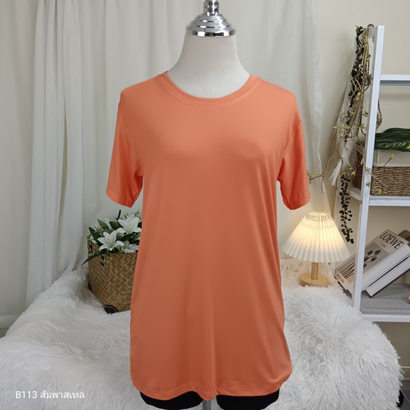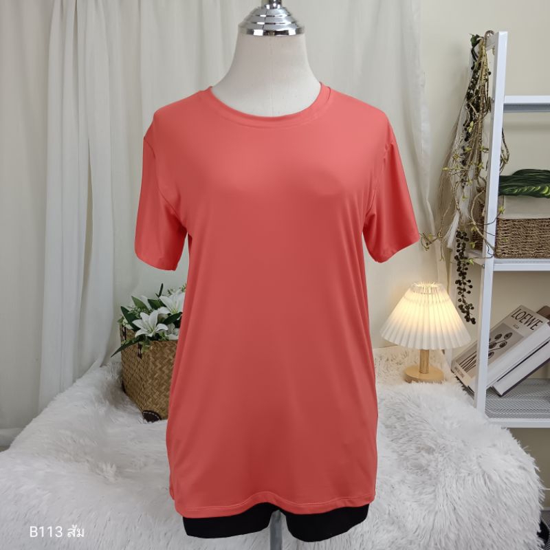 (B113) เสื้อยืดคอกลม ผ้าเรย่อน อก 36-44 นิ้ว สาวอวบใส่ได้ สีพื้น เนืัอผ้านุ่มเด้ง ยืดหยุ่นดี ใส่สบาย ผู้หญิง
