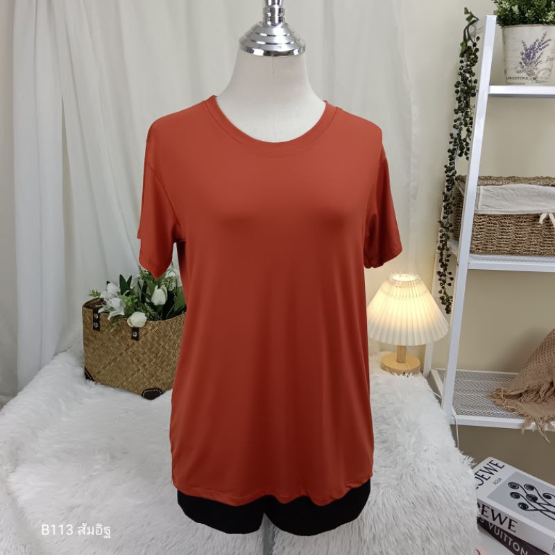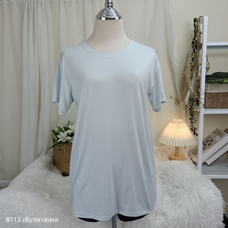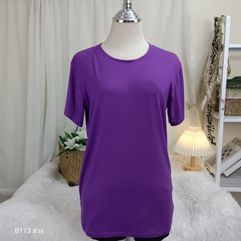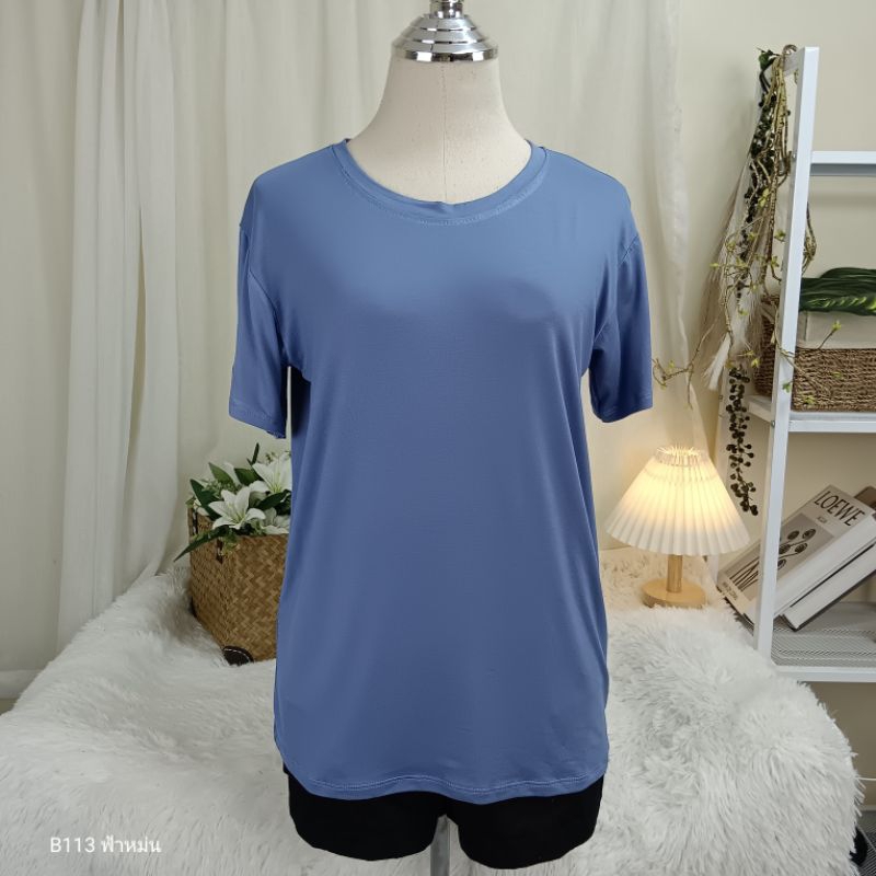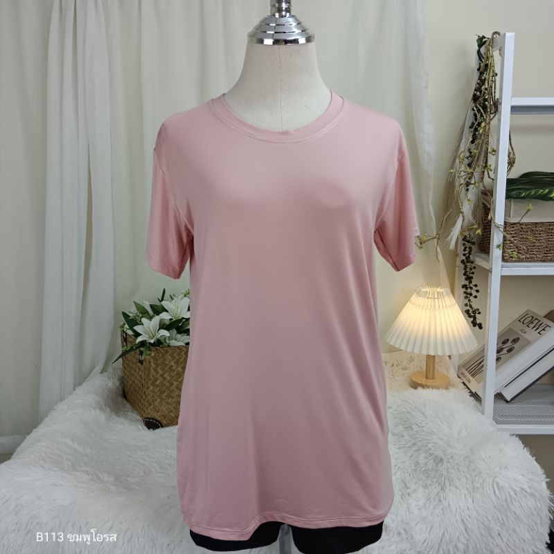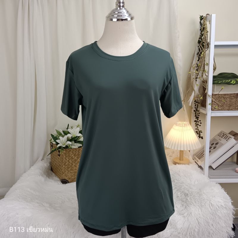 (B113) เสื้อยืดคอกลม ผ้าเรย่อน อก 36-44 นิ้ว สาวอวบใส่ได้ สีพื้น เนืัอผ้านุ่มเด้ง ยืดหยุ่นดี ใส่สบาย ผู้หญิง