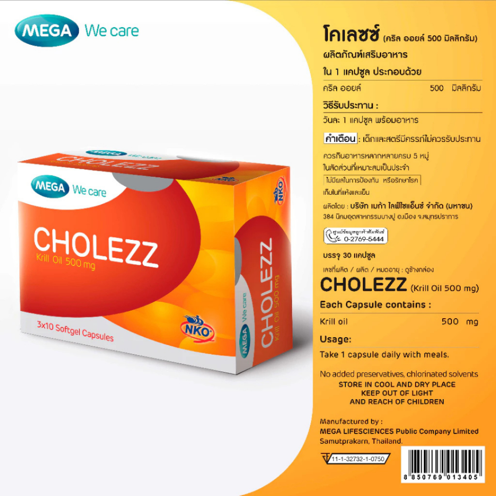 Mega We Care Cholezz(โคเลส คริลล์ออย 30 แคปซูล #1920