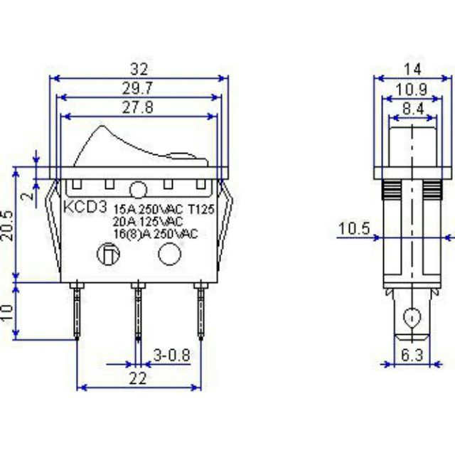 สวิตซ์ KCD3 3 ขา 15A 250V Switch