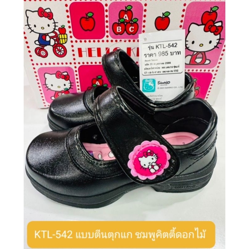 New-รองเท้านักเรียนหญิง Hello Kitty งานสิขสิทธ์แท้ Sanrio《รุ่นแบบตีนตุ๊กแก มีSize25-30》พร้อมส่ง.