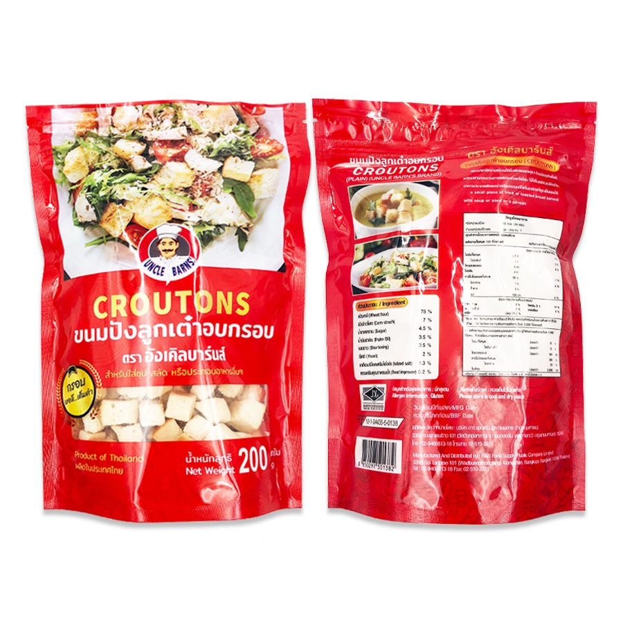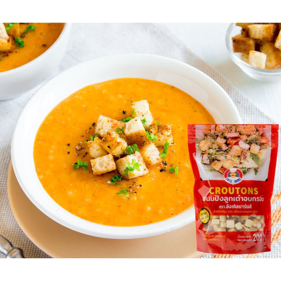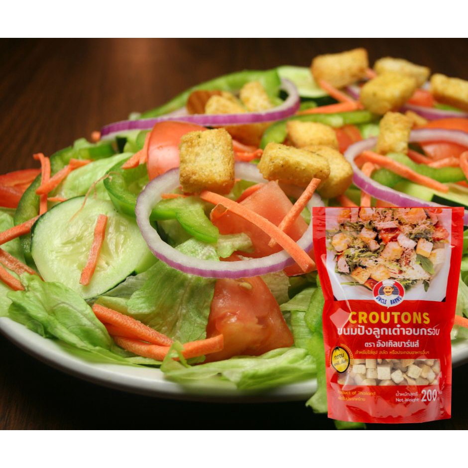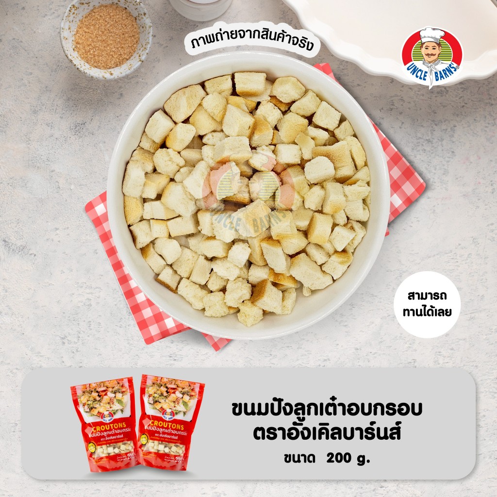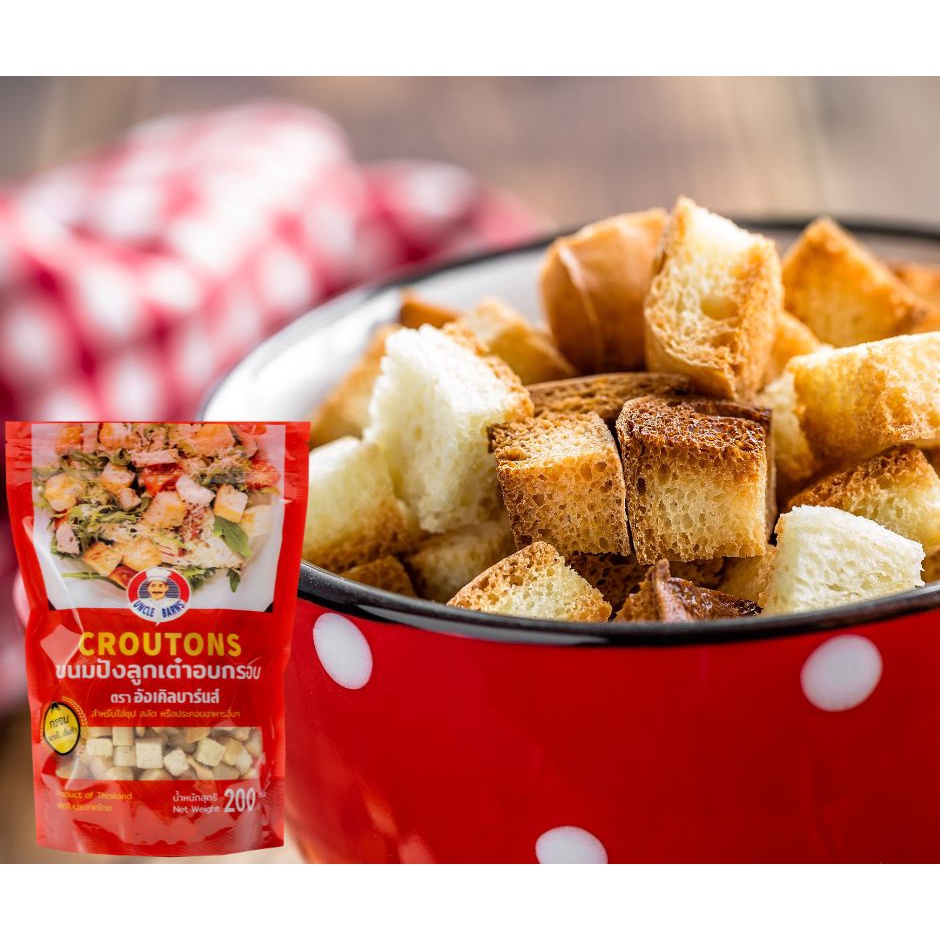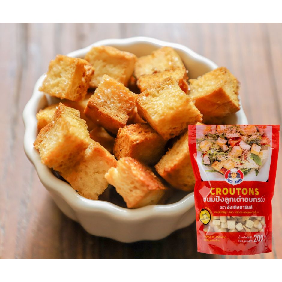 Unclebarns ขนมปัง ลูกเต๋า อบกรอบ croutons ขนาด 200 กรัม ขนมปังอบกรอบ ขนมปังลูกเต๋า ใส่สลัด ซุป