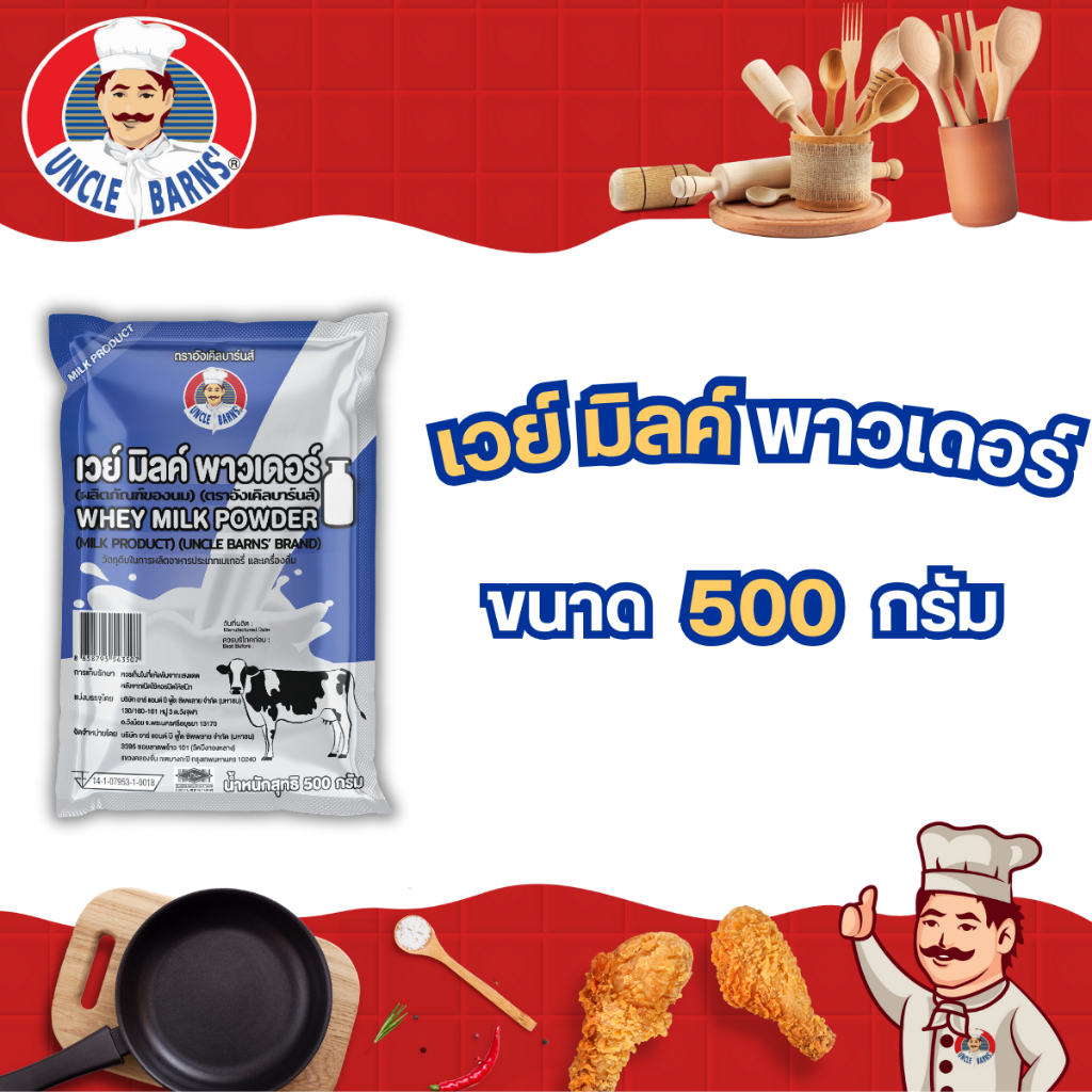 Unclebarns เวย์ มิลค์ พาวเดอร์ ทำ เบเกอรี่ ขนม (Whey Milk Powder) ตรา อังเคิลบาร์นส์ ขนาด 500 กรัม
