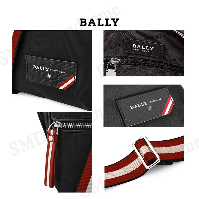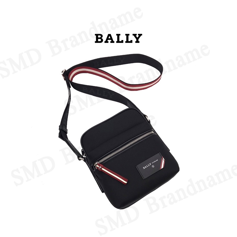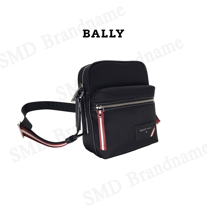 BALLY กระเป๋าสะพายข้างสำหรับคุณผู้ชาย รุ่น Men Faara Nylon Crossbody Bag Black Red Code:FAARA 00 6228740