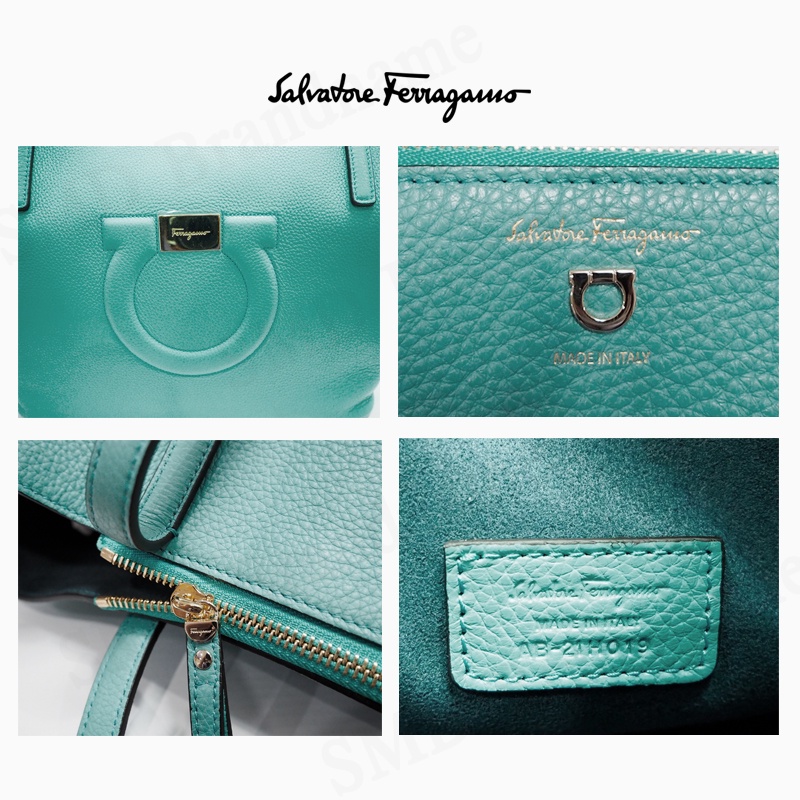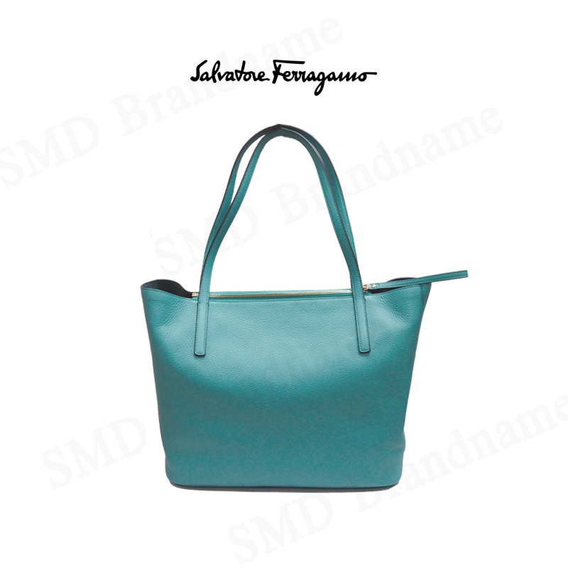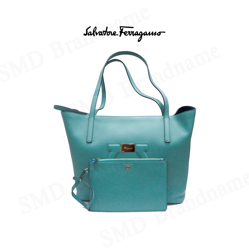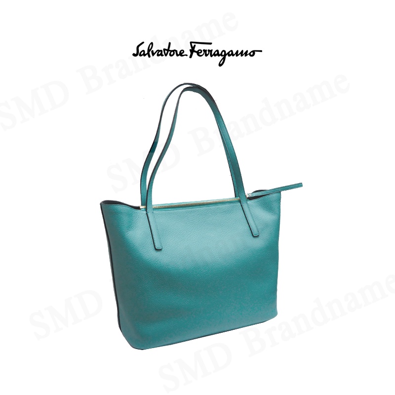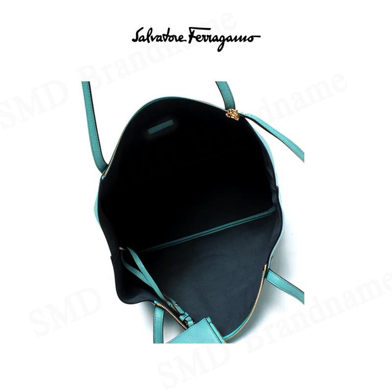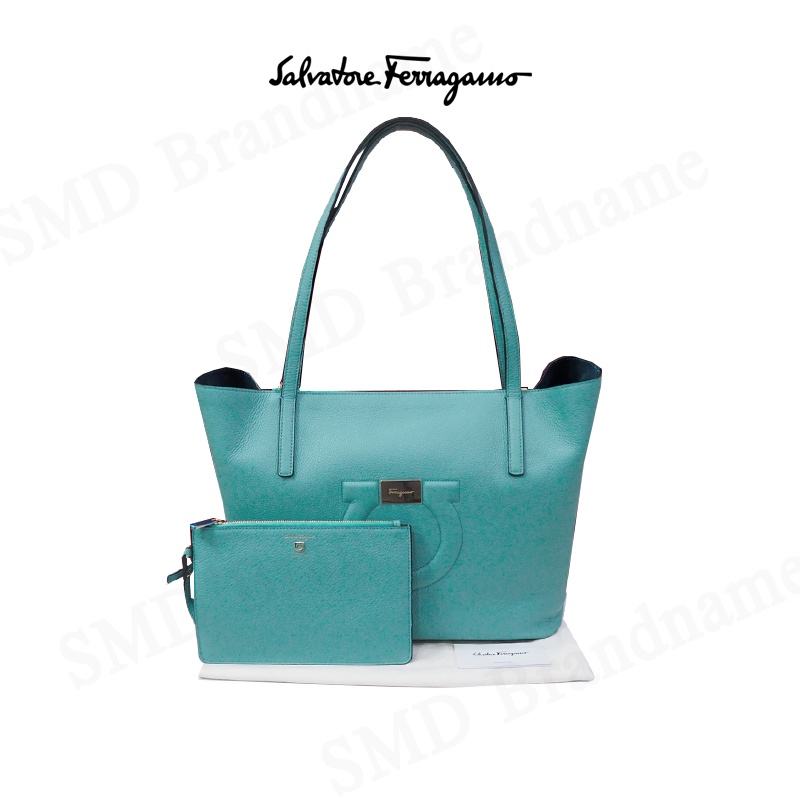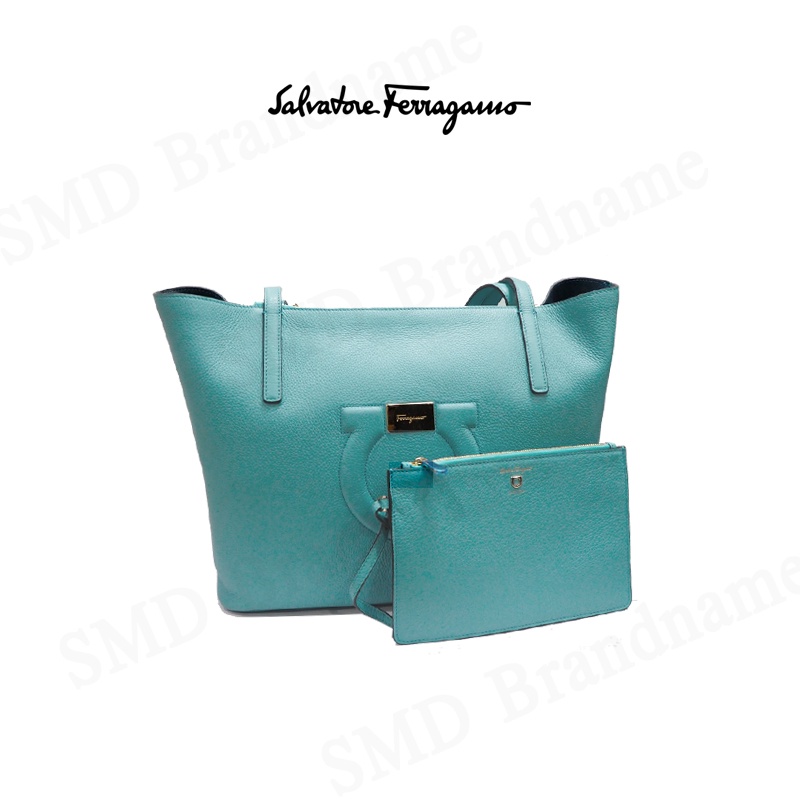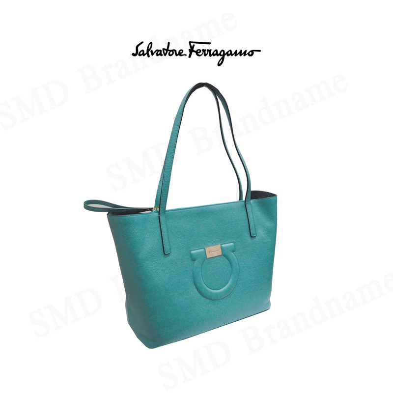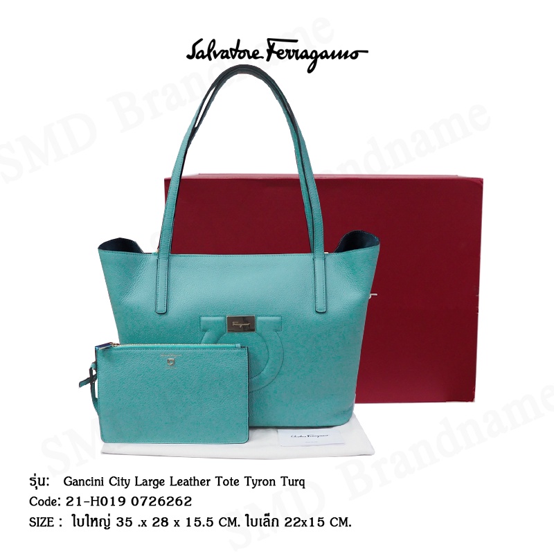 Salvatore Feragamo กระเป๋าหนังผู้หญิง รุ่น Gancini City Large Leather Tote Tyron Turq Code: 21-H019 0726262