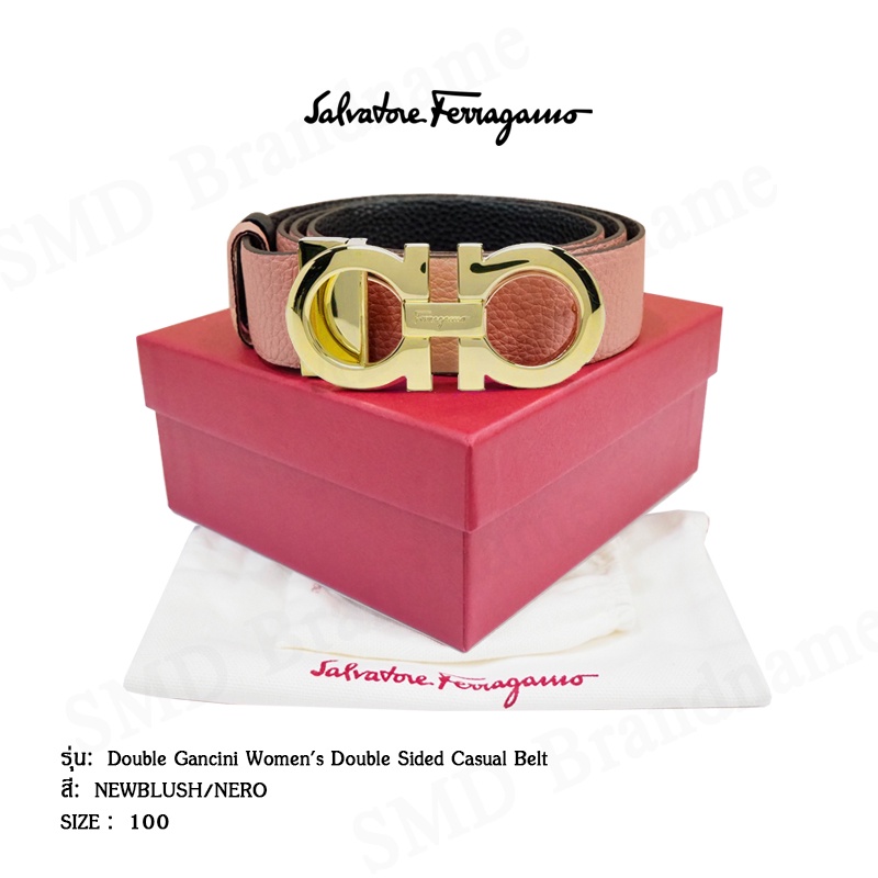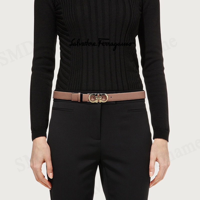 Salvatore Ferragamo เข็มขัดผู้หญิง รุ่น Double Gancini Women's Double Sided Casual Belt Code: 23A564 0709753