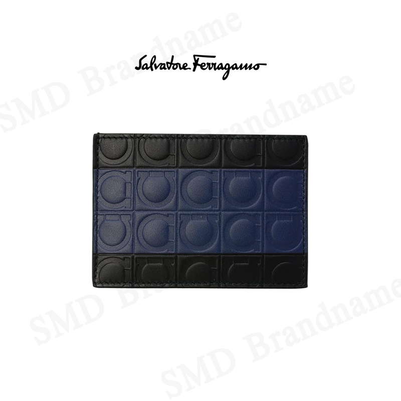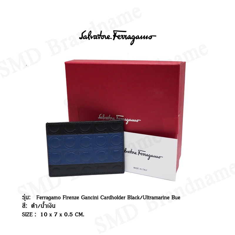 SALVATORE FERRAGAMO กระเป๋าใส่การ์ด รุ่น Ferragamo Firenze Gancini Cardholder Black/Ultramarine Bue Code: 66A471 713712