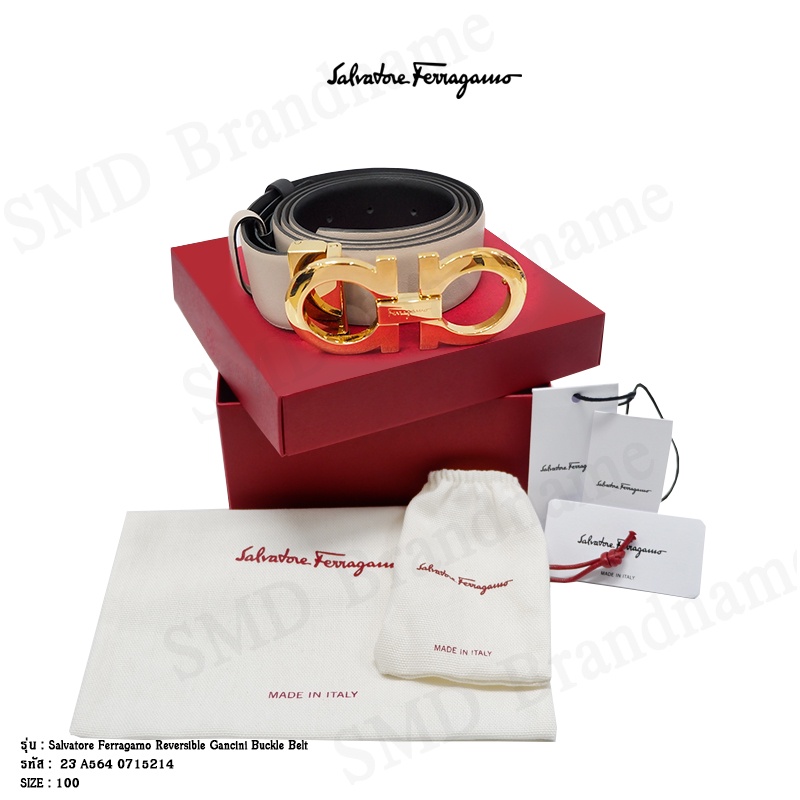 Salvatore Ferragamo เข็มขัดผู้หญิง รุ่น Reversible Gancini Buckle Belt Code: 23A564 0715214