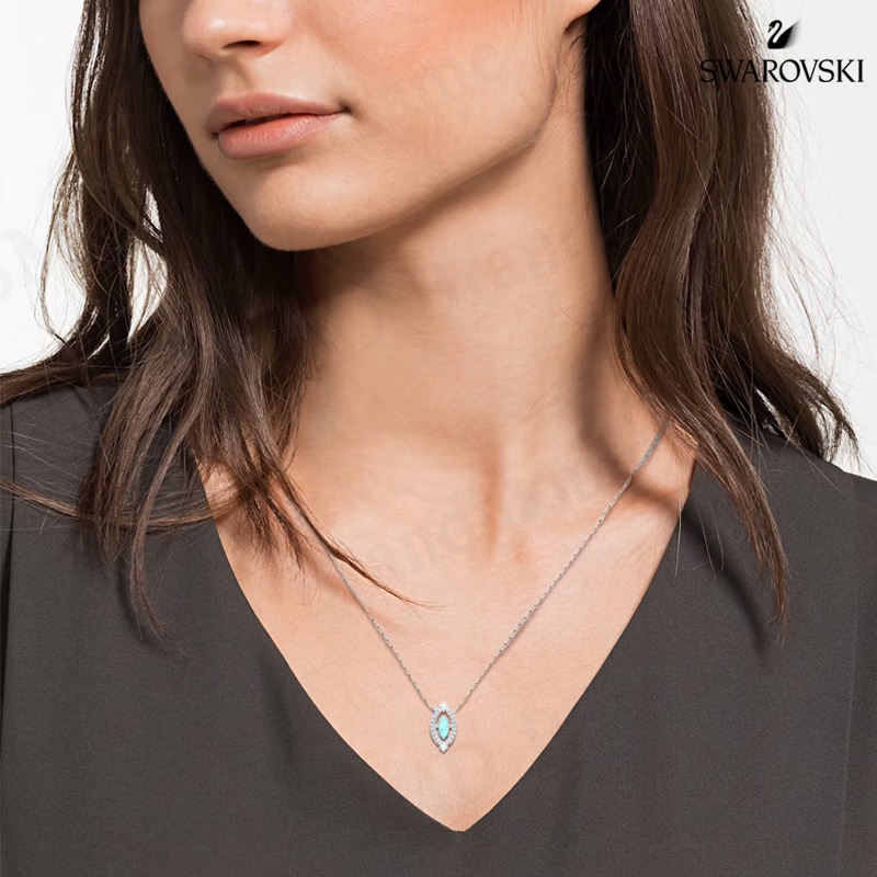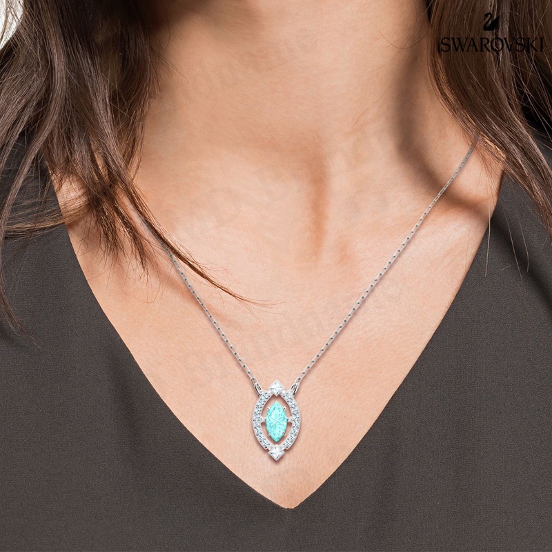 Swarovski สร้อยคอ รุ่น Sparkling Dance necklace Green, Rhodium plated Code: 5485721