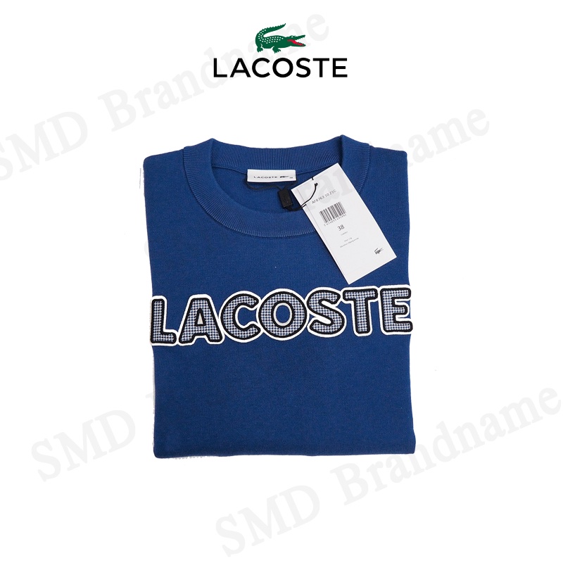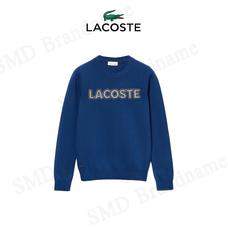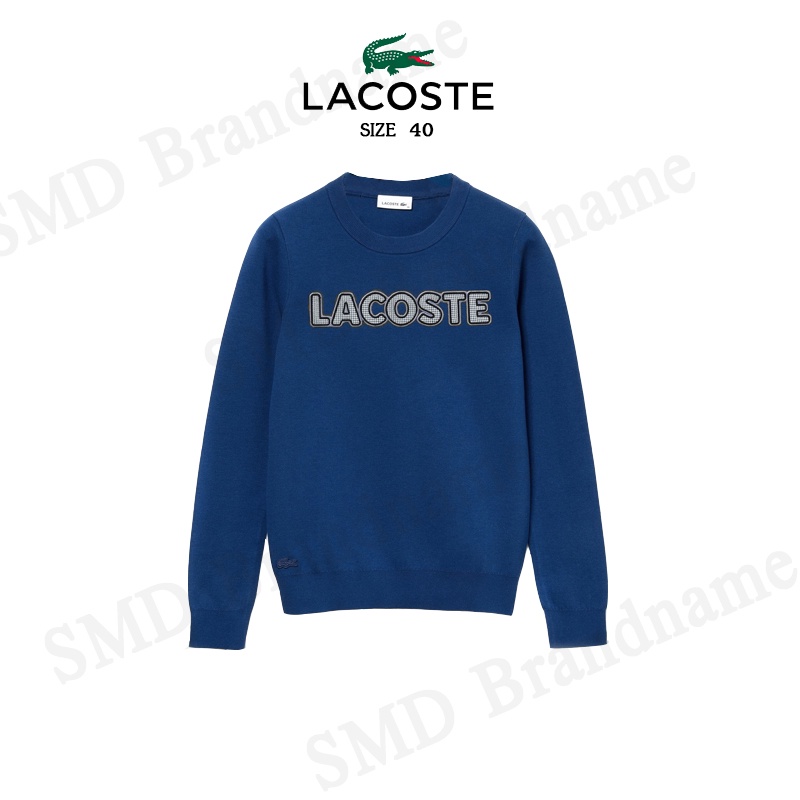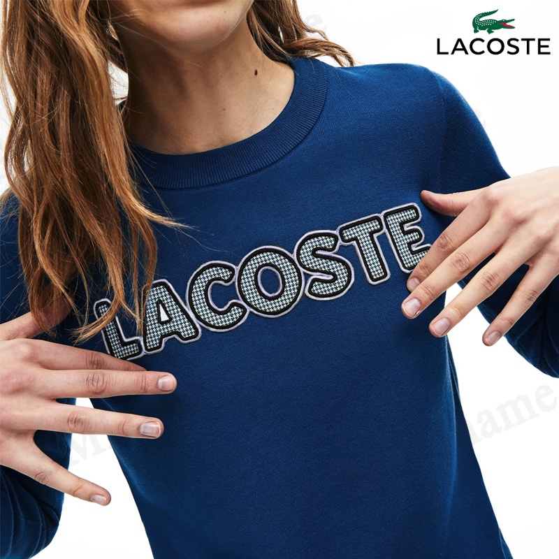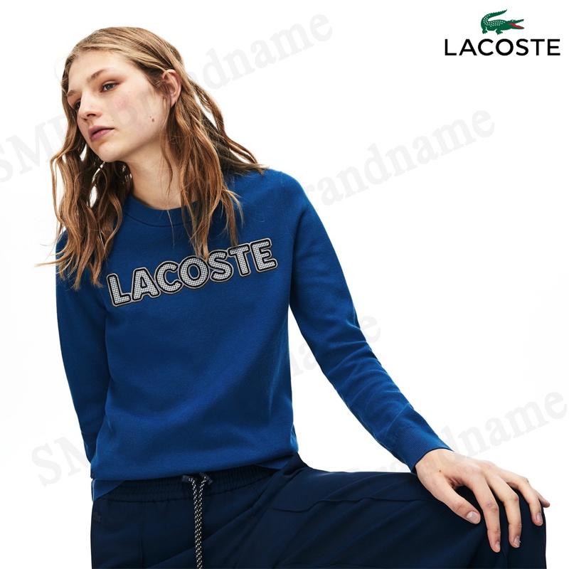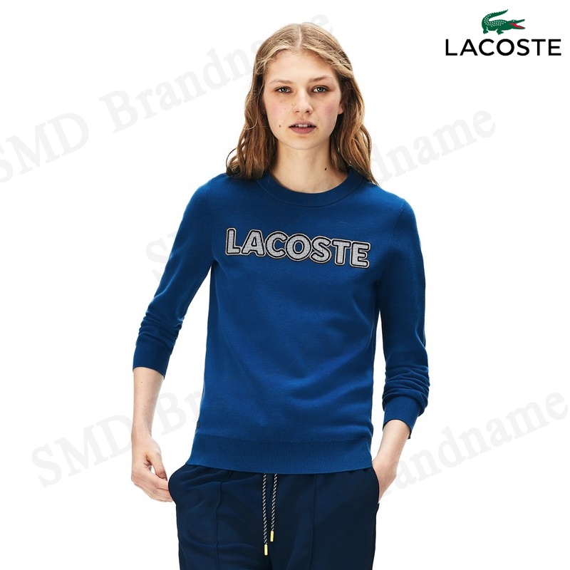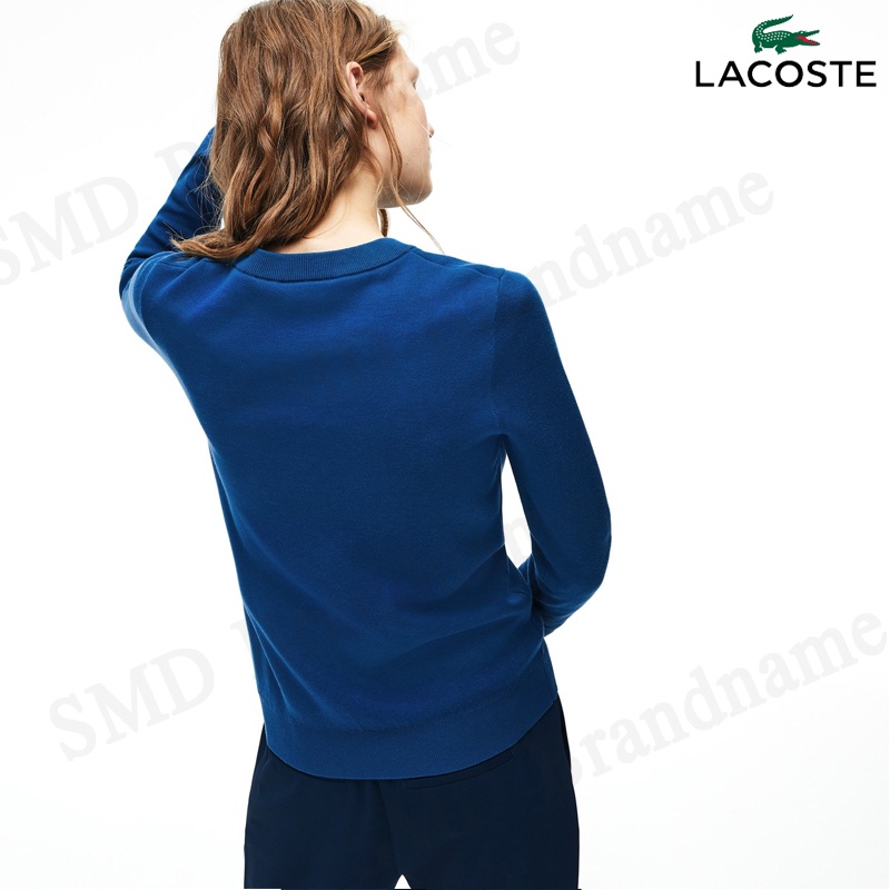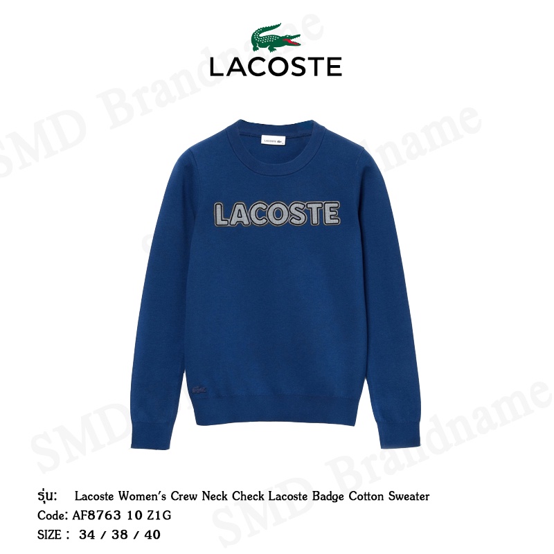 Lacoste เสื้อสเวตเตอร์แขนยาวหญิง รุ่น Lacoste Women's Crew Neck Check Lacoste Badge Cotton Sweater Code: AF8763 10 Z1G