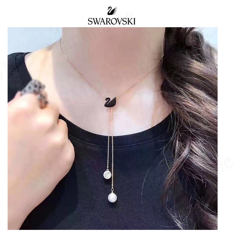 Swarovski สร้อยคอรูปตัว Y จี้หงส์ รุ่น NECKLACE DOUBLE Y JET/ROS Code: 5351806