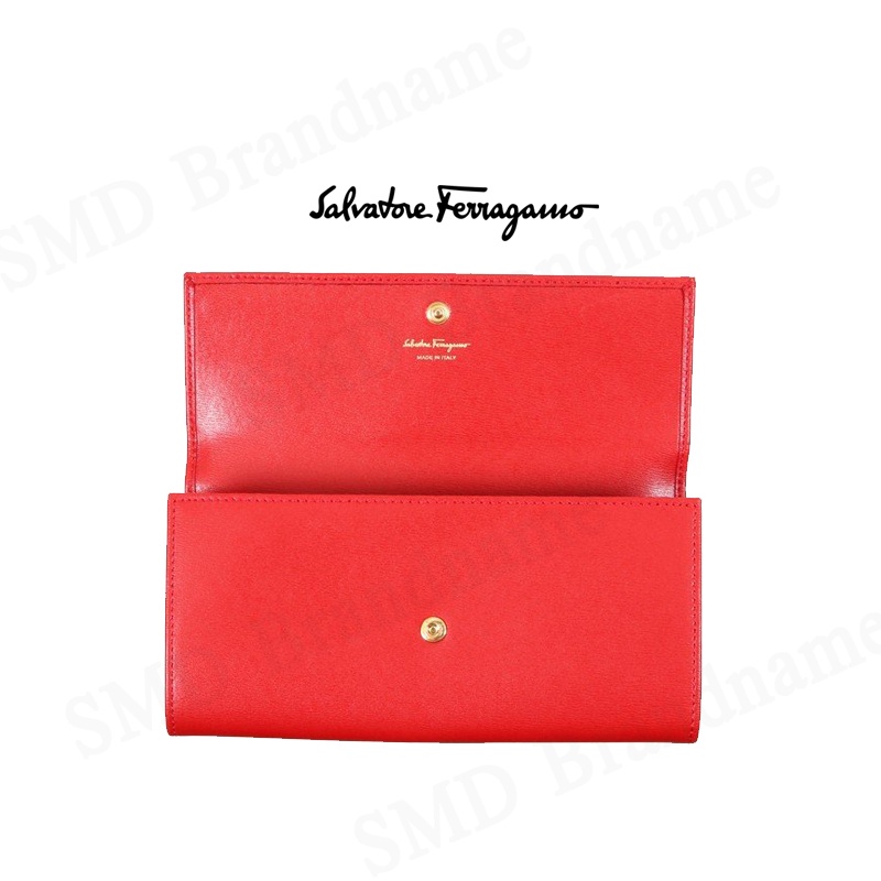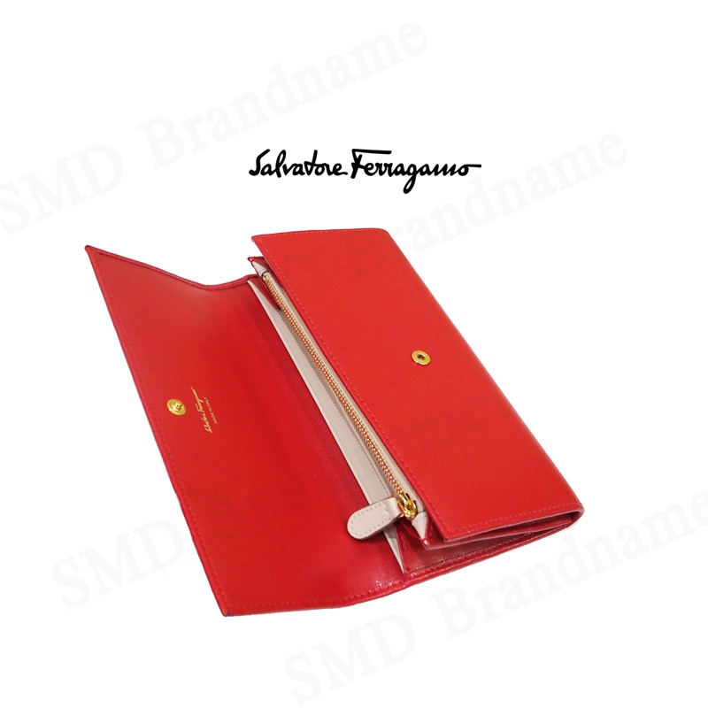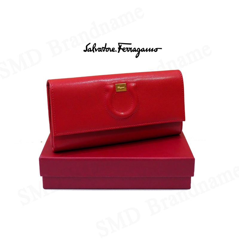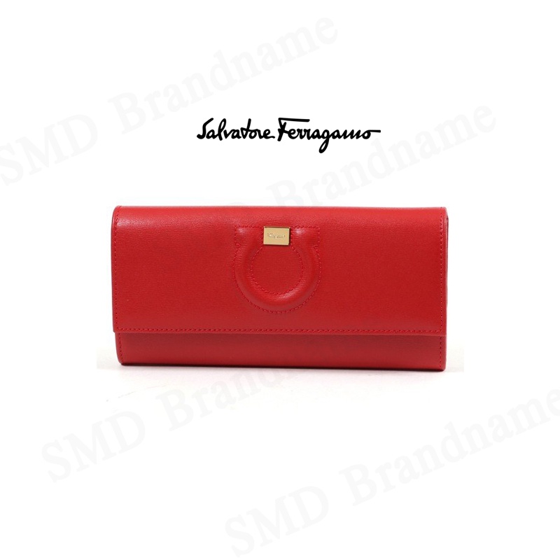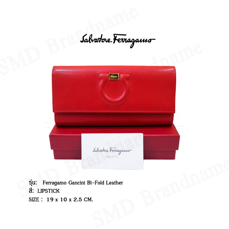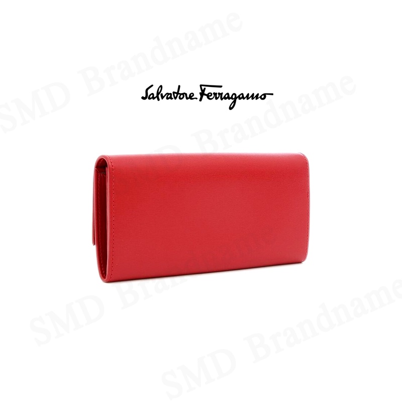 Salvatore Ferragamo กระเป๋าสตางค์ใบยาวแบบแต็ป รุ่น Ferragamo Gancini Bi-Fold Leather Code: 0684422