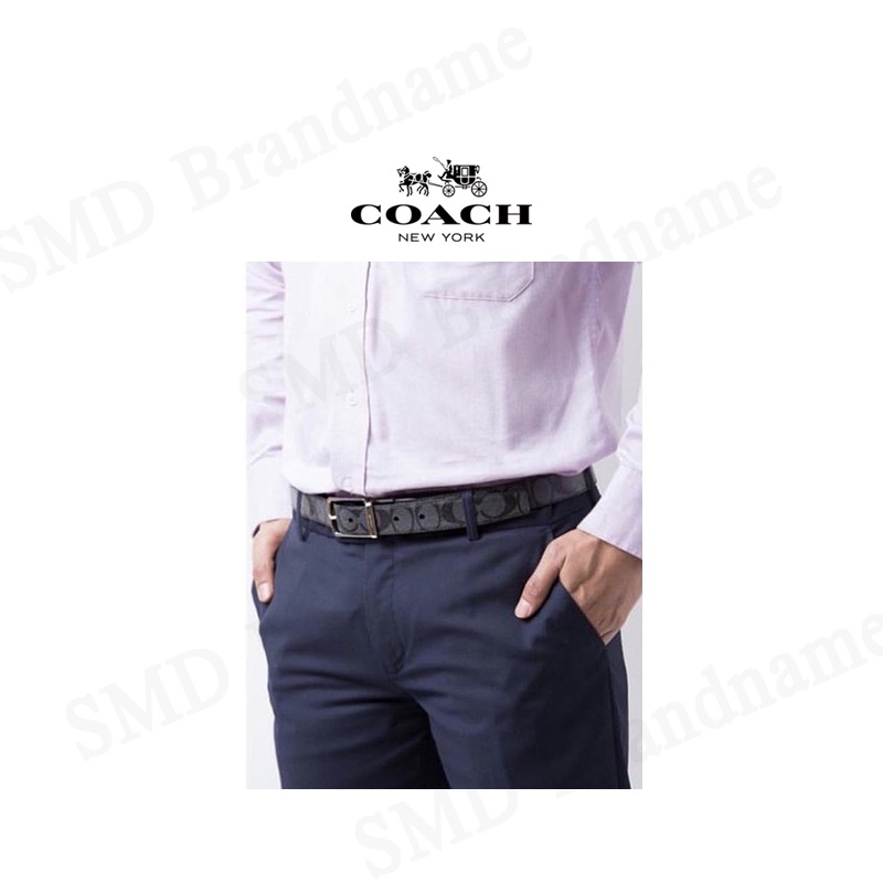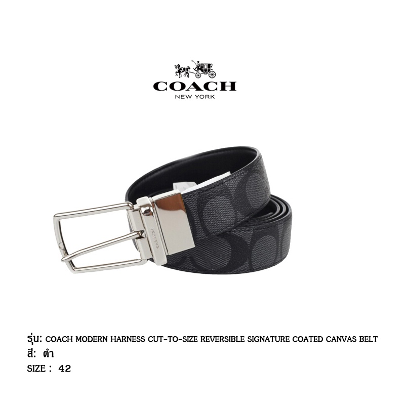 Coach เข็มขัดผู้ชาย/หญิง รุ่น COACH MODERN HARNESS CUT-TO-SIZE REVERSIBLE SIGNATURE COATED CANVAS BELT Code: 64087