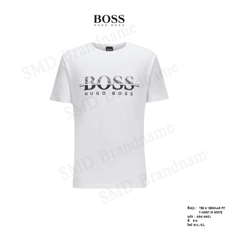 HUGO BOSS เสื้อยืดคอกลม รุ่น TEE 6' REGULAR FIT T-SHIRT IN WHITE Code: 50419921