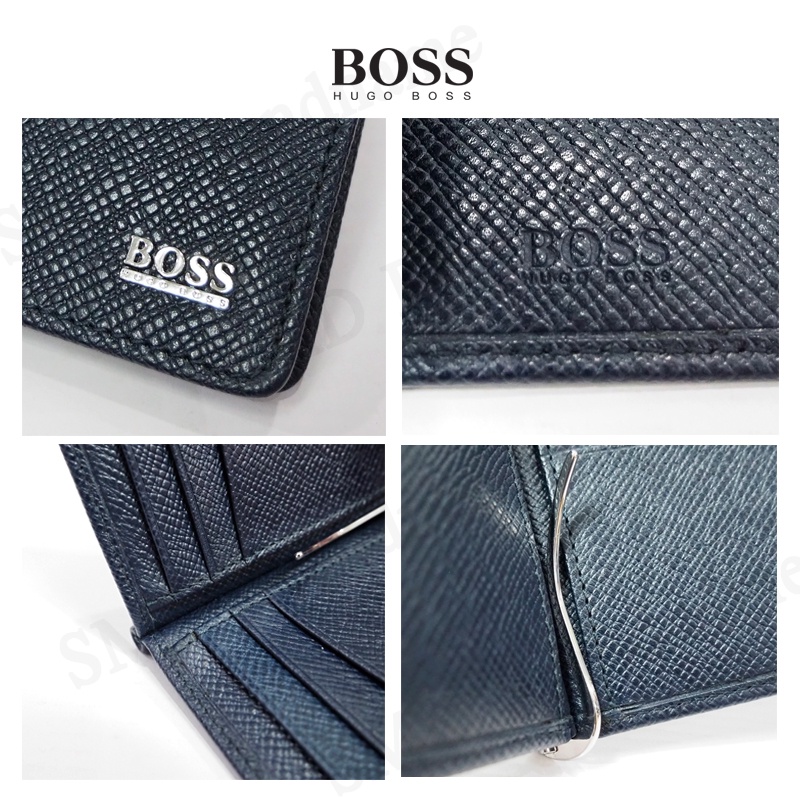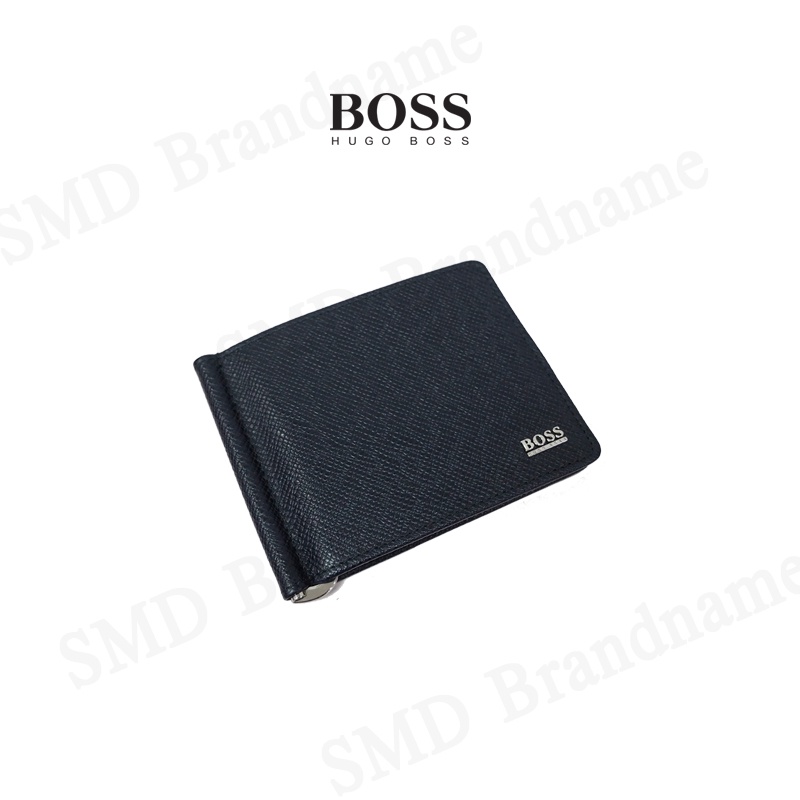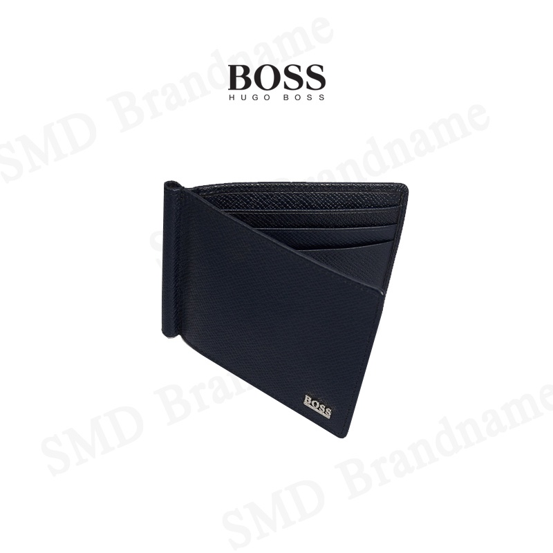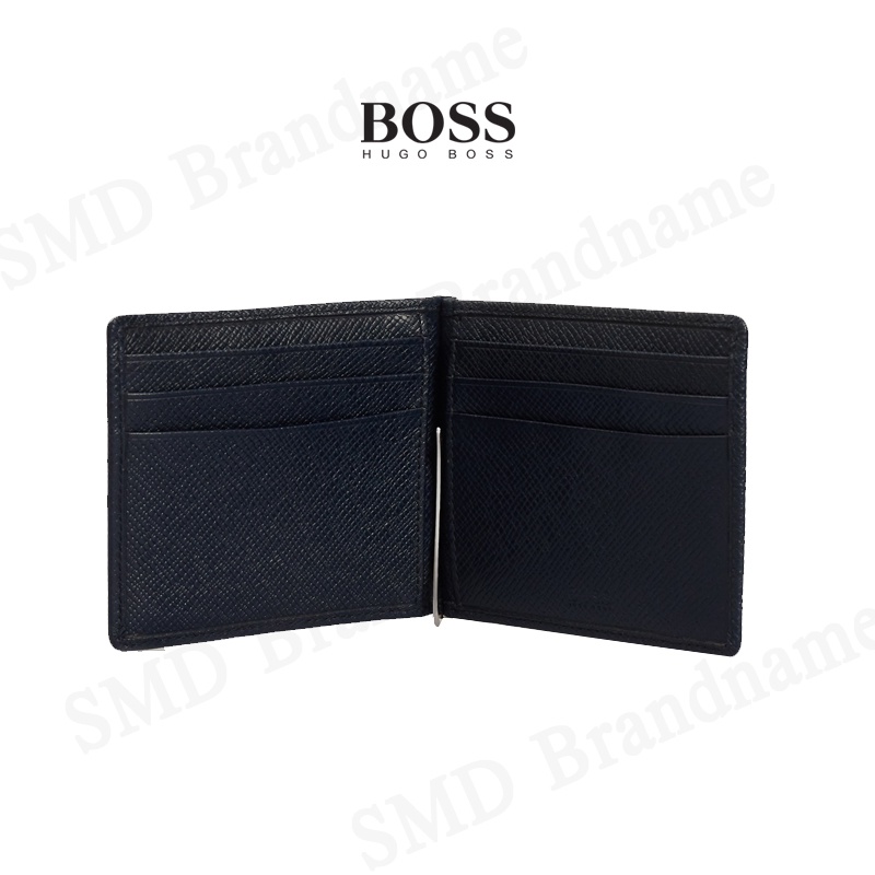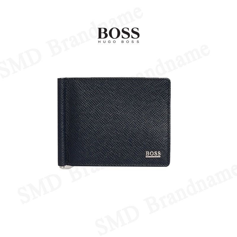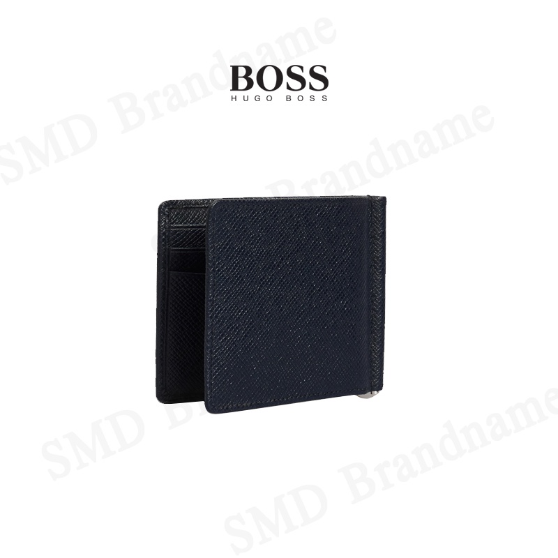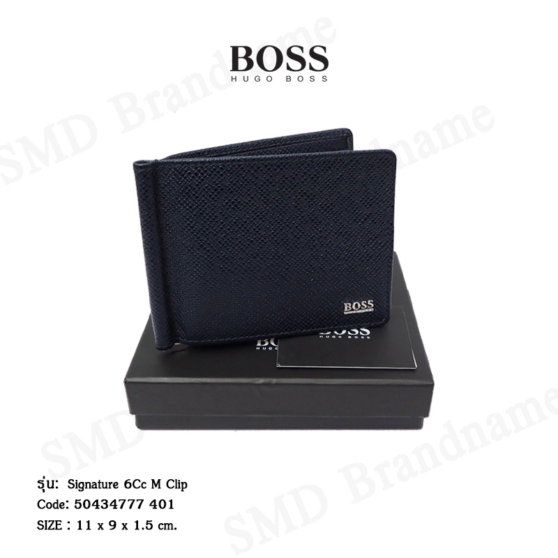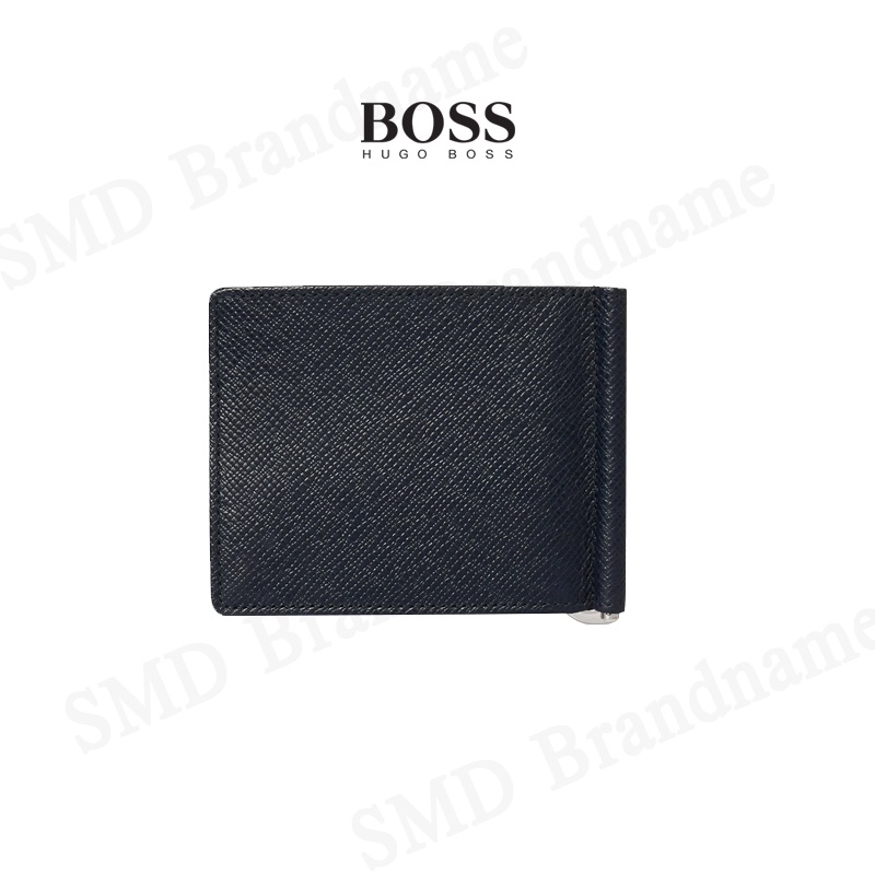 HUGO BOSS กระเป๋าสตางค์ใส่การ์ดแบบพับสั้นผู้ชายสีกรม รุ่น Signature 6Cc M Clip Code: 50434777 401
