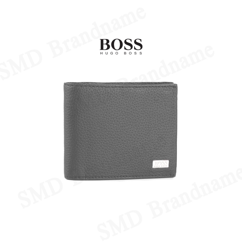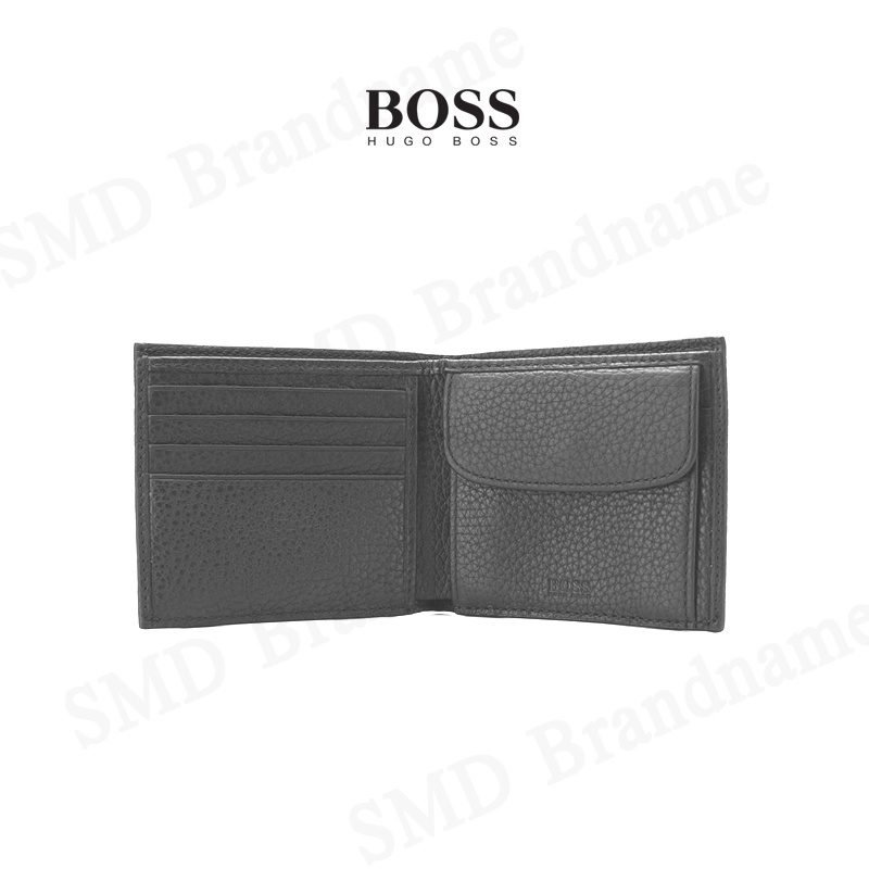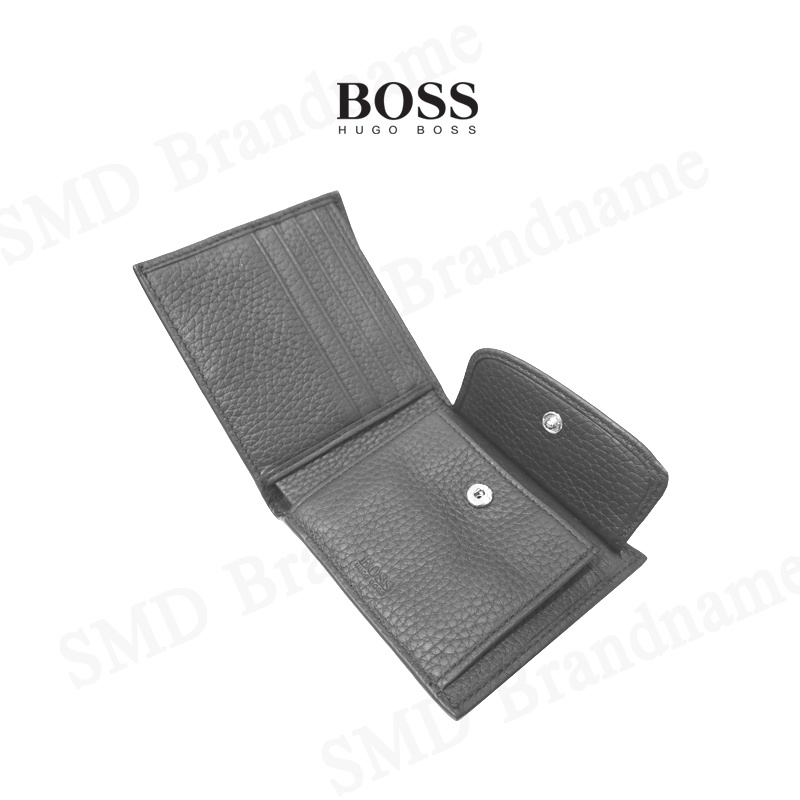 HUGO BOSS กระเป๋าสตางค์หนัง รุ่น BOSS CROSSTOWN_4CC COIN WALLET IN GREY Code: 50390403 032
