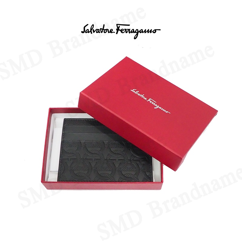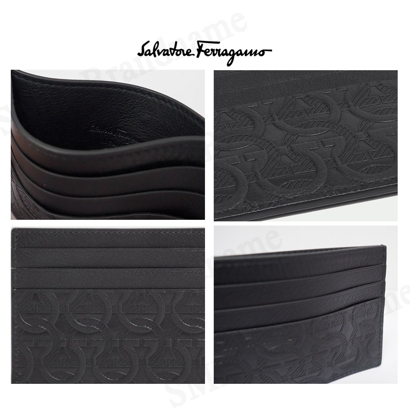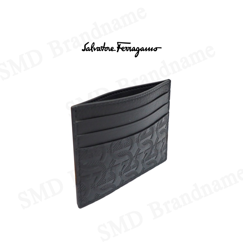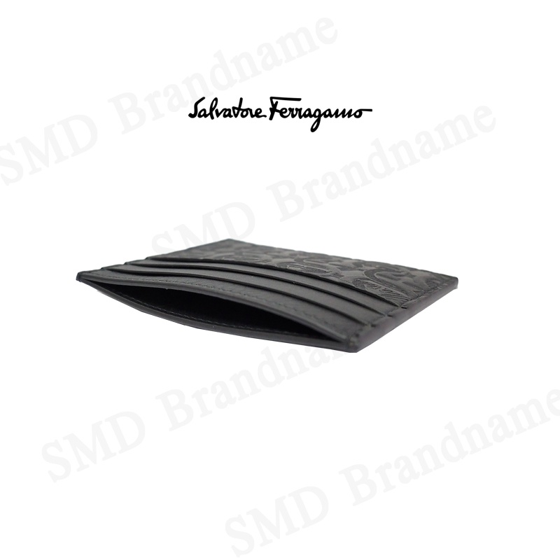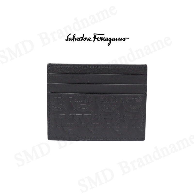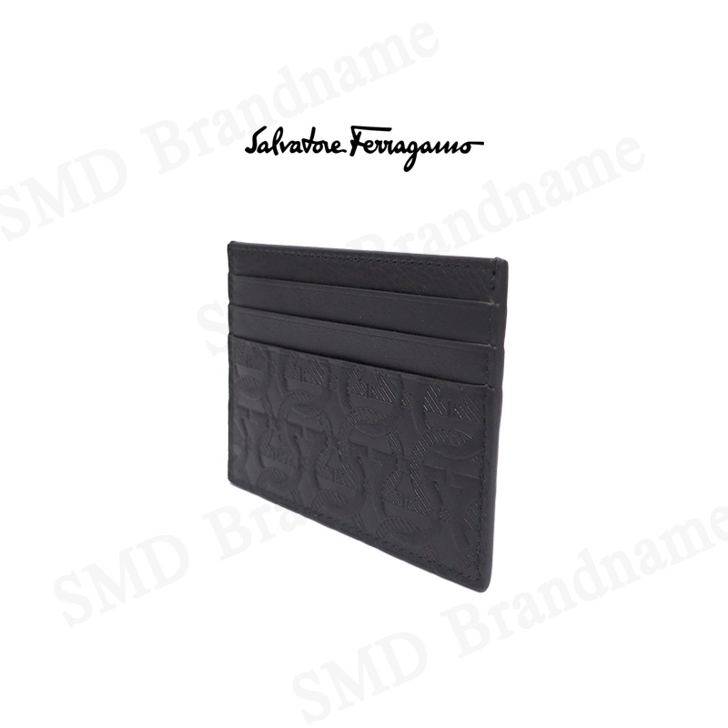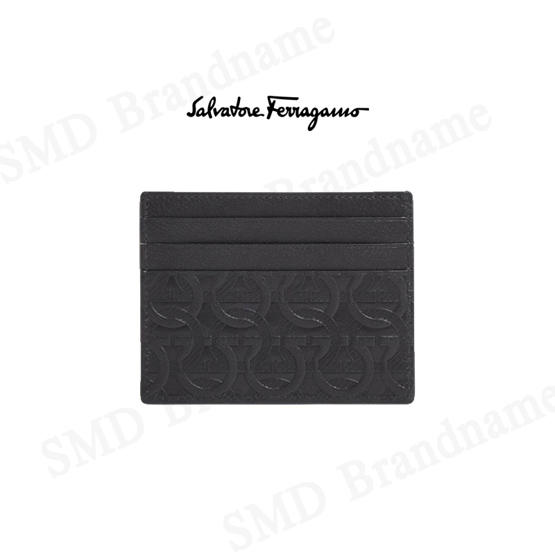 SALVATORE FERRAGAMO กระเป๋าใส่การ์ด รุ่น Ferragamo Gancini Cardholder Luxury Black Logo Embossed Code: 66A645 0725146