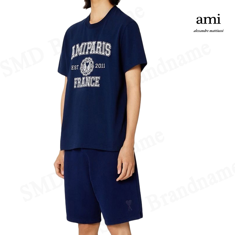 AMI Alexandre Mattiussi เสื้อยืดคอกลม รุ่น Logo-Print Cotton T-Shirt Code: HTS008 726 491